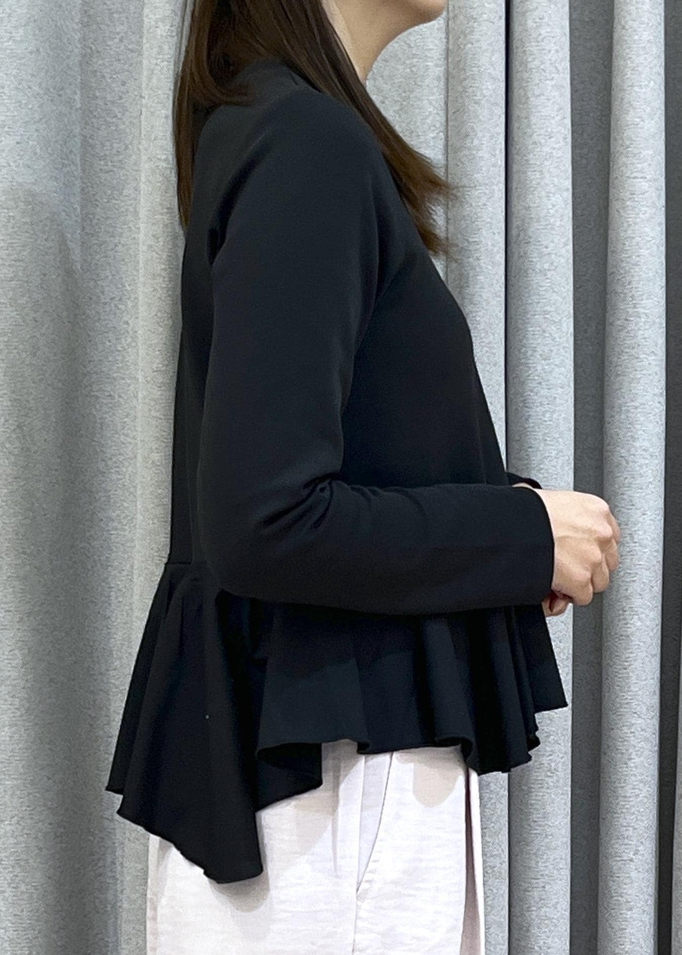ウエストのペプラムデザインで