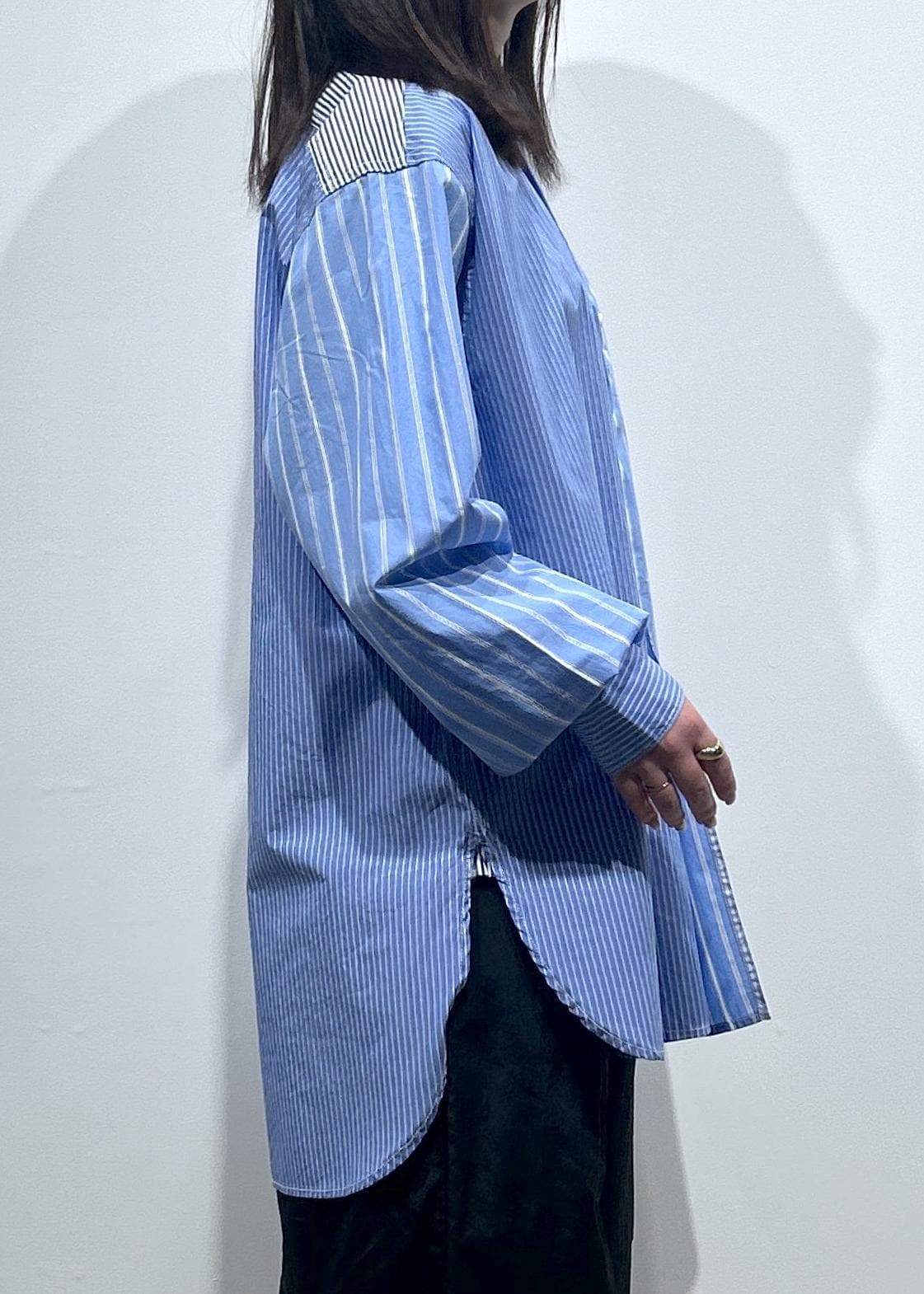 LE CERCLE par ropé【ROYAL NAVY/ロイヤルネイビー】バンドカラーシャツブルー系 / F¥9,900レビューメンズライクでゆったりしたサイズ感です!