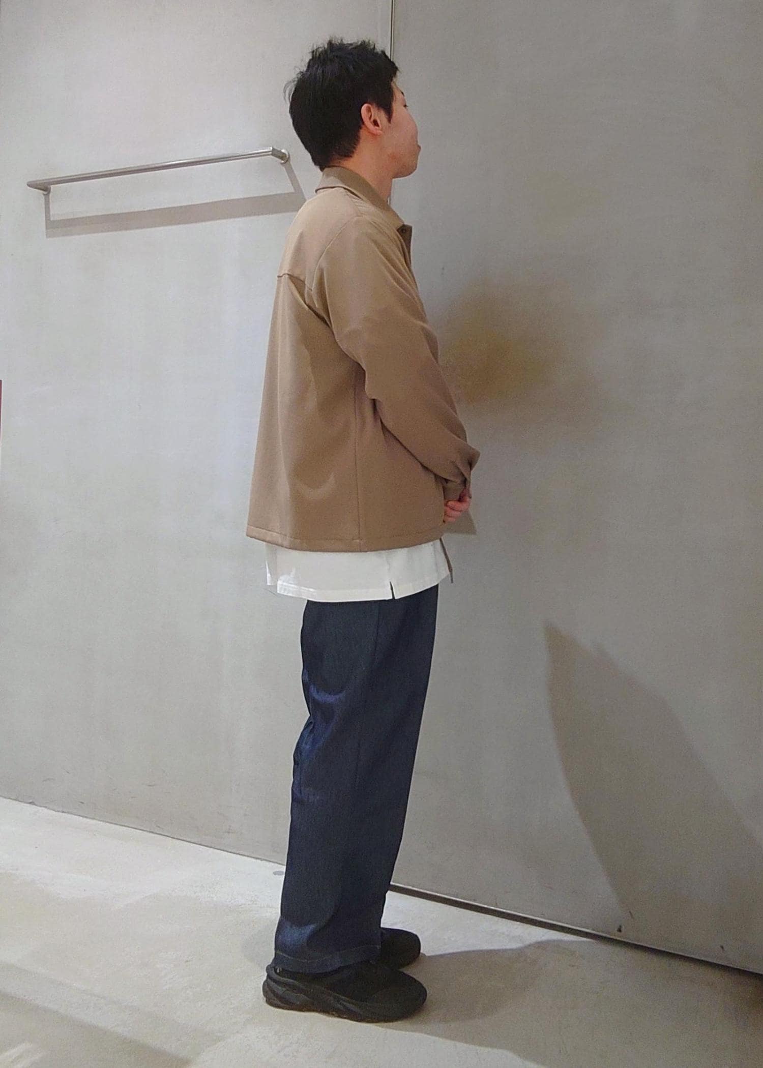ストレッチ性を備えたハリ感のある布帛素材を使用しており、きちんとした表情がありながらも、動きやすさを兼ね備えた快適な着心地が魅力!