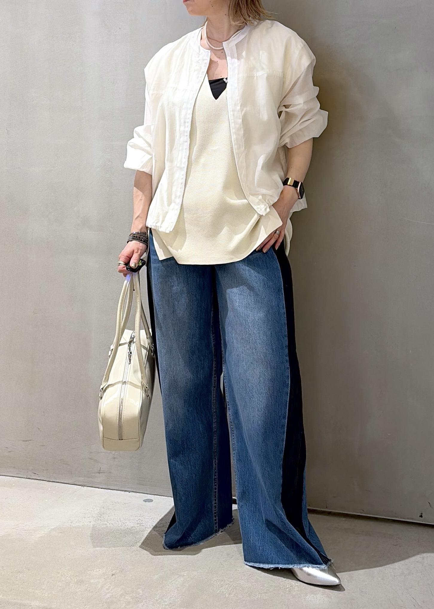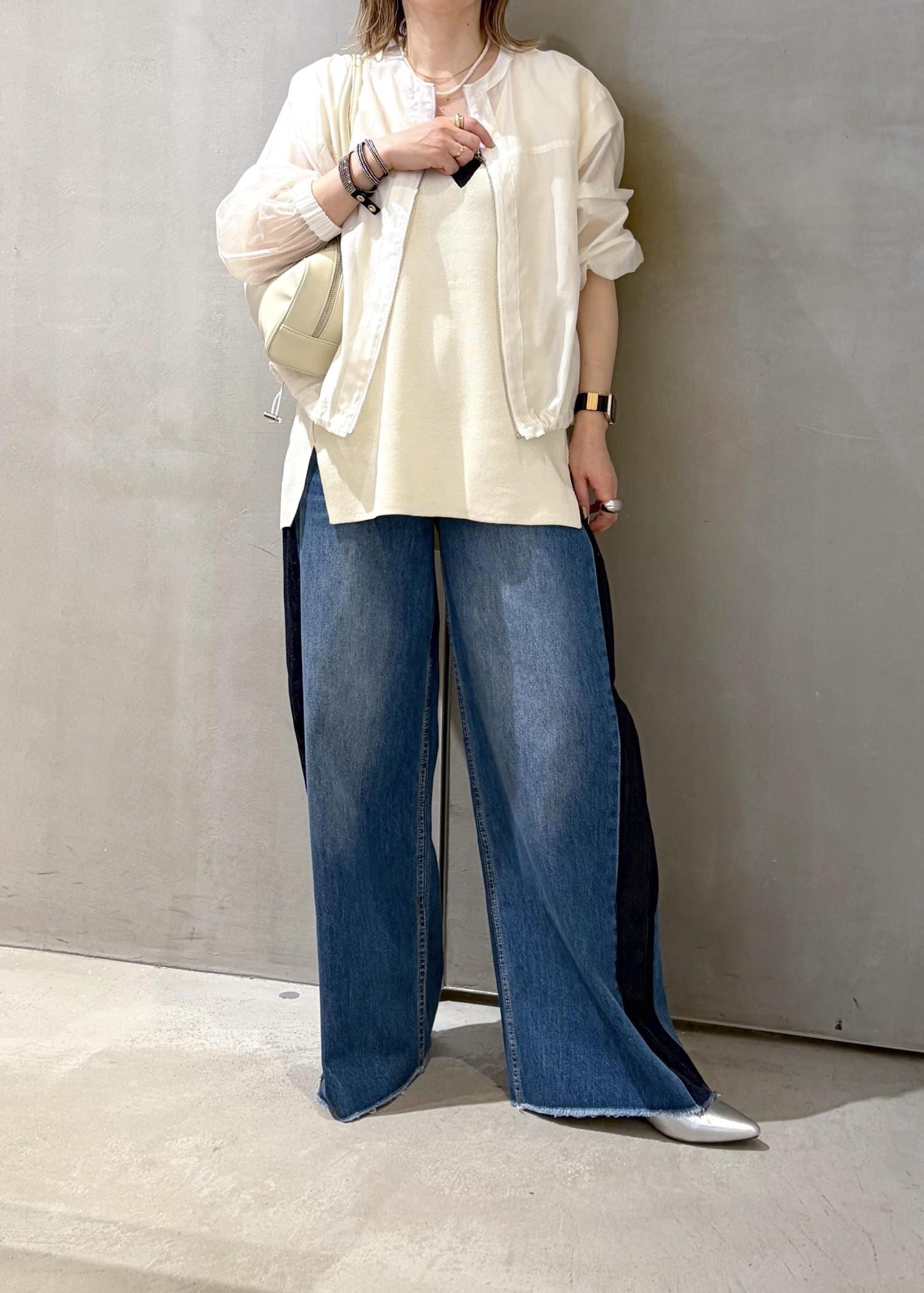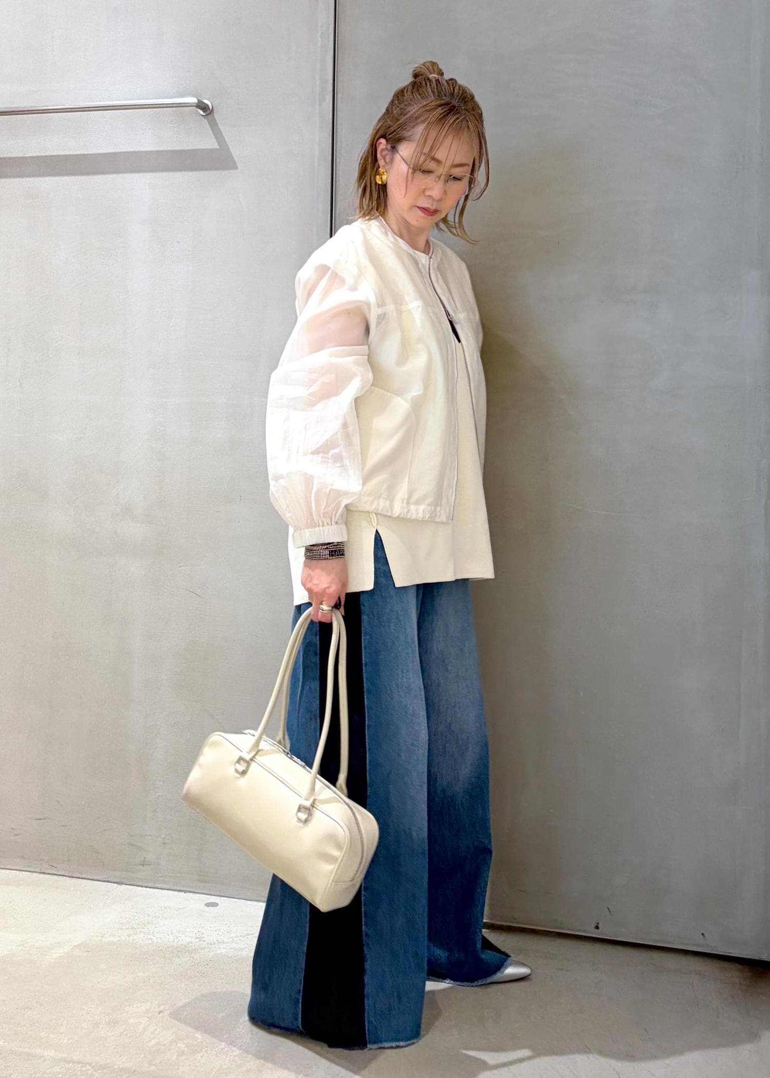 ふわっと軽いブルゾンをニットベストに重ねることで、まだ肌寒い時でも、季節感を感じるられるコーディネートにしました。
