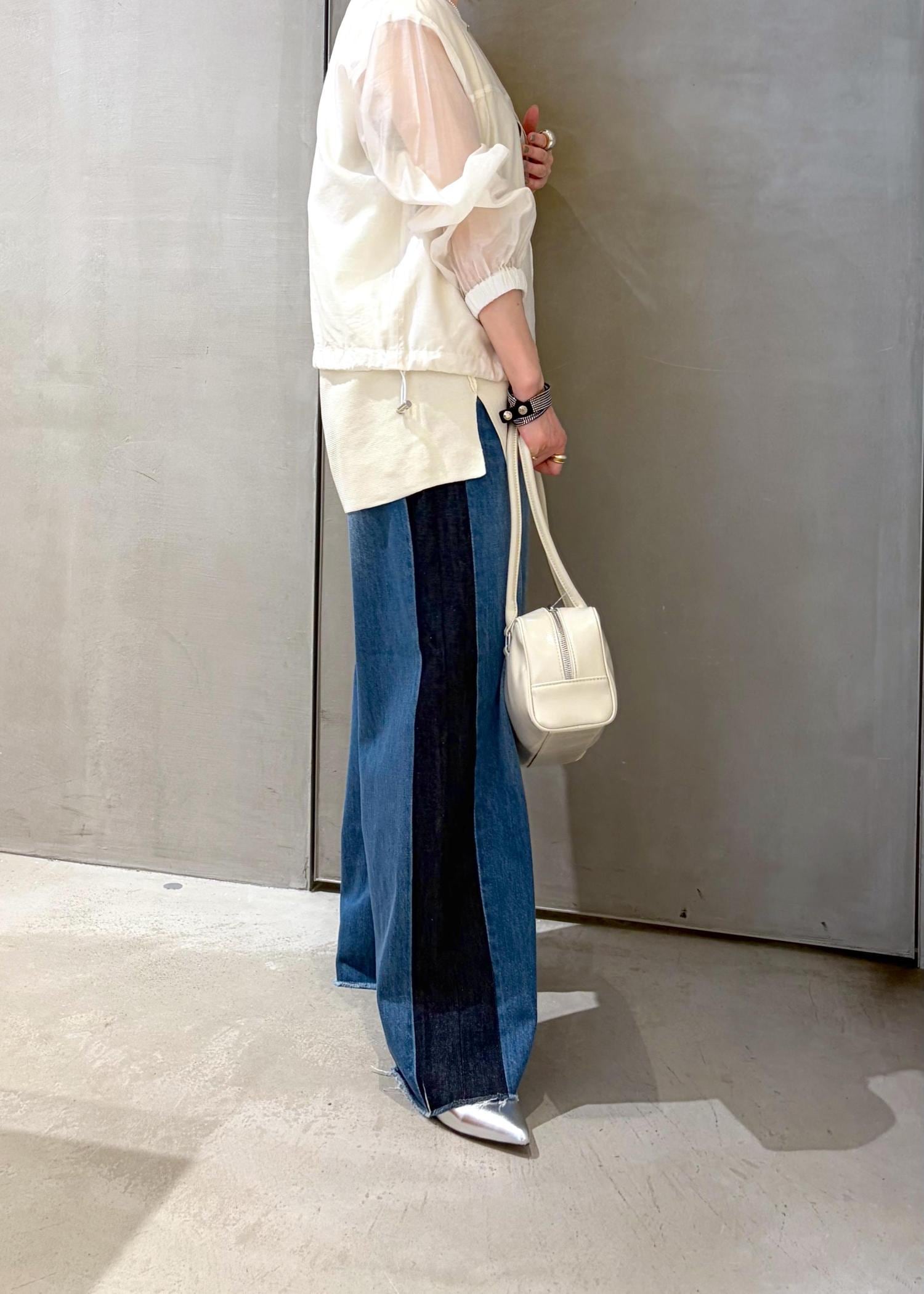 LE CERCLE par ropé【LANCER/ランサー】2TONE REMAKED PANTSブルー系 / F¥17,600レビュー昨年もご好評でしたランサーのバギーデニム。コットン100%にも関わらず柔らかく、ノンストレスで着用できます。ウエストから裾に向かって広がるバギーラインはメリハリがつくので、足が長く見えます。腰回りにゆとりがあるサイズ感です。
