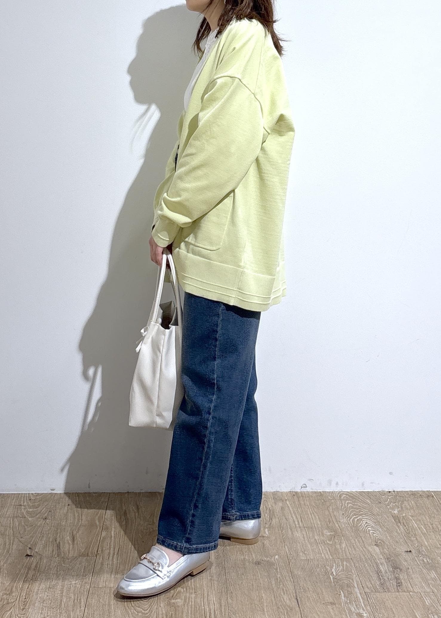 低身長の方は裾を一曲げして着用するのもおすすめです。 -
