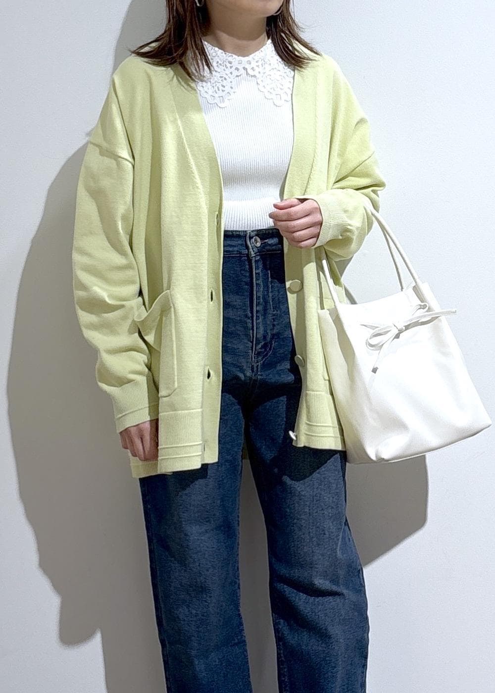 カーディガンやノーカラーのジャケットのインナーとして、レース衿を出したスタイリングもおすすめ♩ -