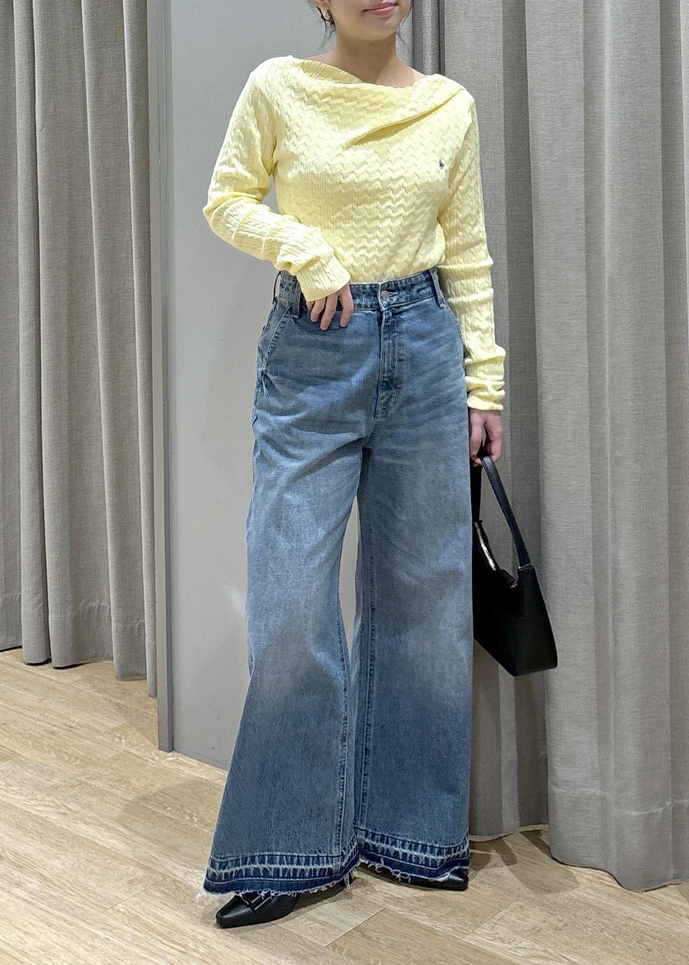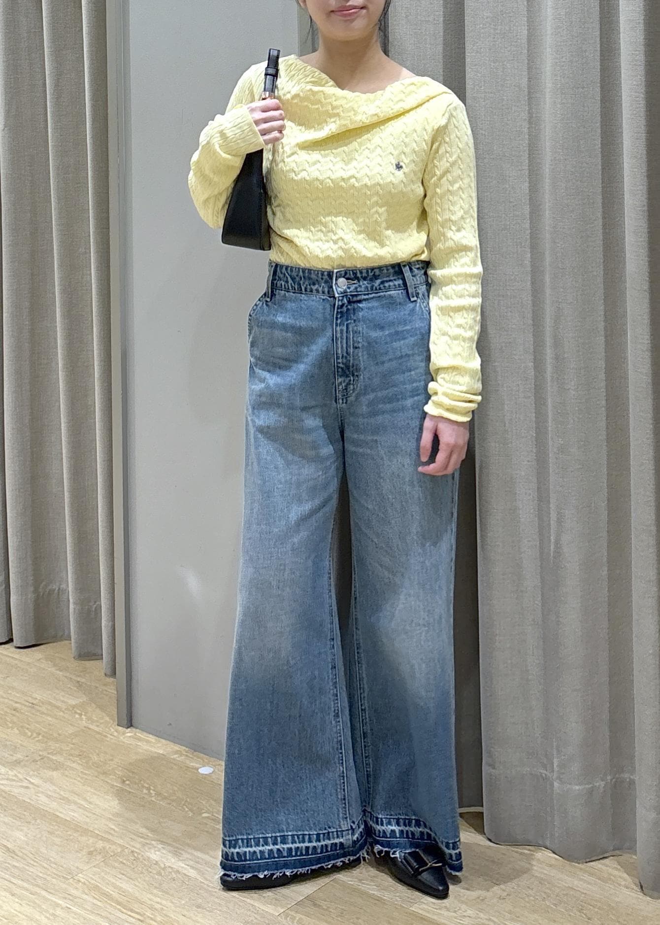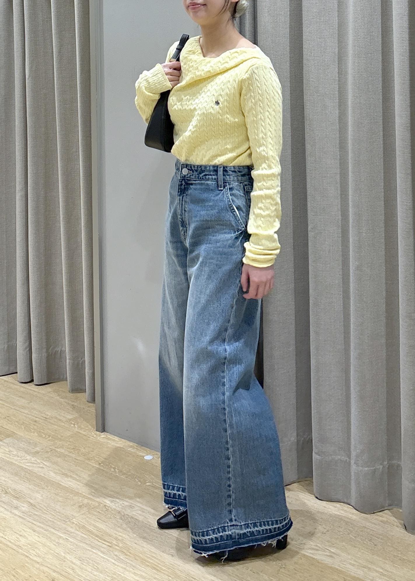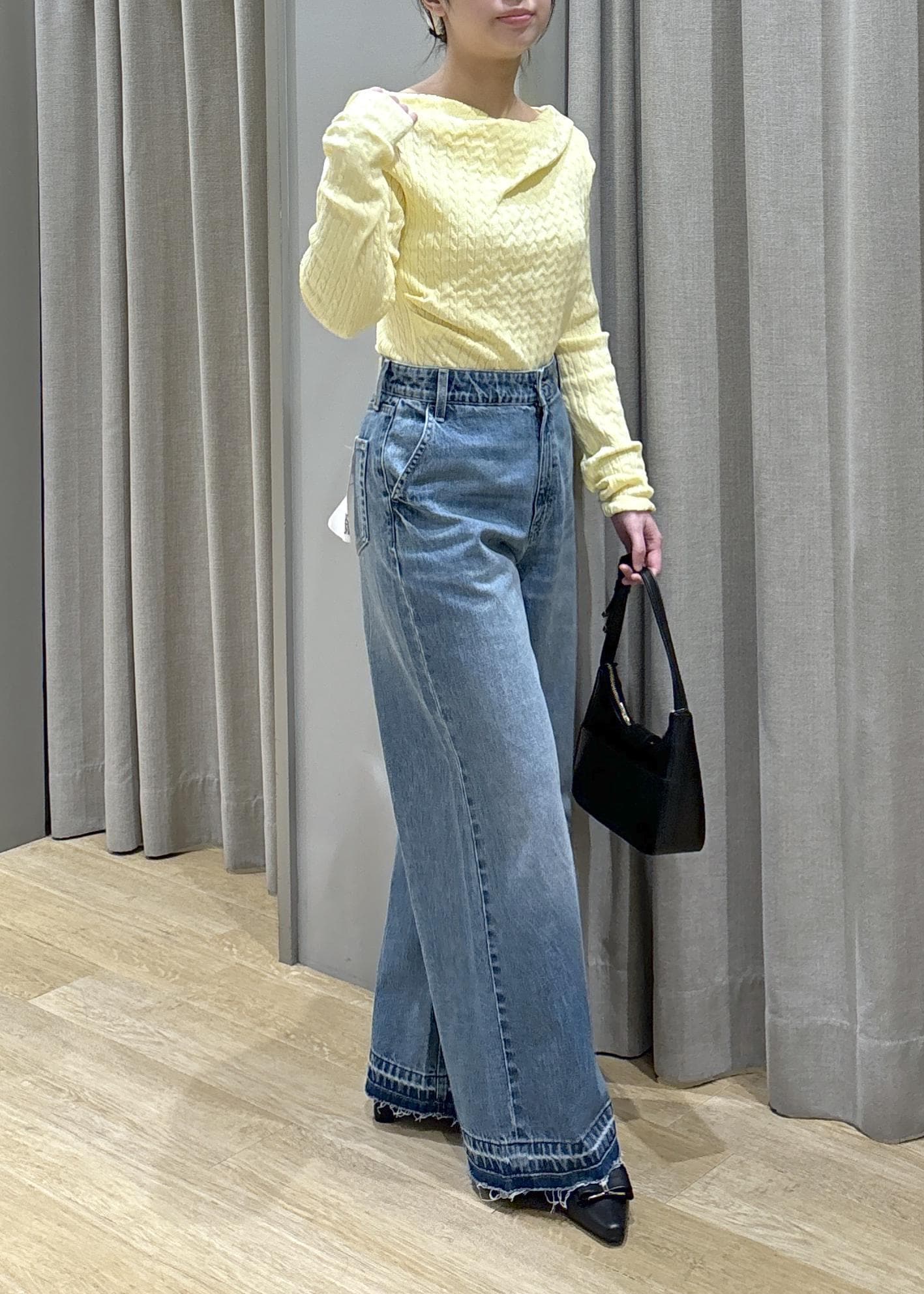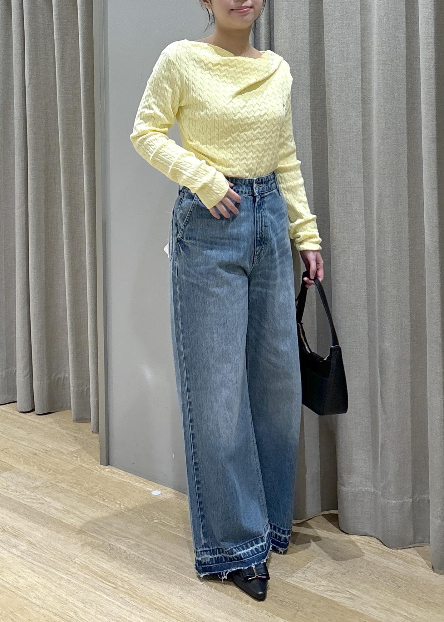 VIS【POLO BCS】VIS別注ケーブルドレープトップスイエロー / F¥6,930レビュー身長158cm、Fサイズ着用。