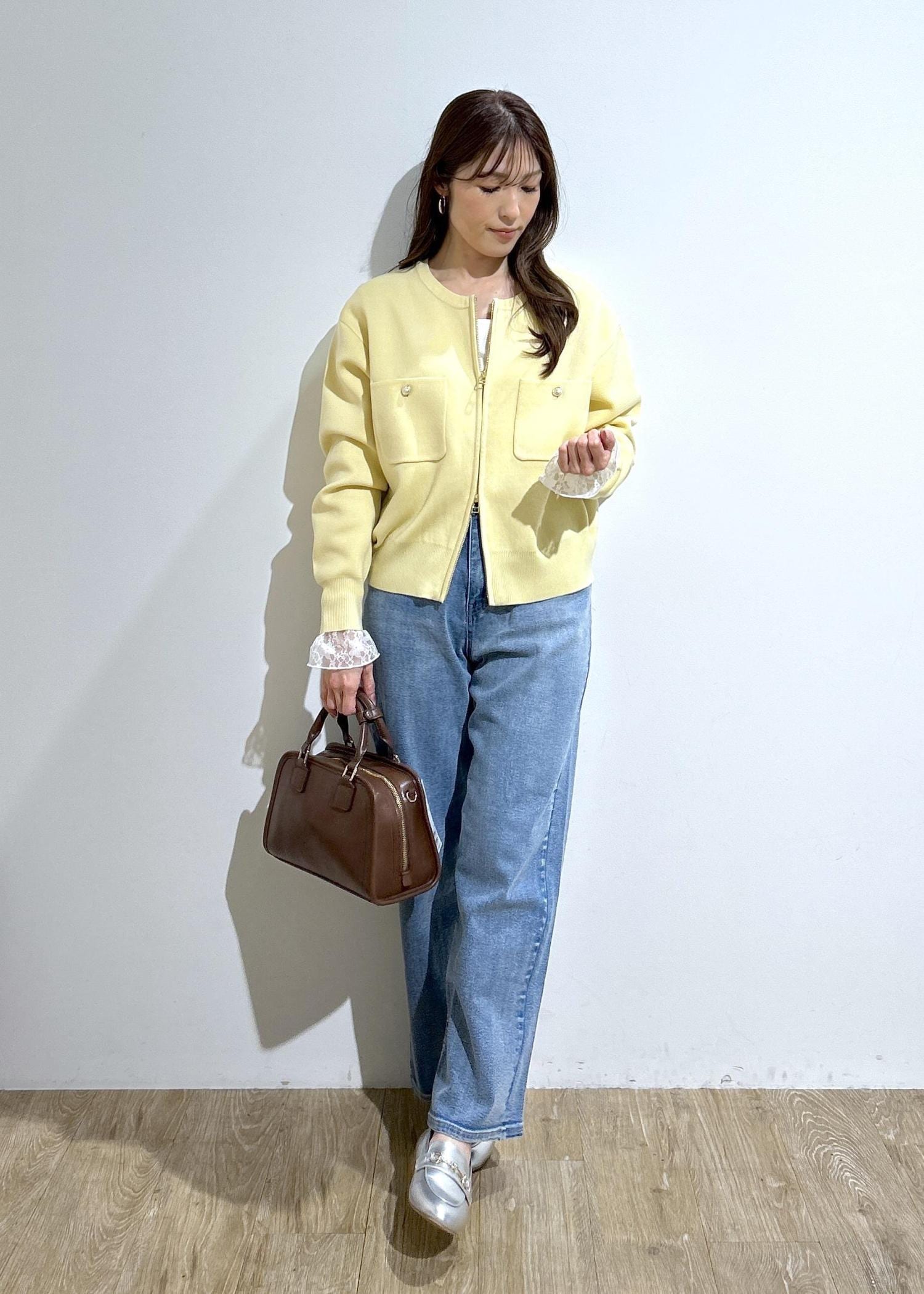 春カラーとデニムの相性抜群でカラーモノを合わせても使いやすいです。