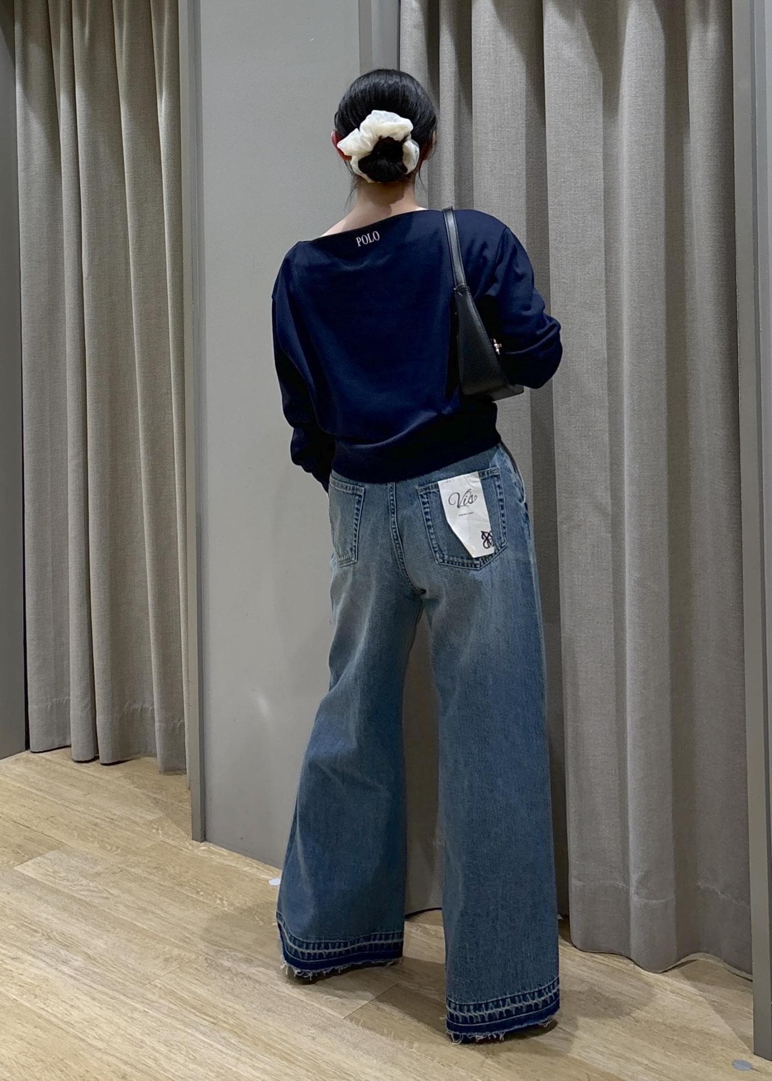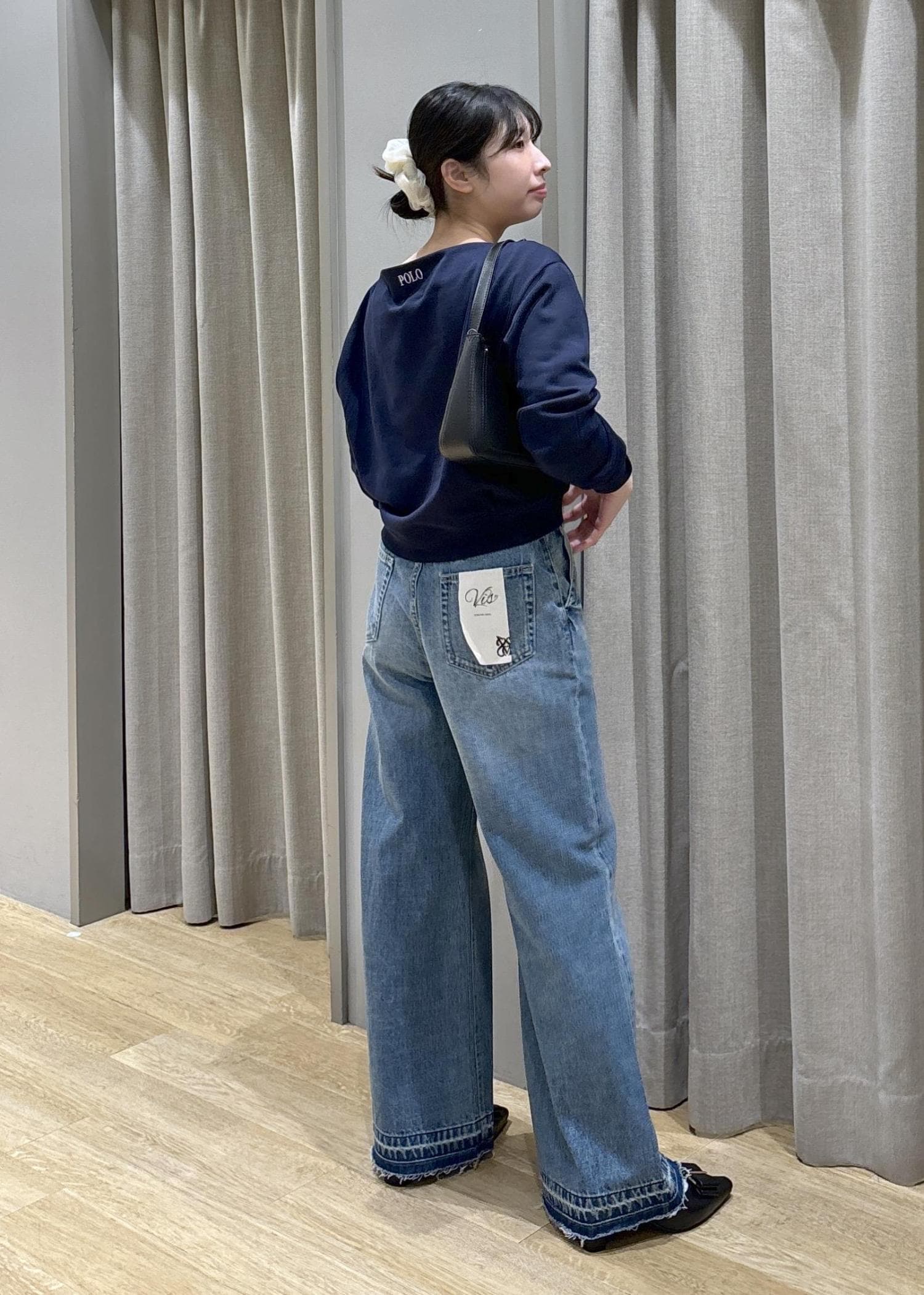polo bcsオフショルスウェット×バギーデニム