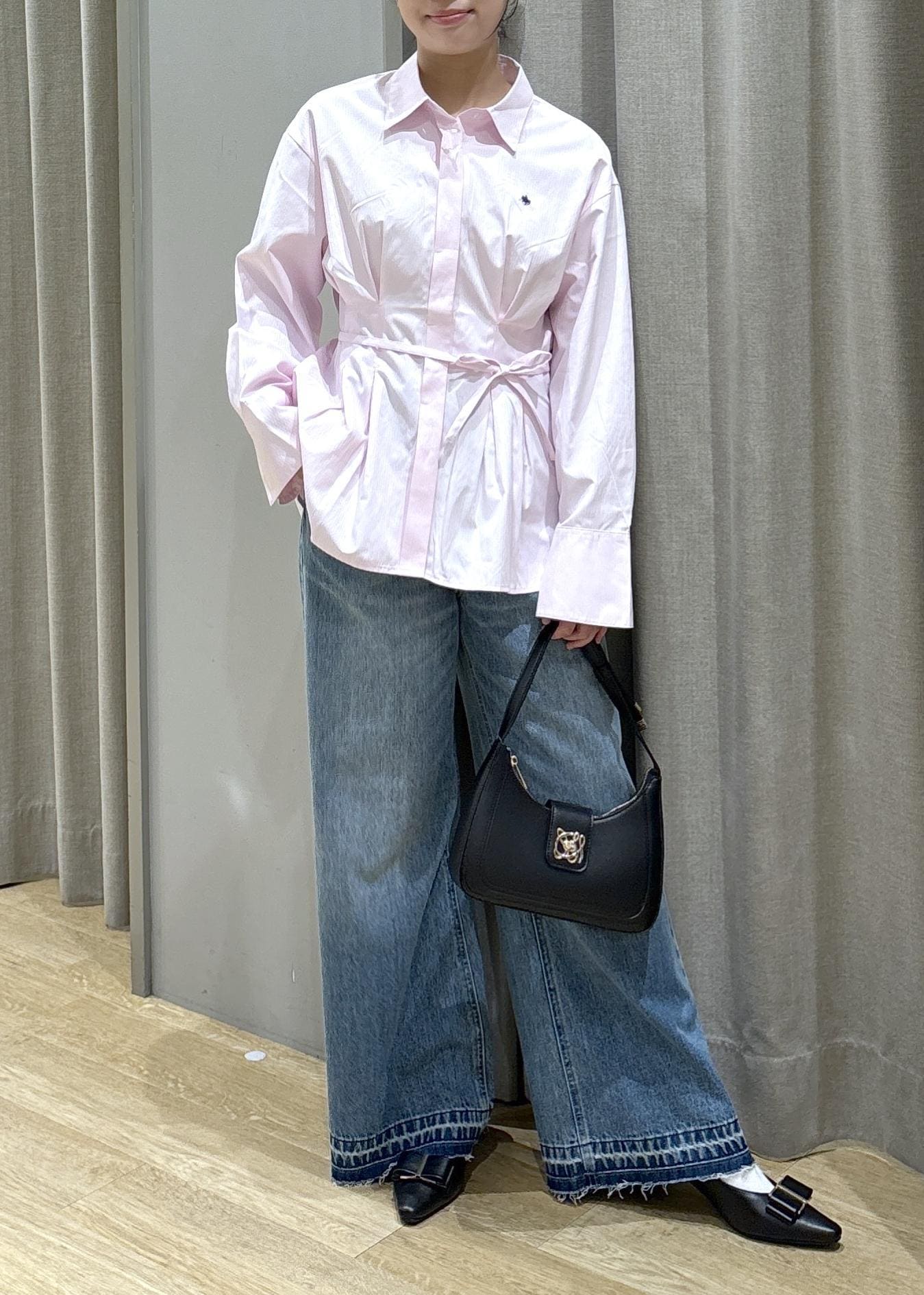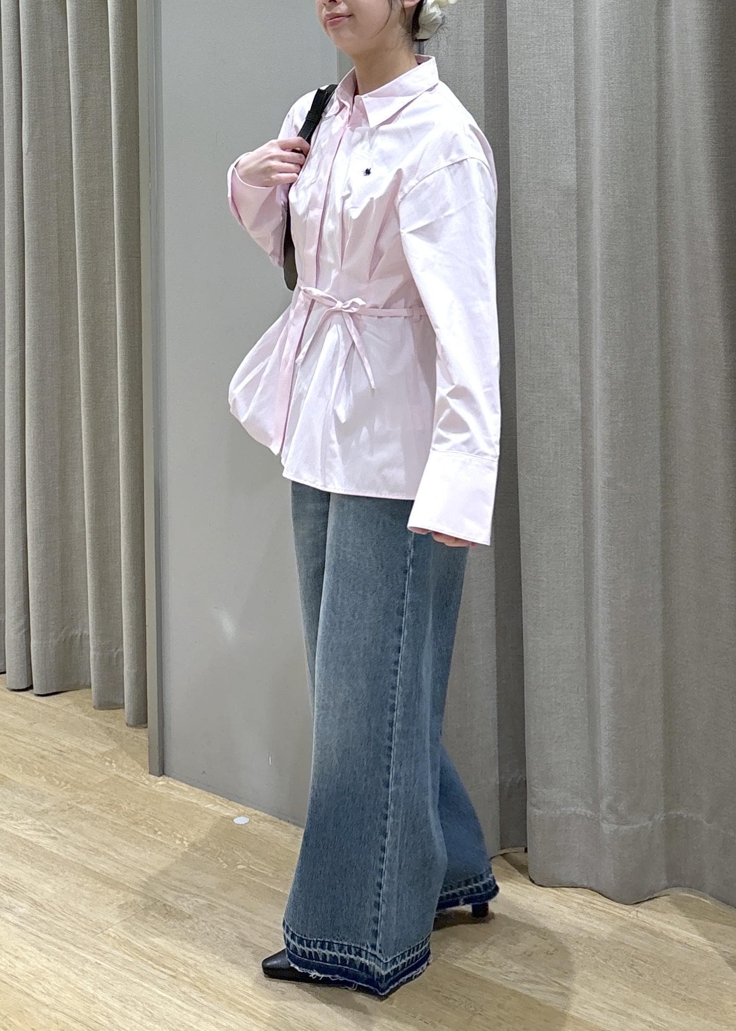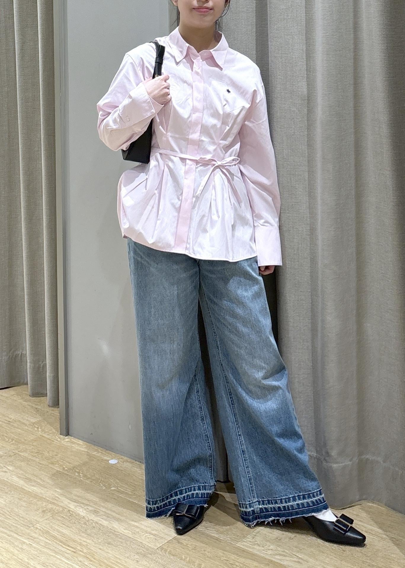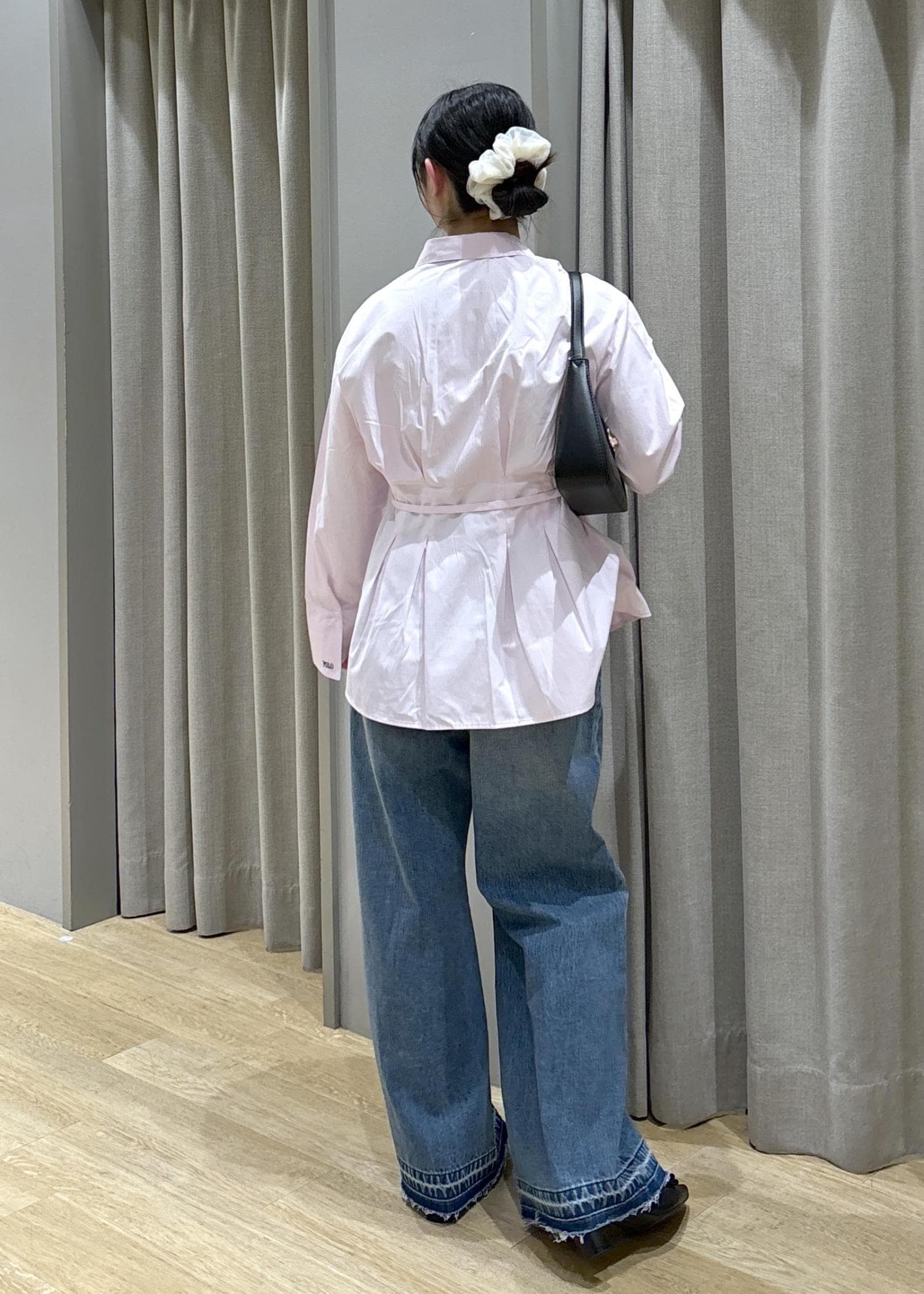 VIS【POLO BCS】VIS別注ベルト付きウエストタックシャツブラウスピンク系 / F¥6,930レビュー身長158cm、Fサイズ着用。