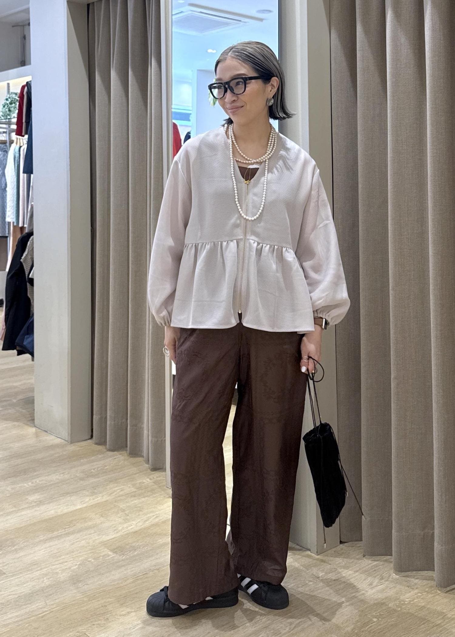 夏の日除けアイテムとしても使えるジップアップペプラムブルゾン。
