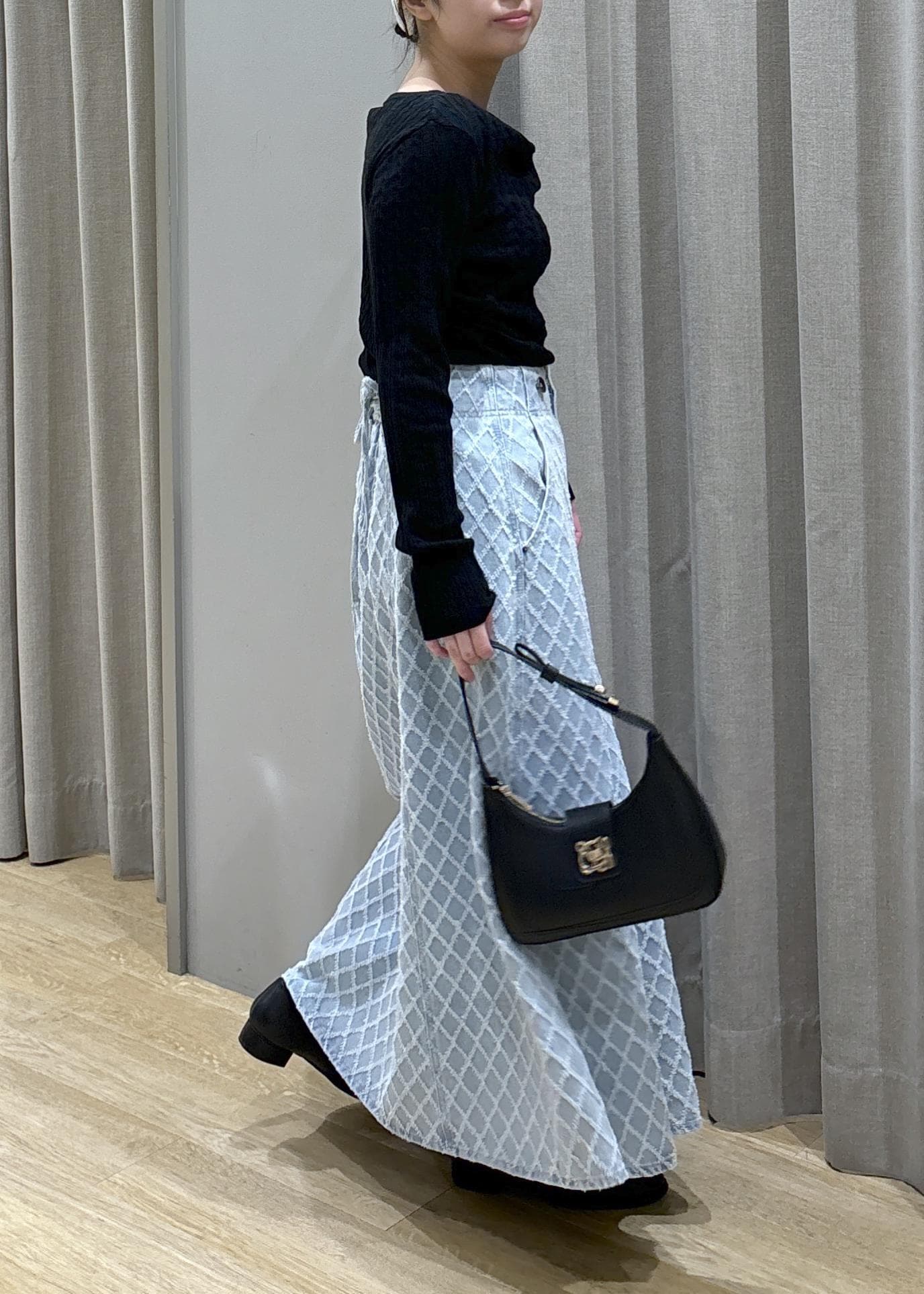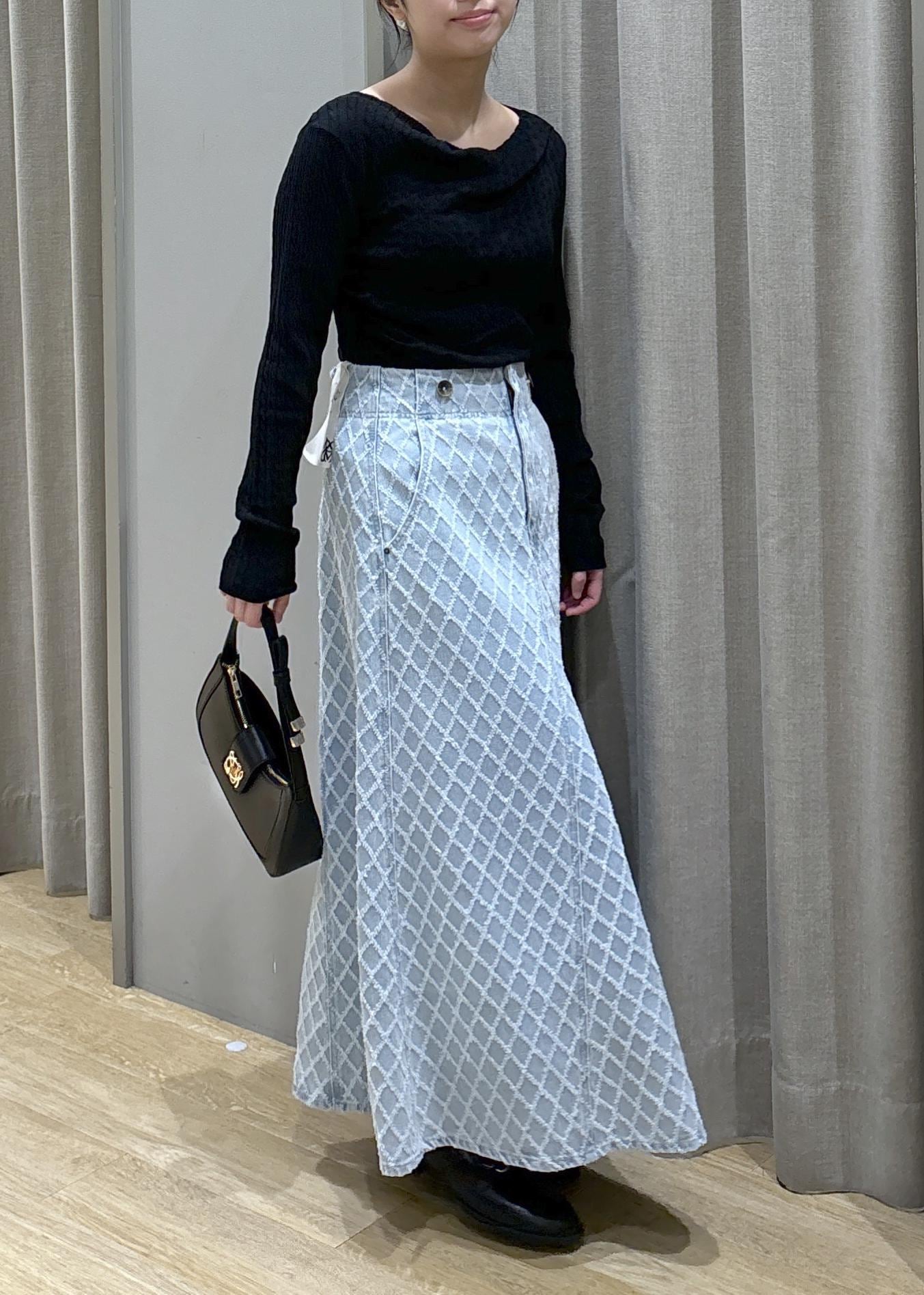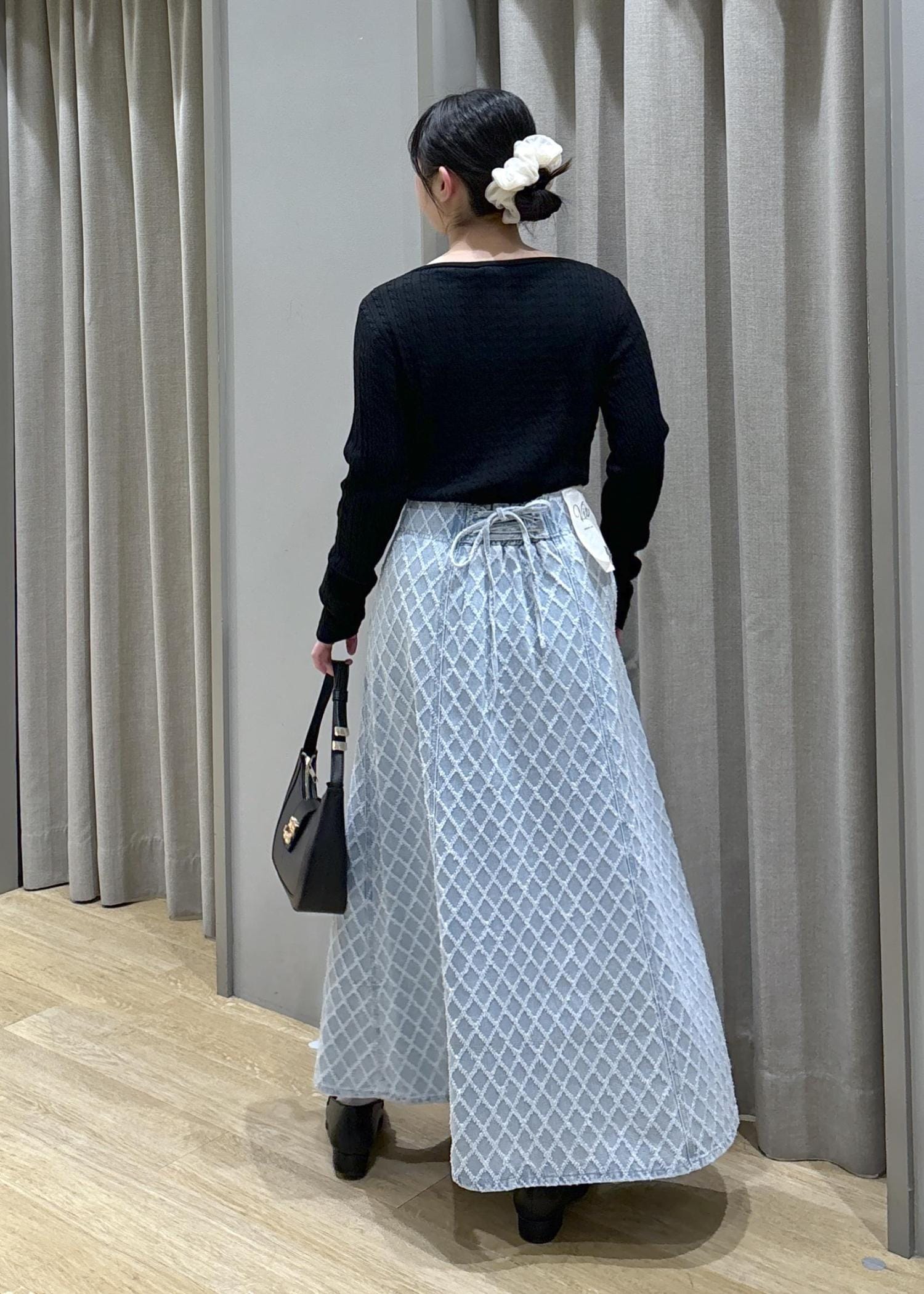 VISバックレースアップフレアデニムスカート/イージーケアブルー系 / M¥7,119レビュー身長158cm、Mサイズ着用。