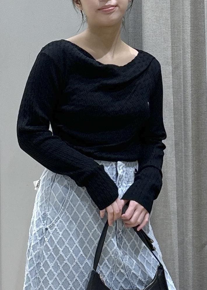 伸縮性のあるケーブルニット生地のドレープニットです。