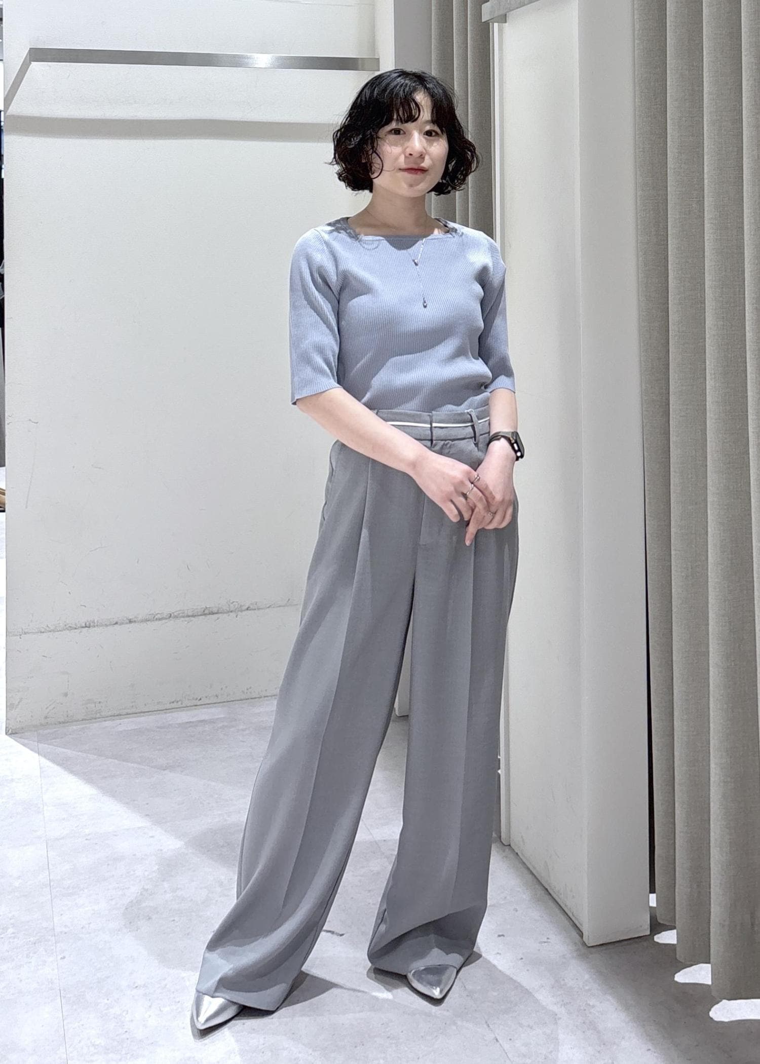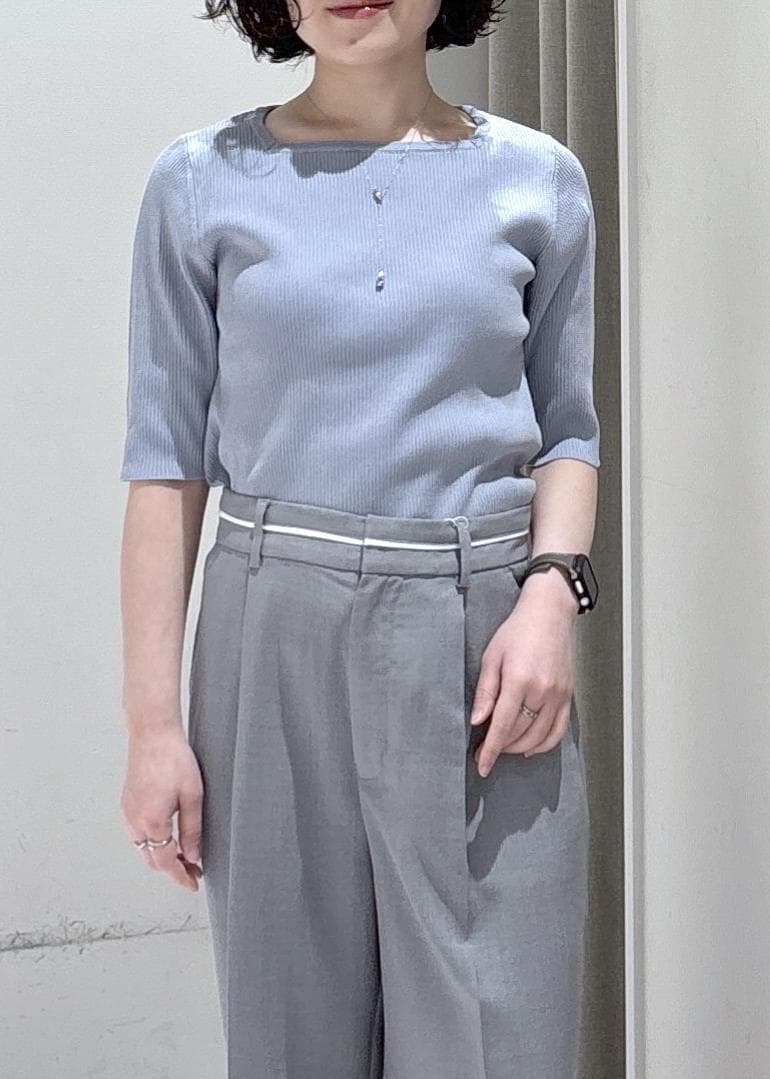 LE CERCLE par ropéスクエアネックメランジ半袖ニットプルオーバーブルー系 / F¥6,490レビュースクエアな胸元は首元スッキリで鎖骨も見え抜け感ある大人の1着