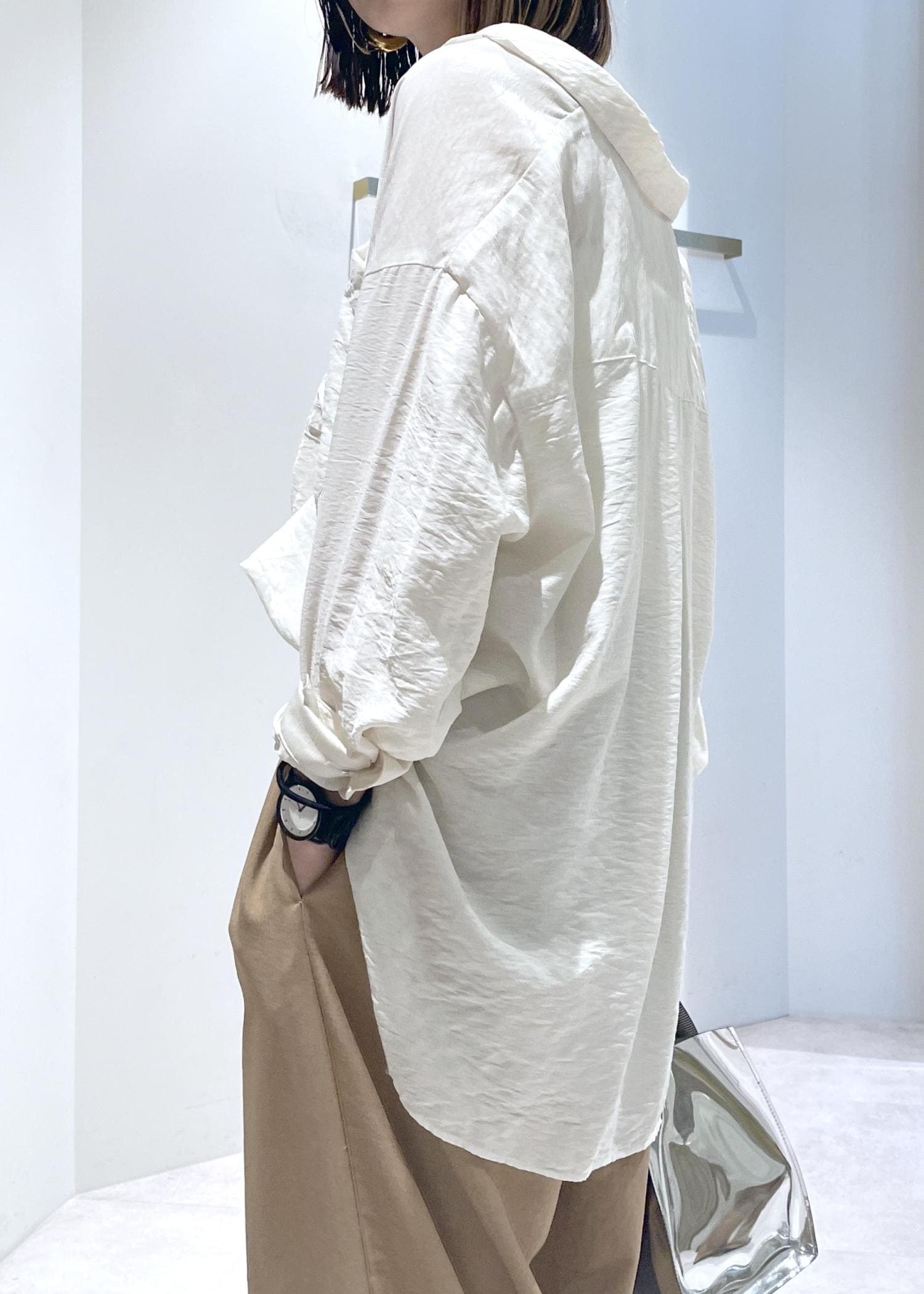裾は出してもインしても使えますしボタンを閉めたり開けたりして様々な雰囲気で楽しめます、 -