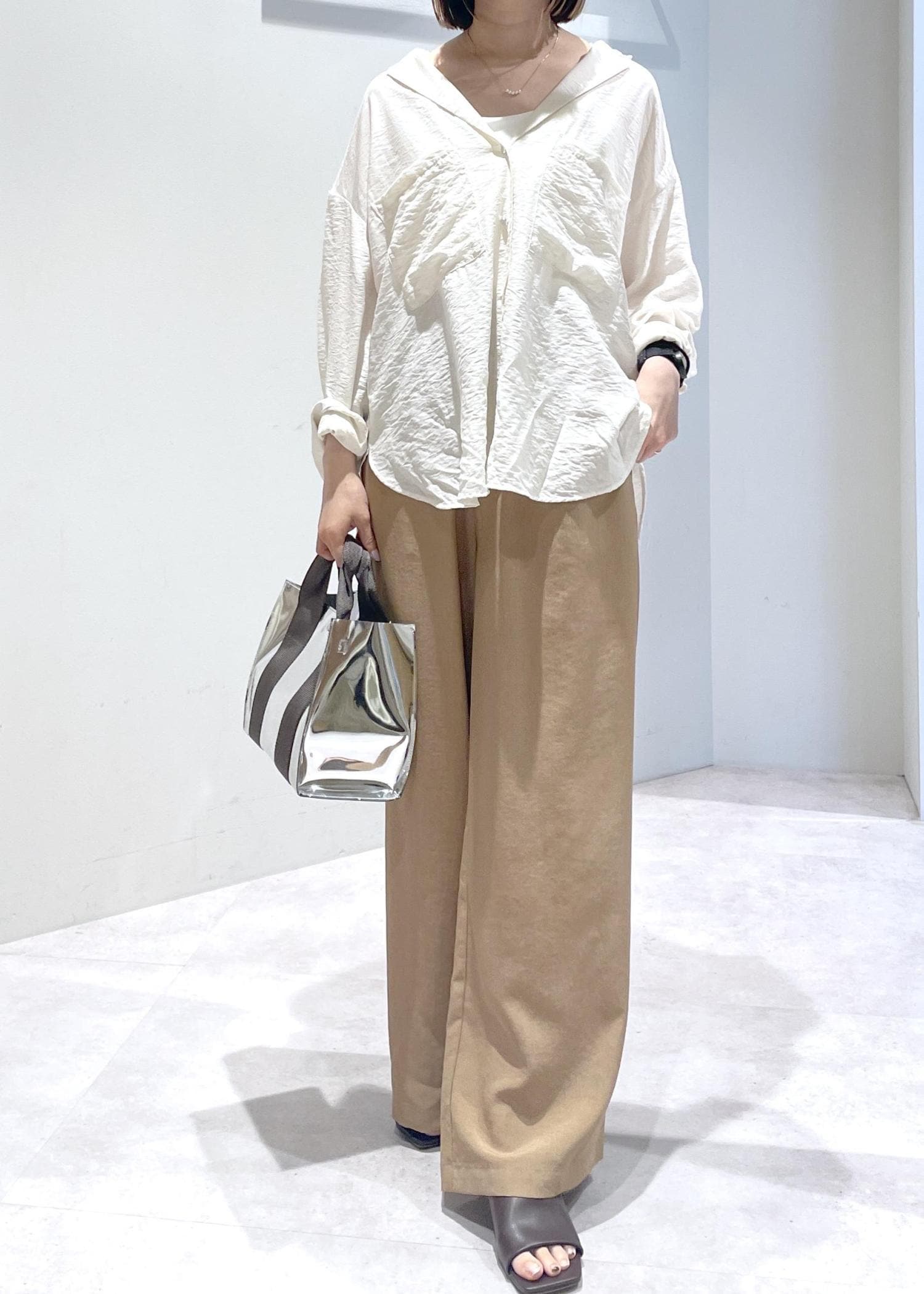 綺麗めブラウスでも、カジュアルなTシャツでも◎ -