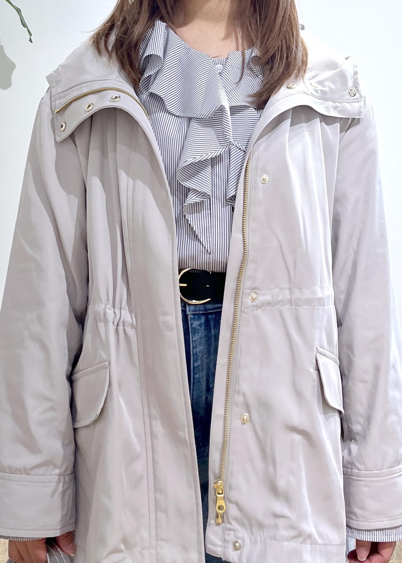ROPÉ PICNICミドル丈マウンテンパーカー スプリングコート/花粉ガード・撥水ライトグレー / F¥10,560レビューウエストが絞れるようになっているので気分によってシルエットを変えられます。