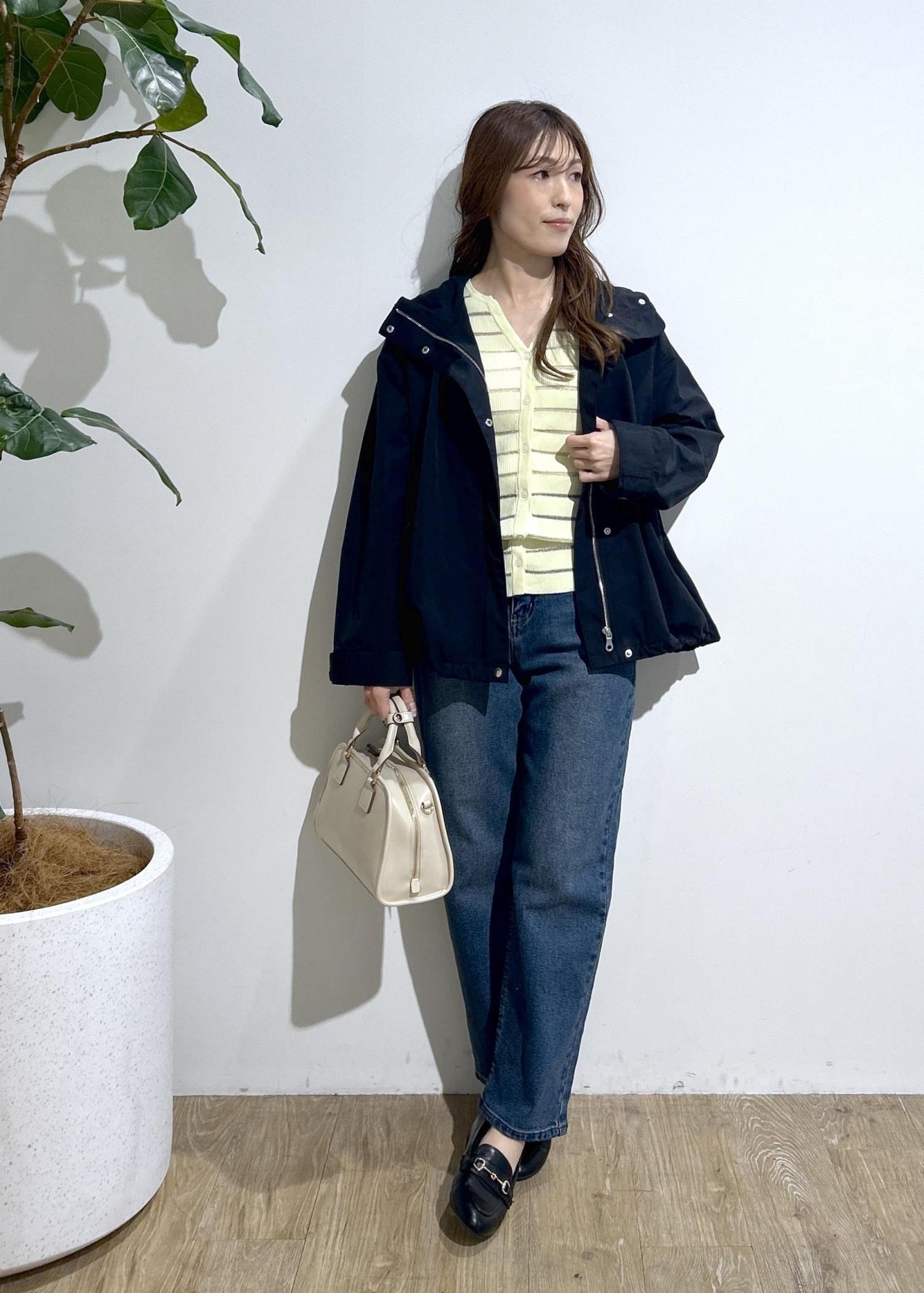 シアーカーディガンにデニムを合わせたカジュアルstyle。