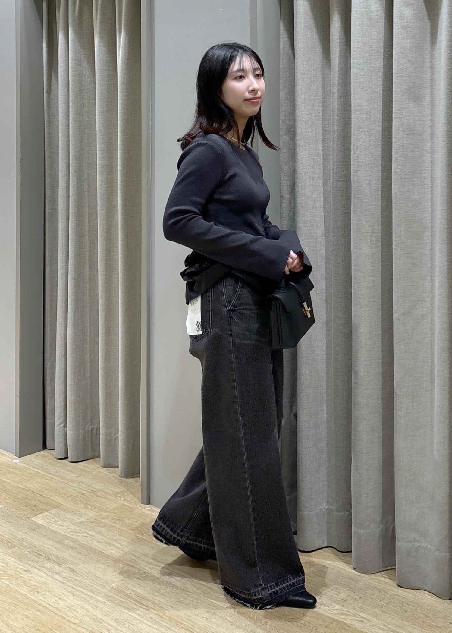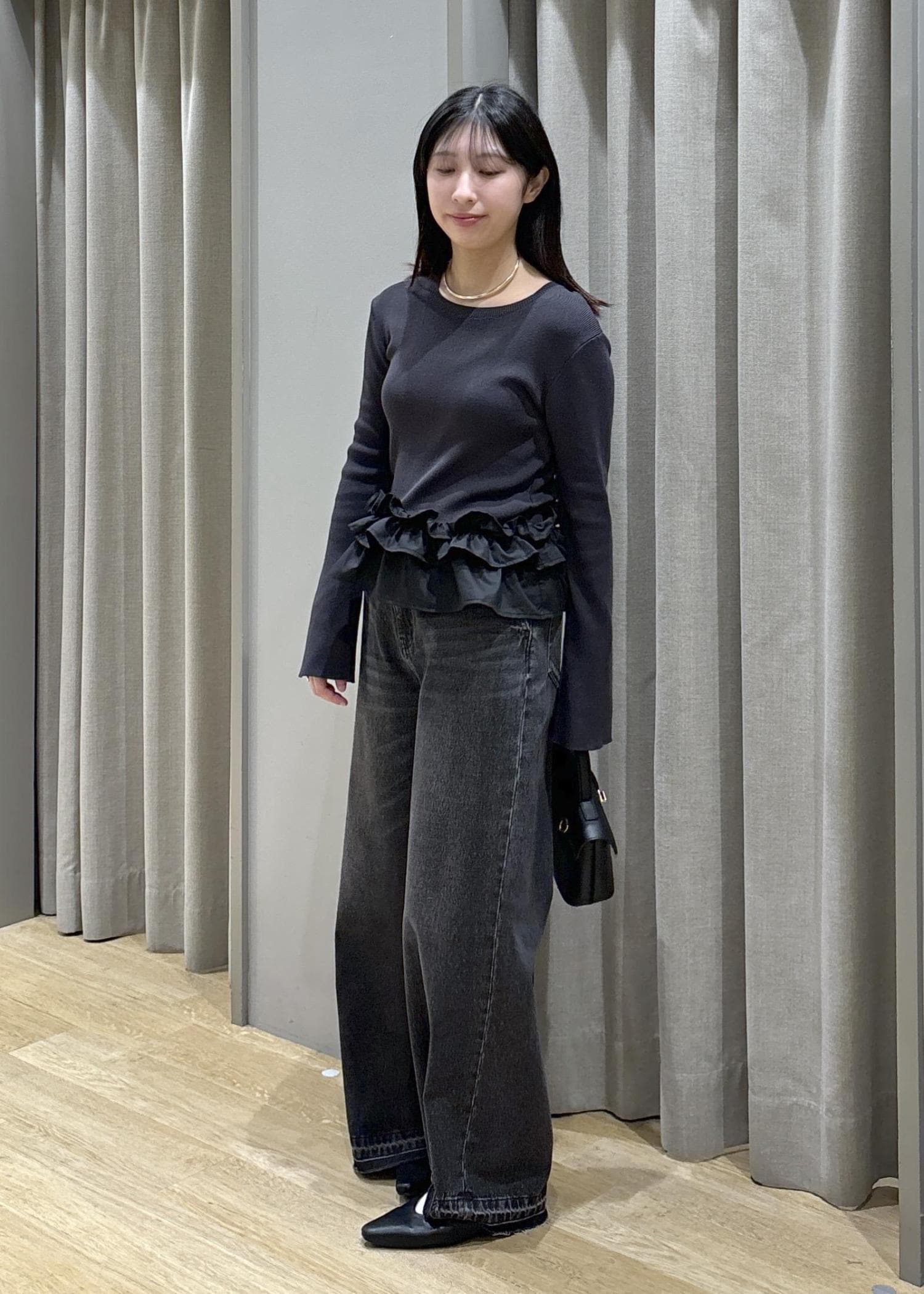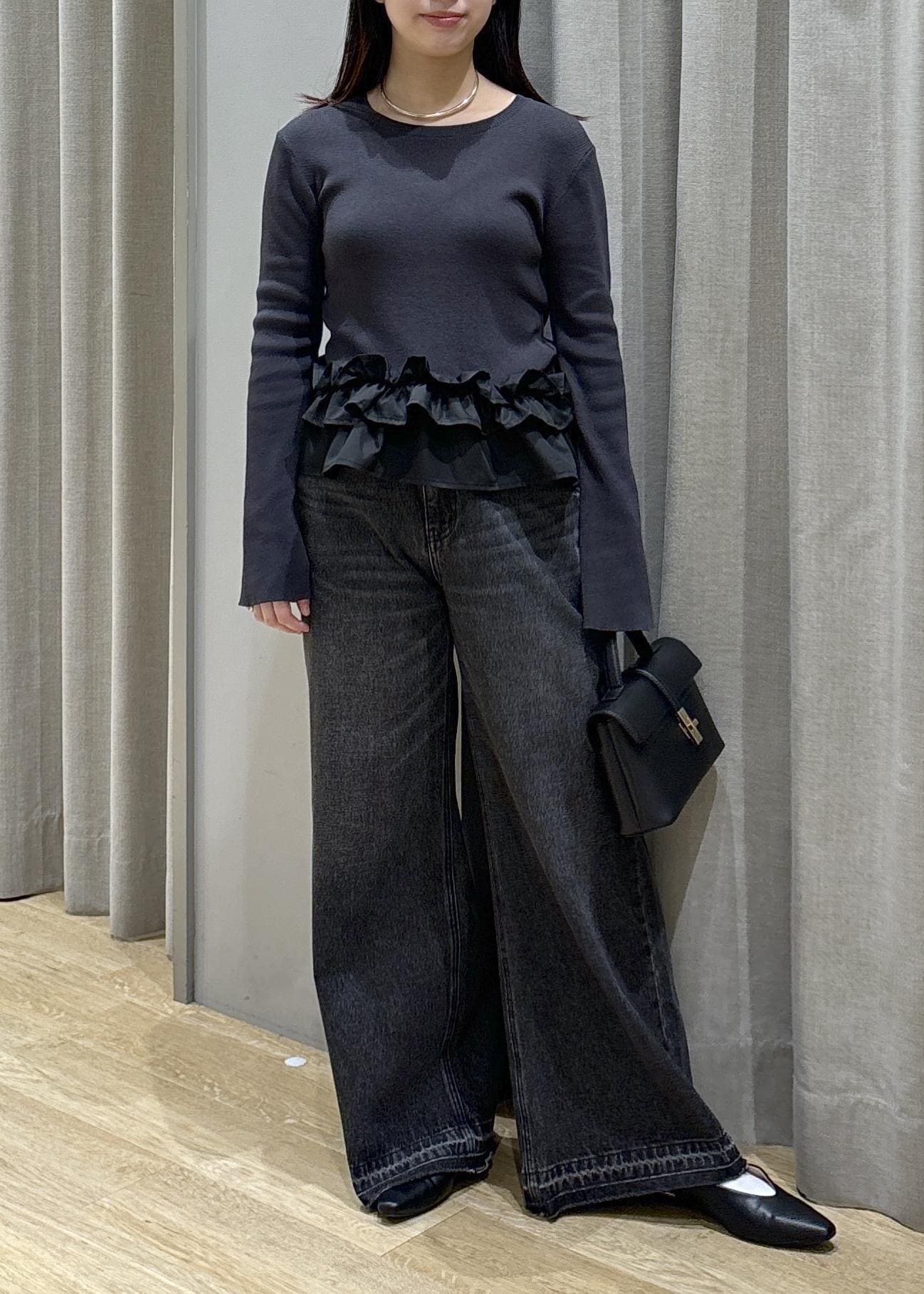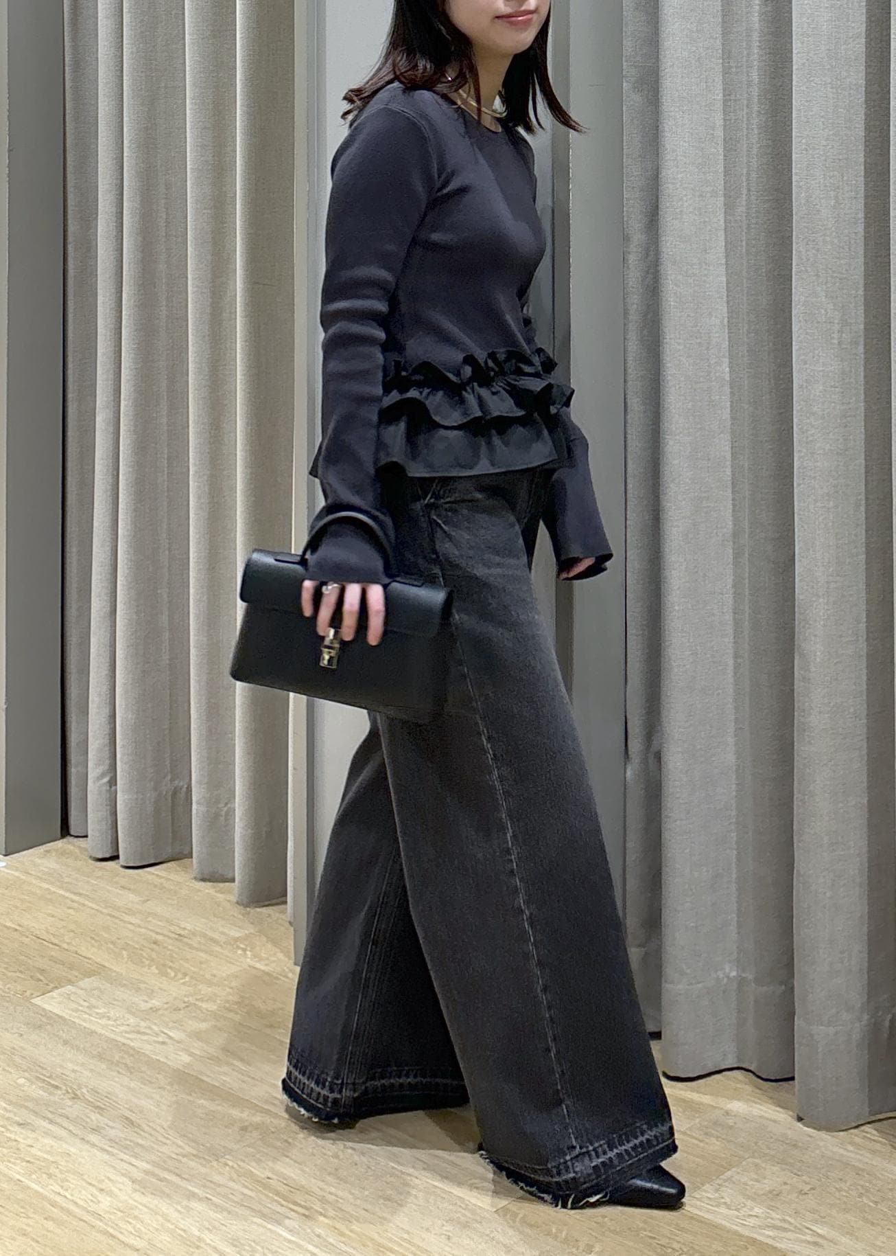 裾フリルニット×バギーデニム
