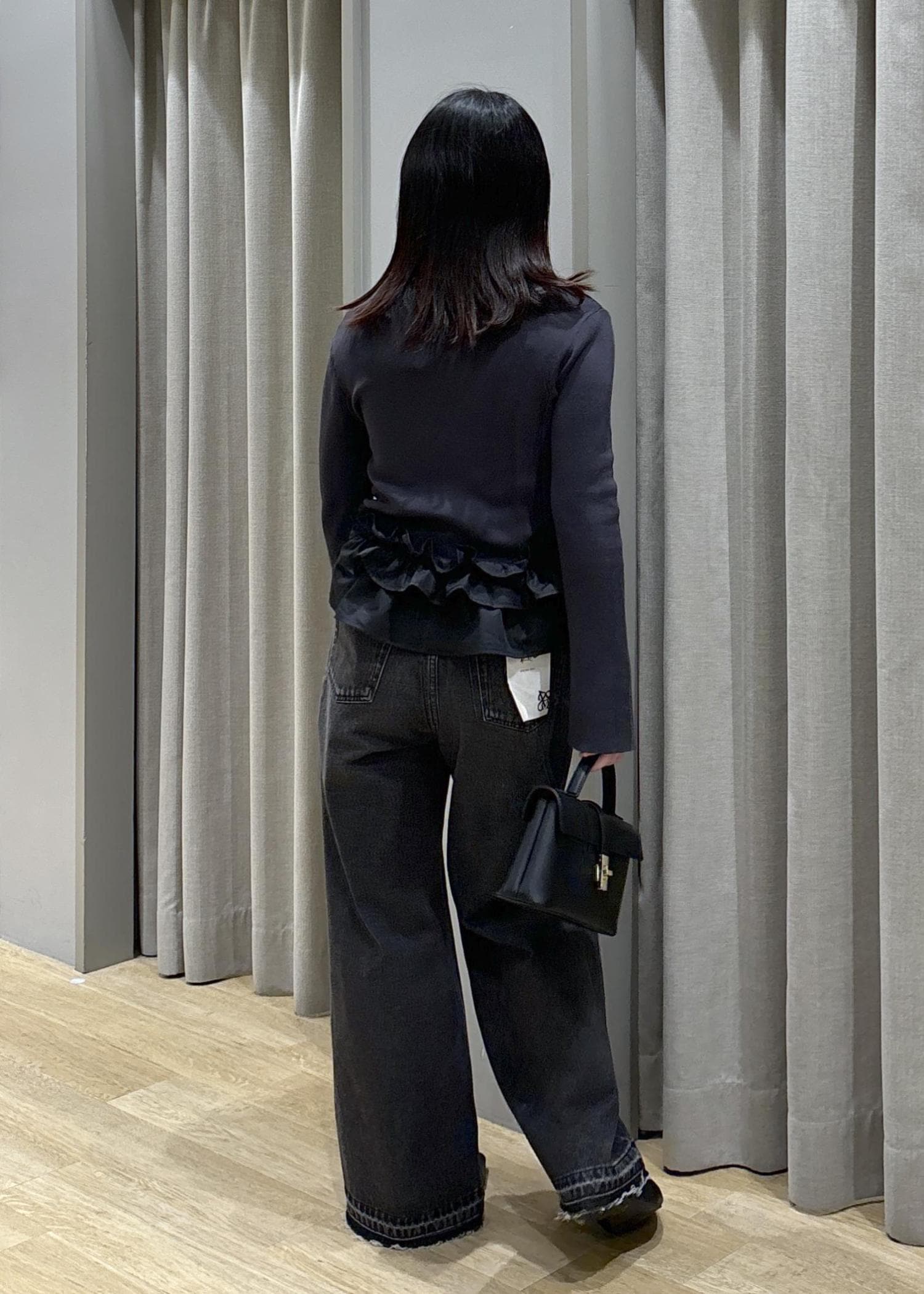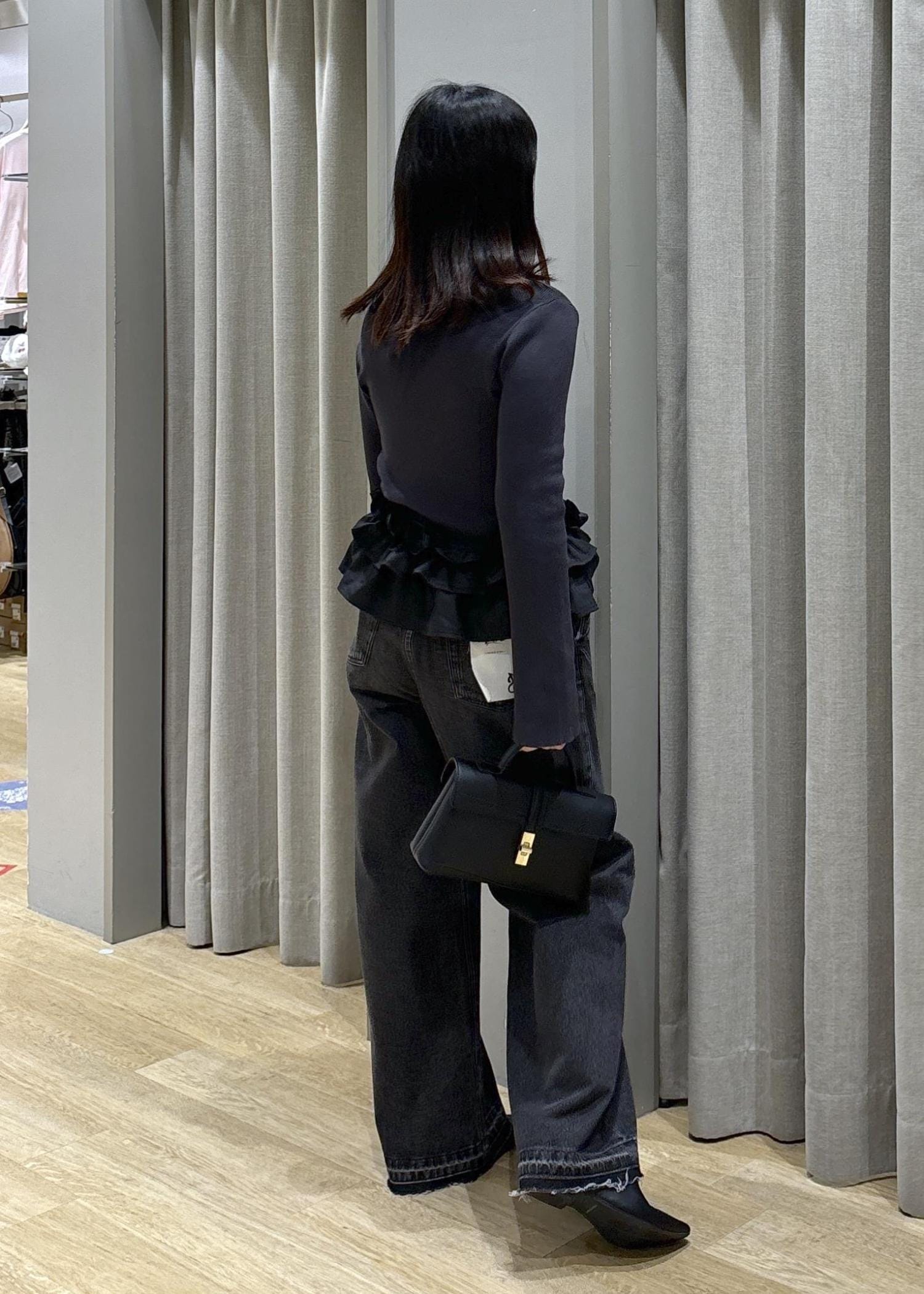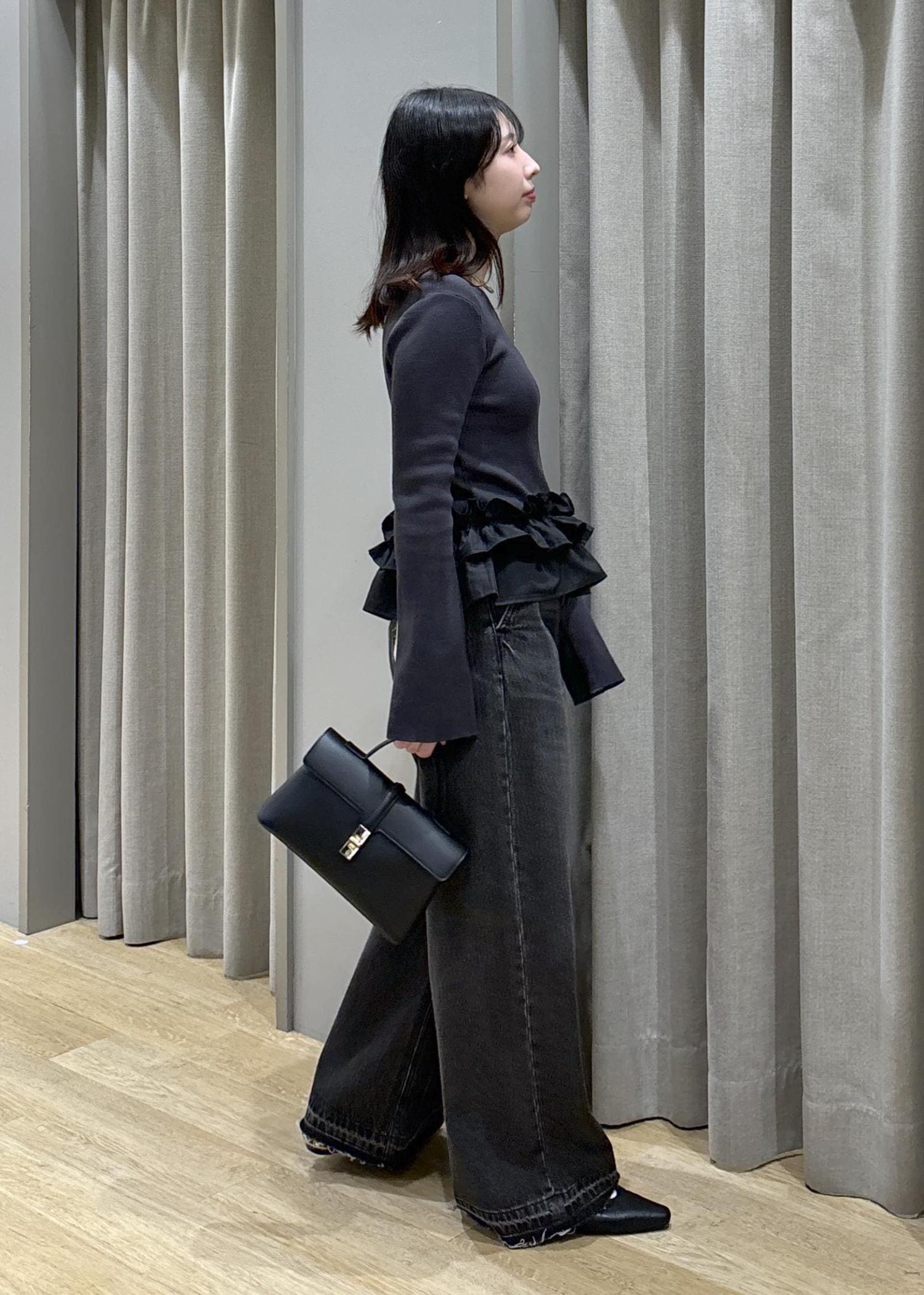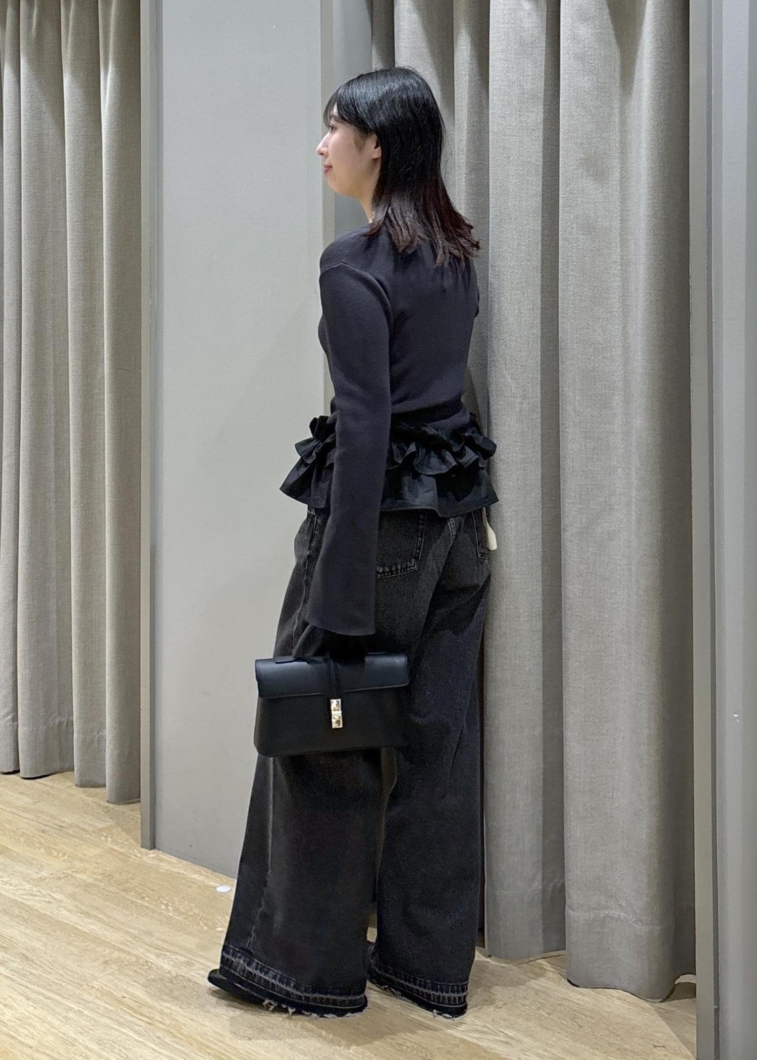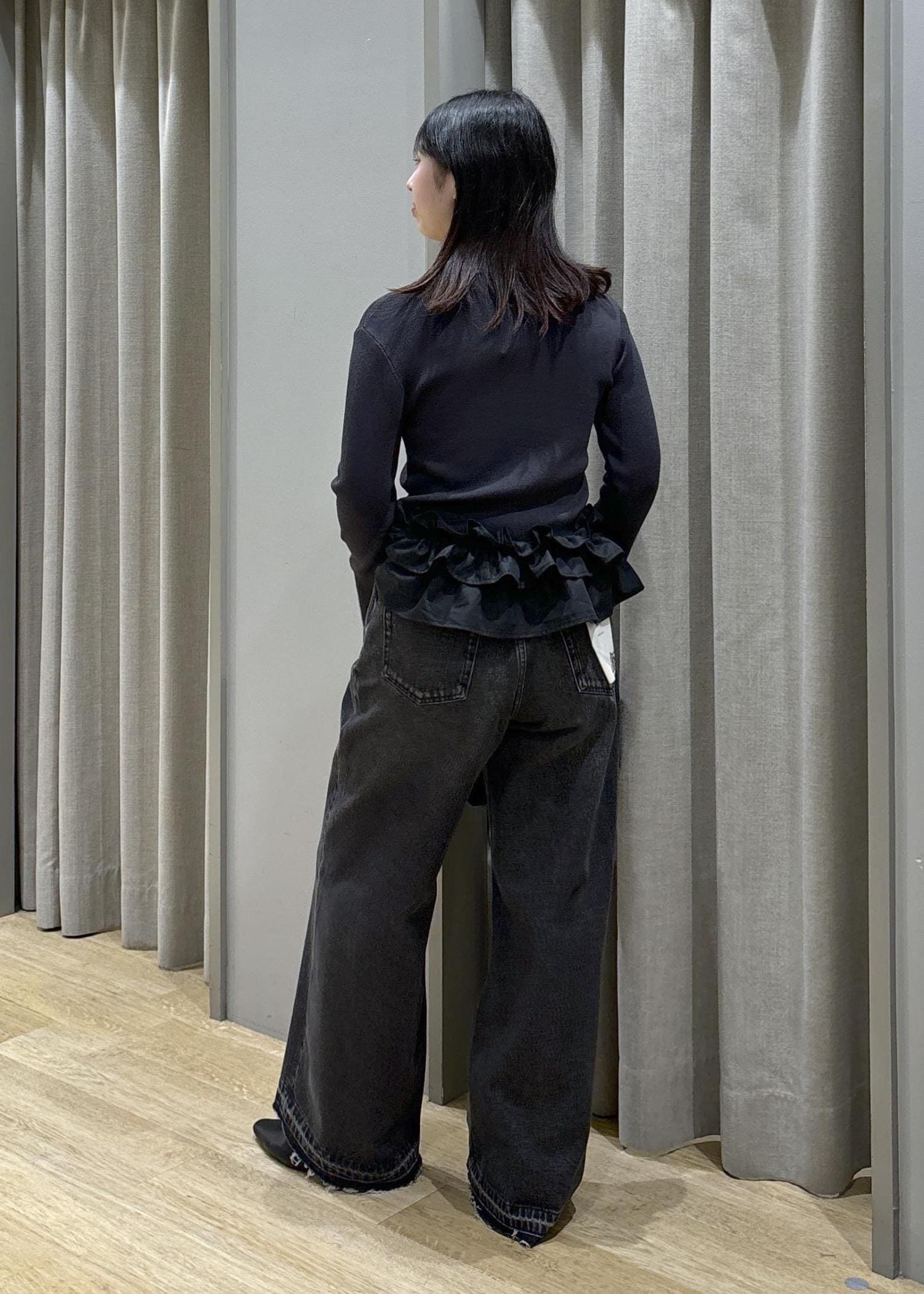 裾フリルニット×バギーデニム