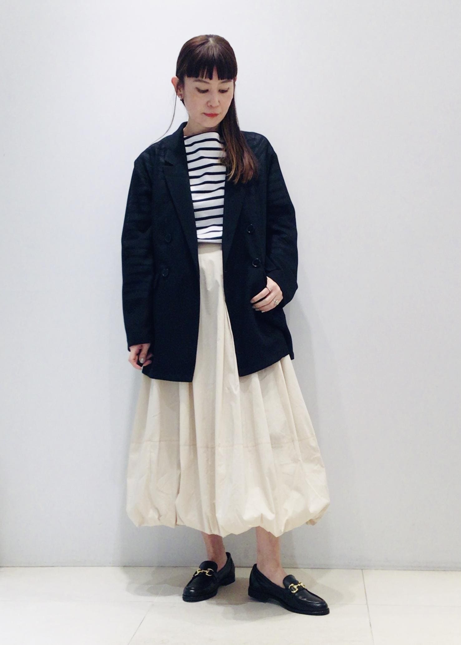 ボーダートップス•ジャケット•ローファーでシンプルながらも目を惹くフレンチカジュアル風なスタイリングを組んでみました♩