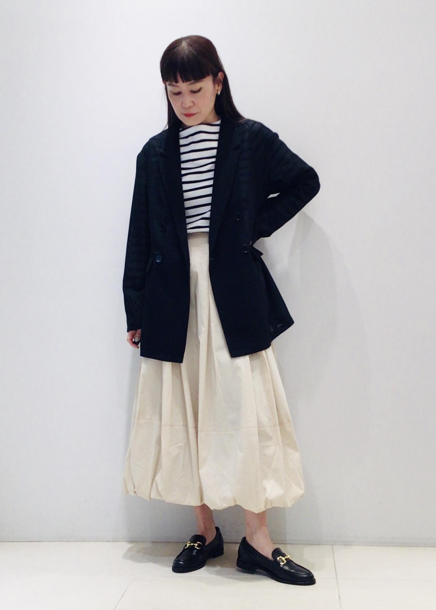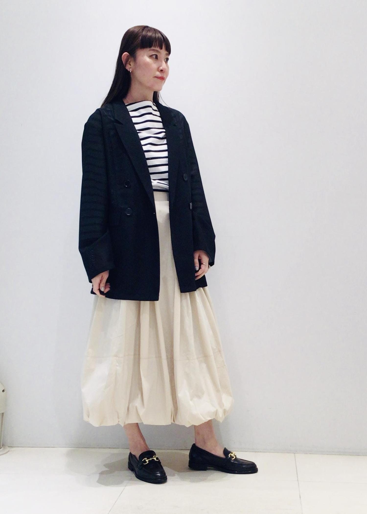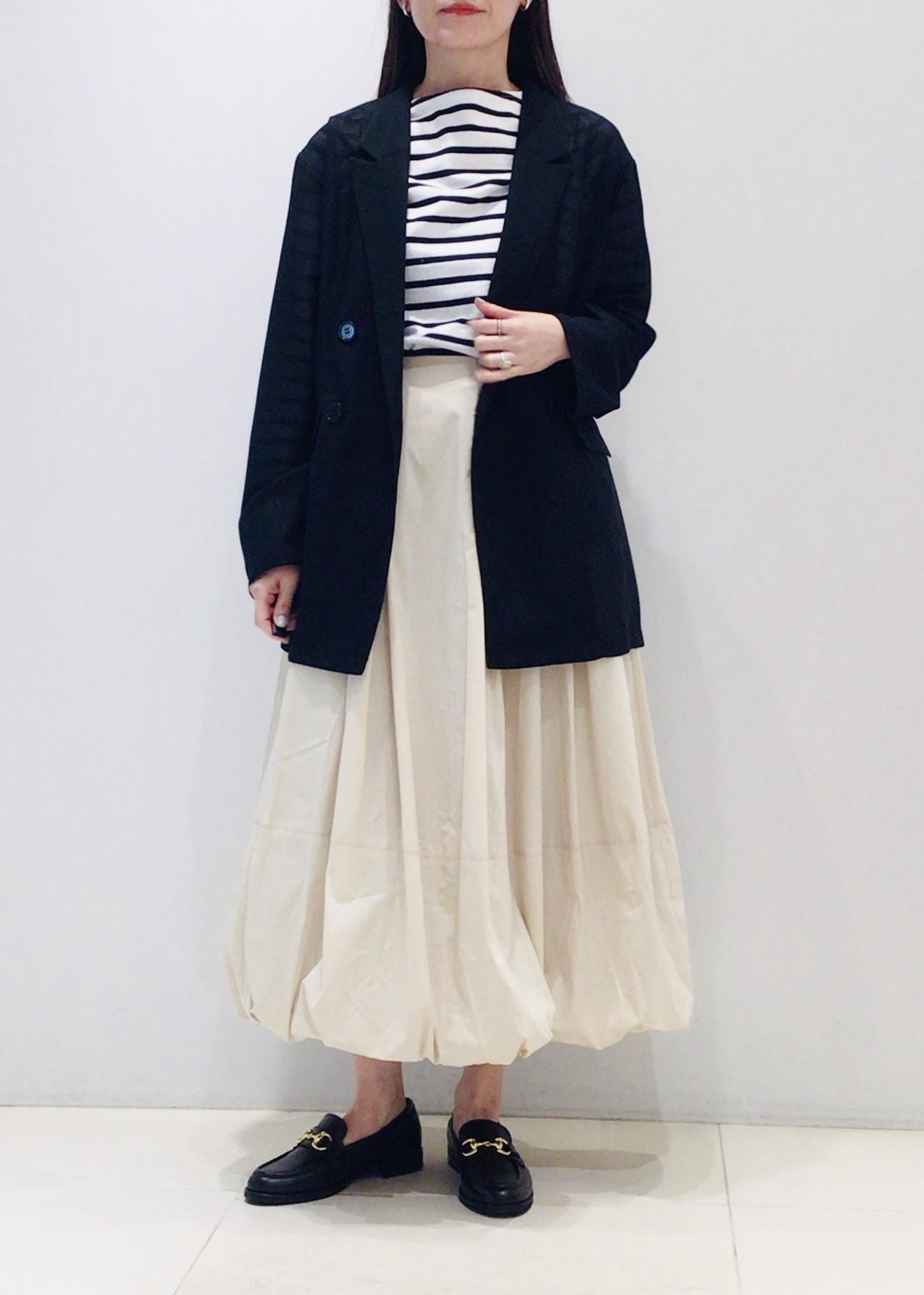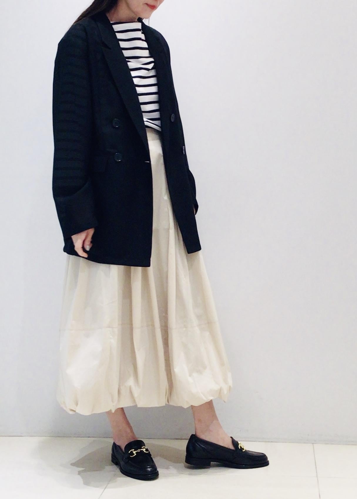ボトムは今季トレンドのバルーンスカートで甘さをプラス