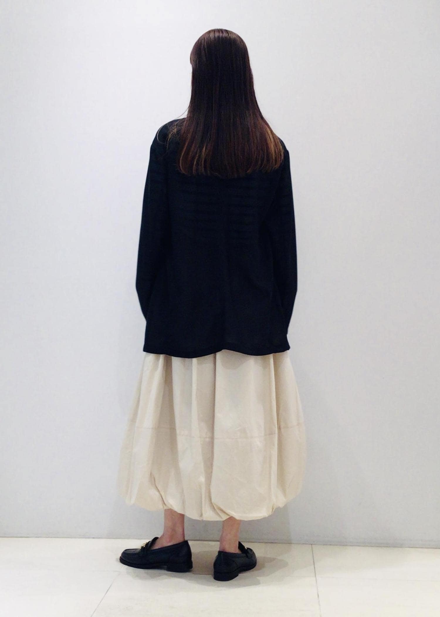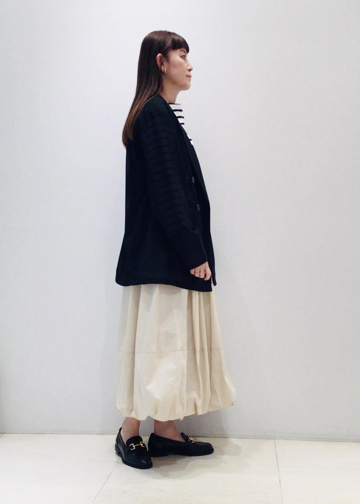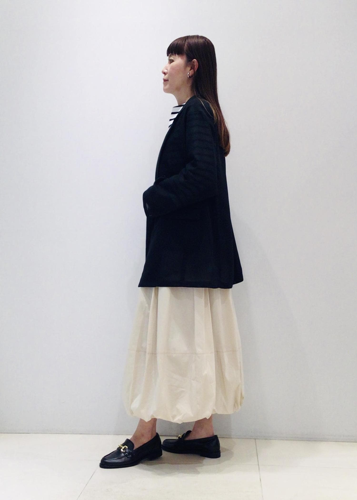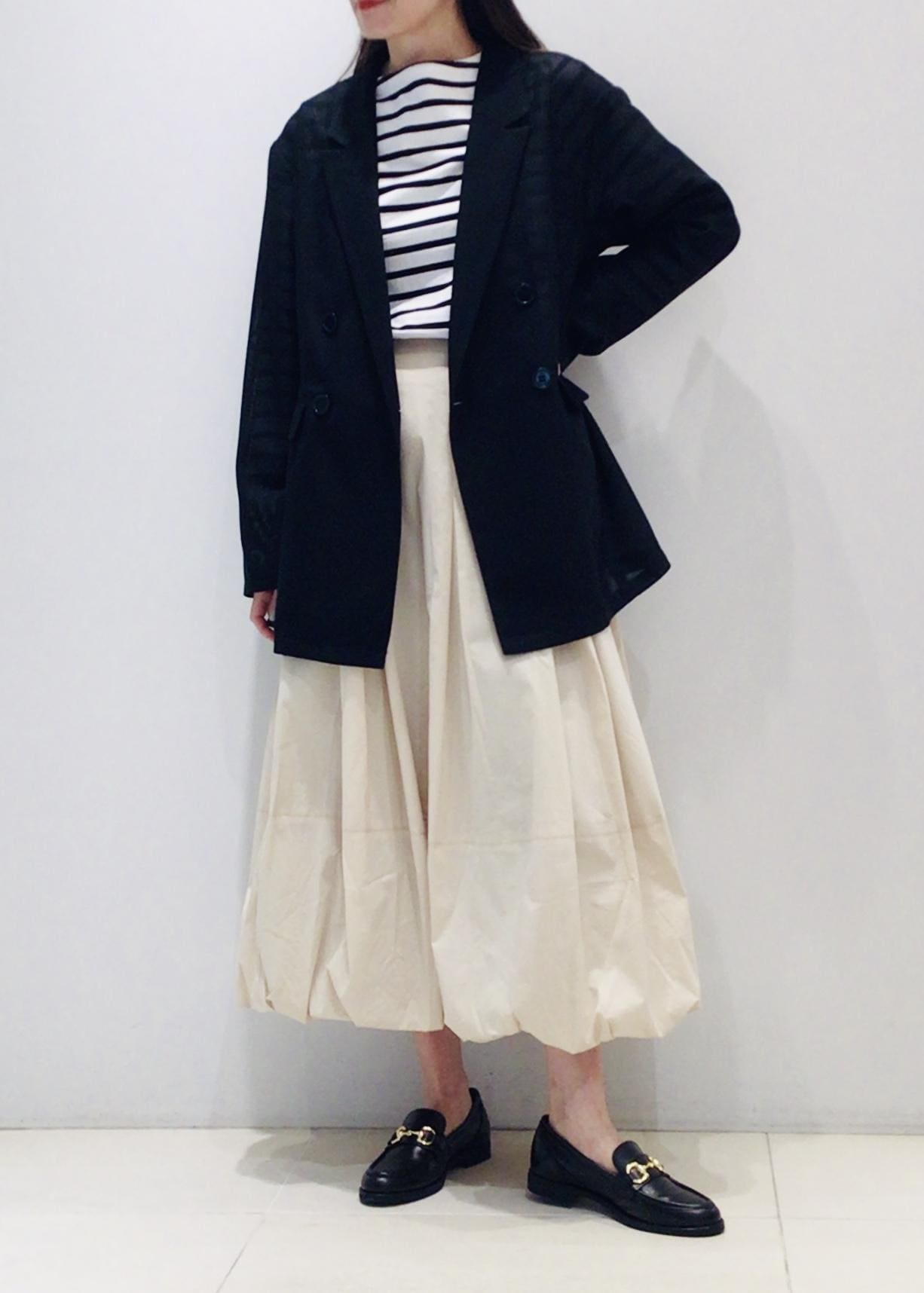 ボトムは今季トレンドのバルーンスカートで甘さをプラス
