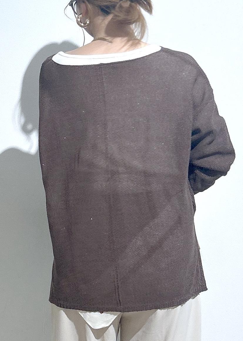 サマーニットのようなサラッとした素材。シアー感もあり透け感を楽しんでお召しいただけます。