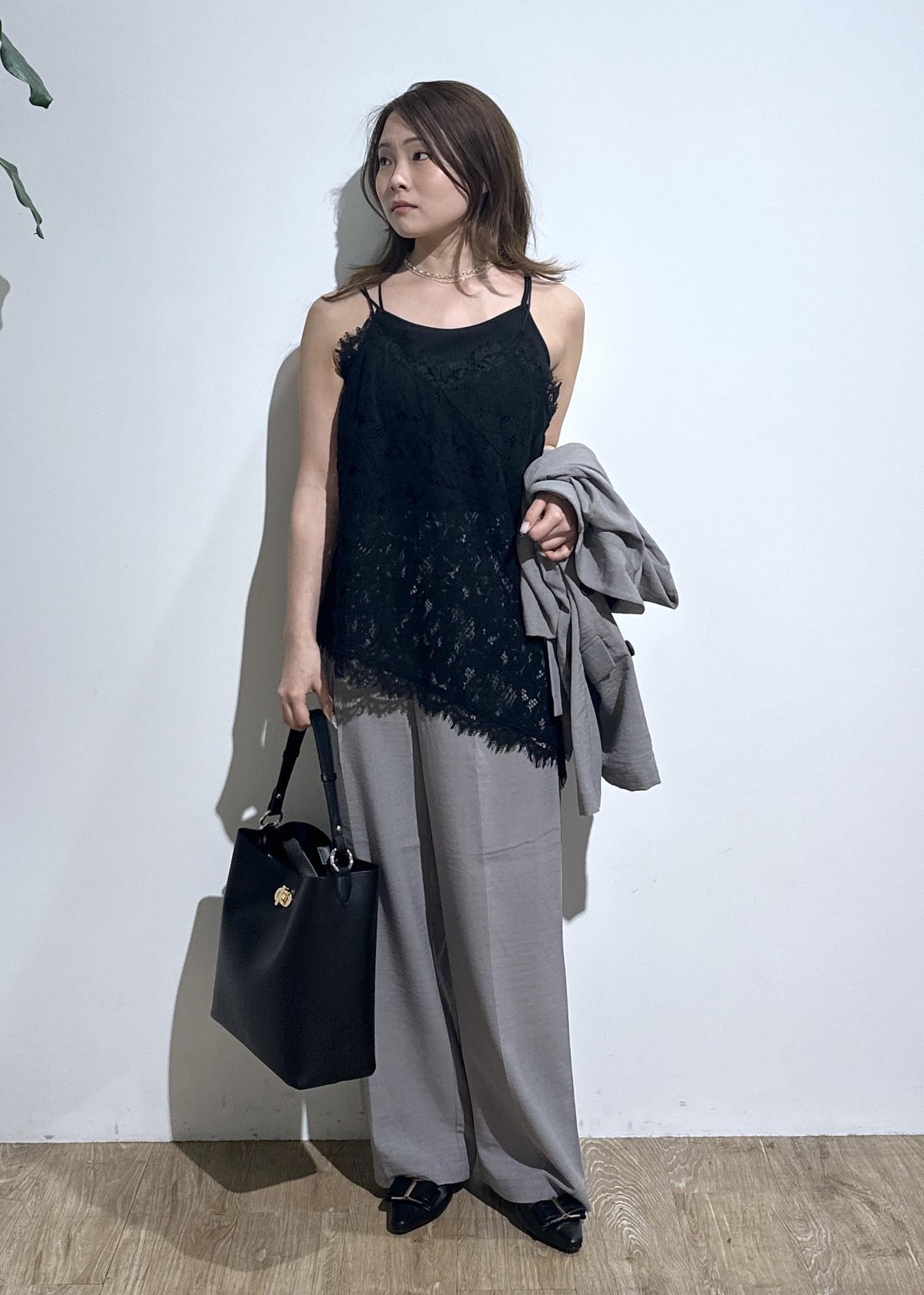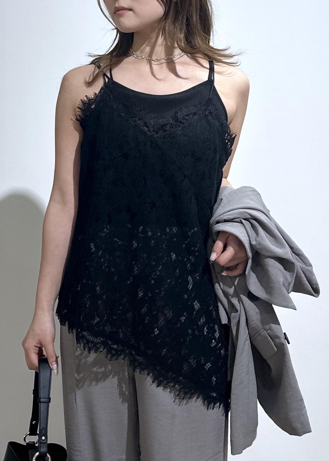 VISレースアシンメトリーキャミソールブラック / F¥6,589レビュートレンドのレースキャミで、レイヤードやインナーで入れるだけでオシャレ見えします!