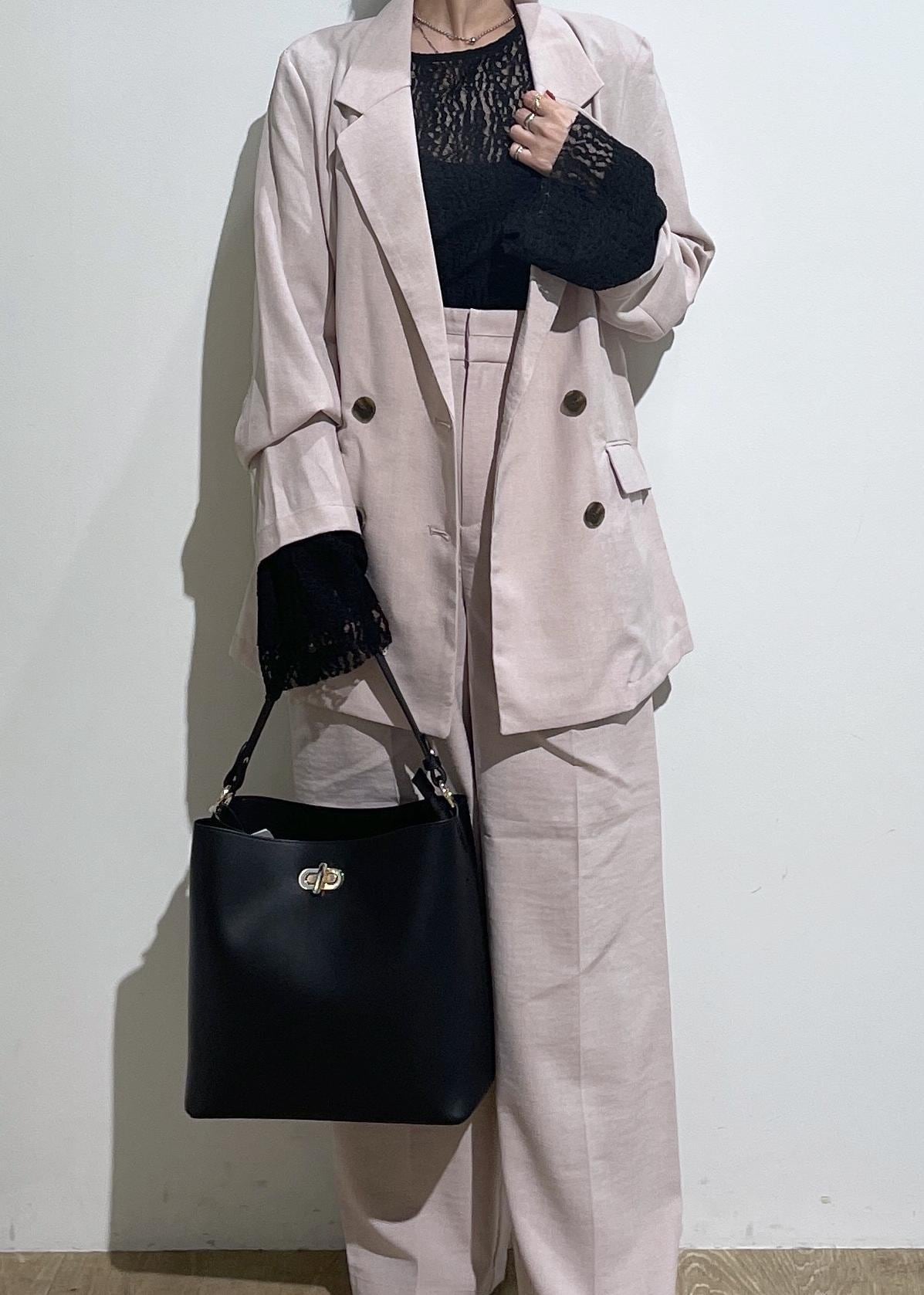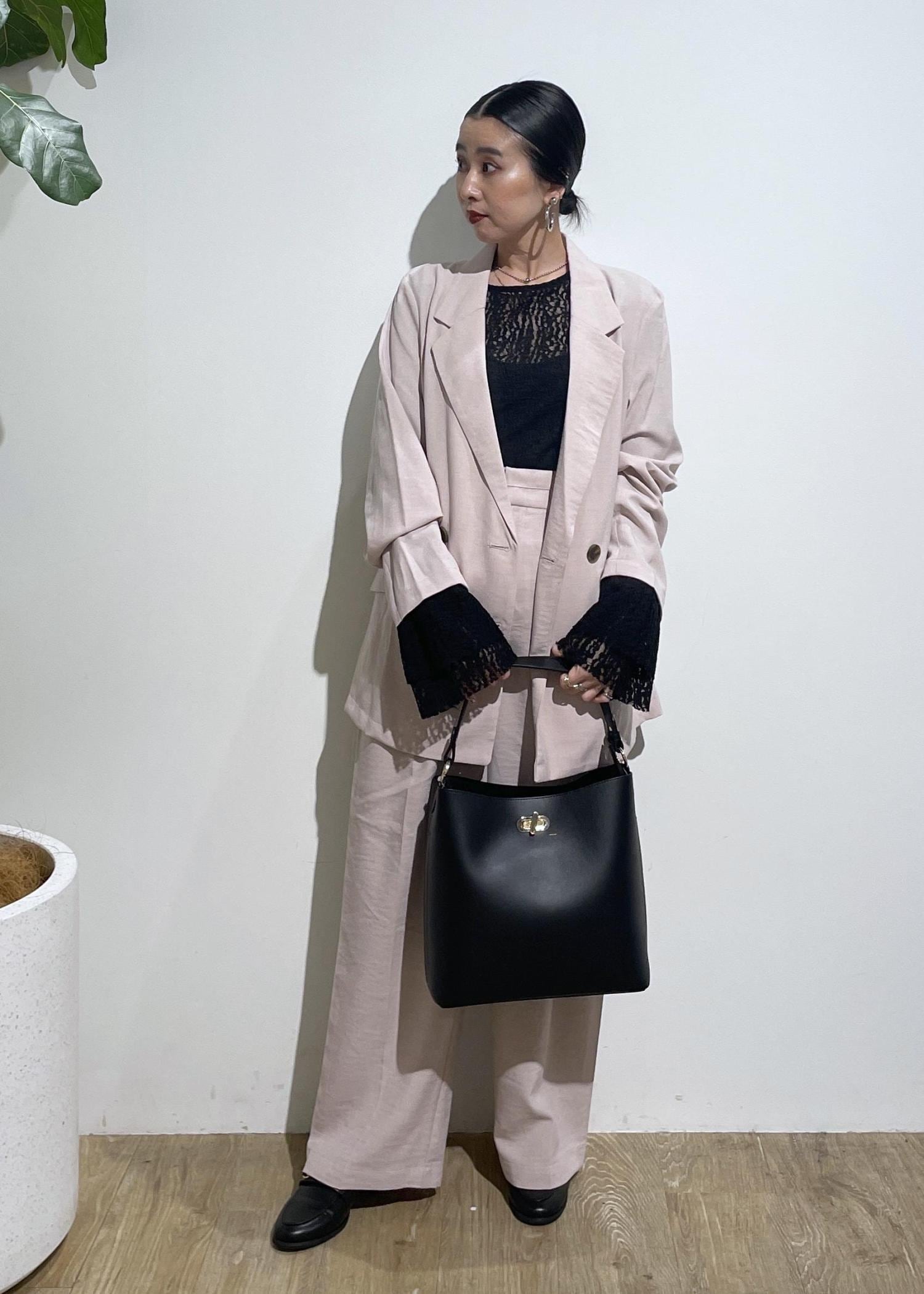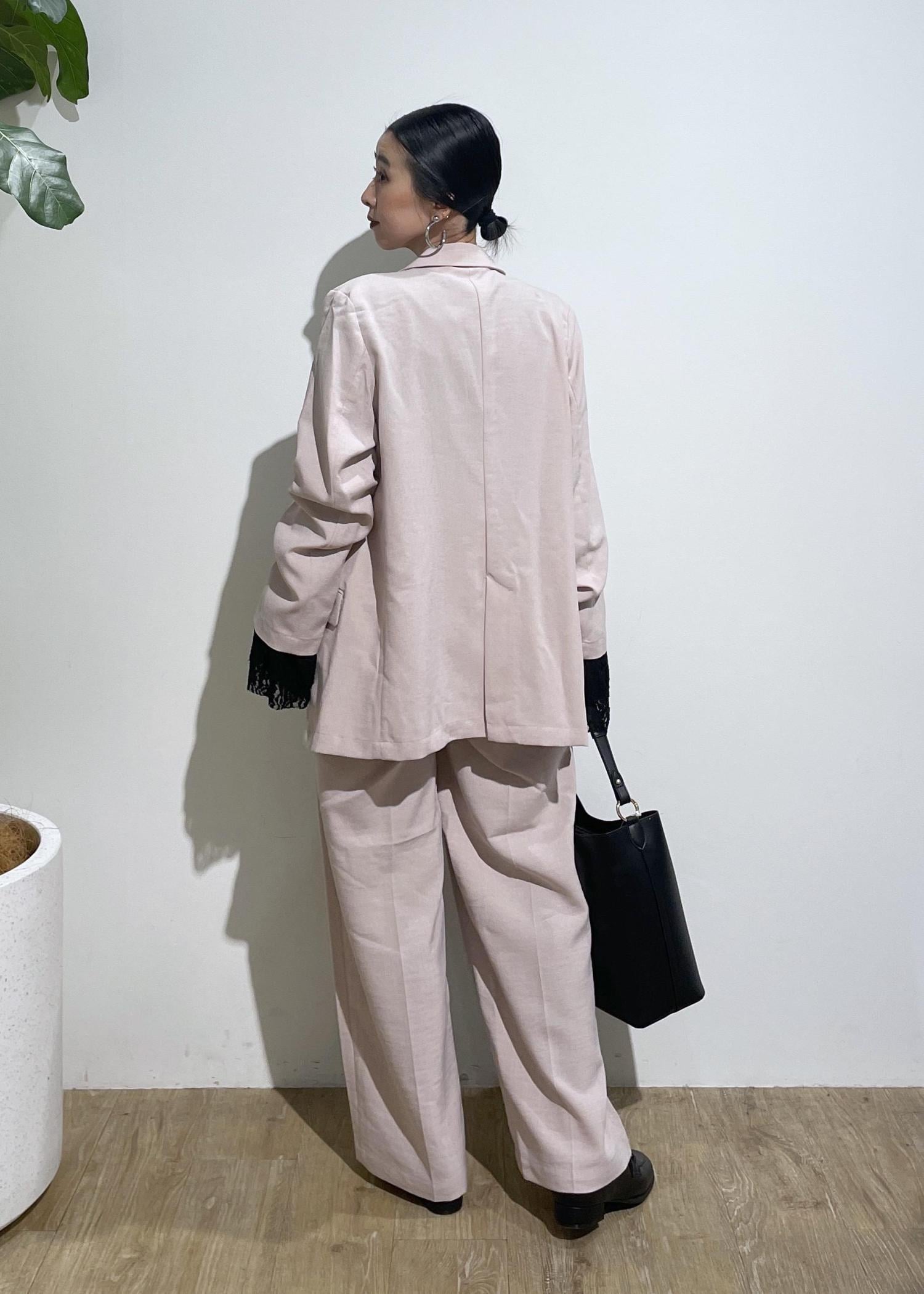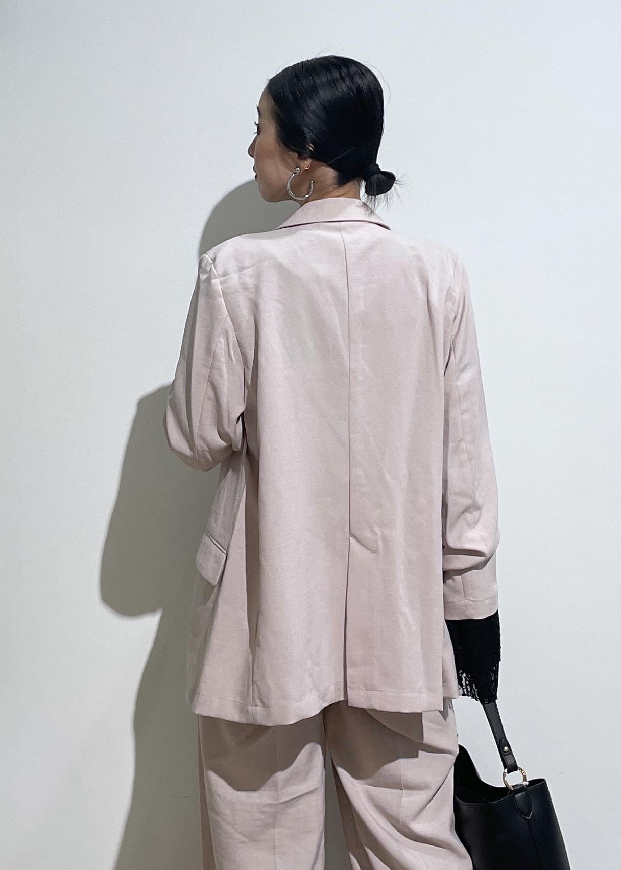 セットアップは、1セットもっているとコーデの幅が広がり便利です。今回は、ピンクのセットアップ着用しましたが使いやすいピンクで挑戦してみたい方にもおすすめ。
