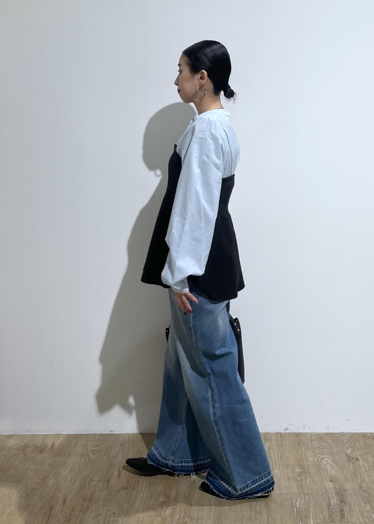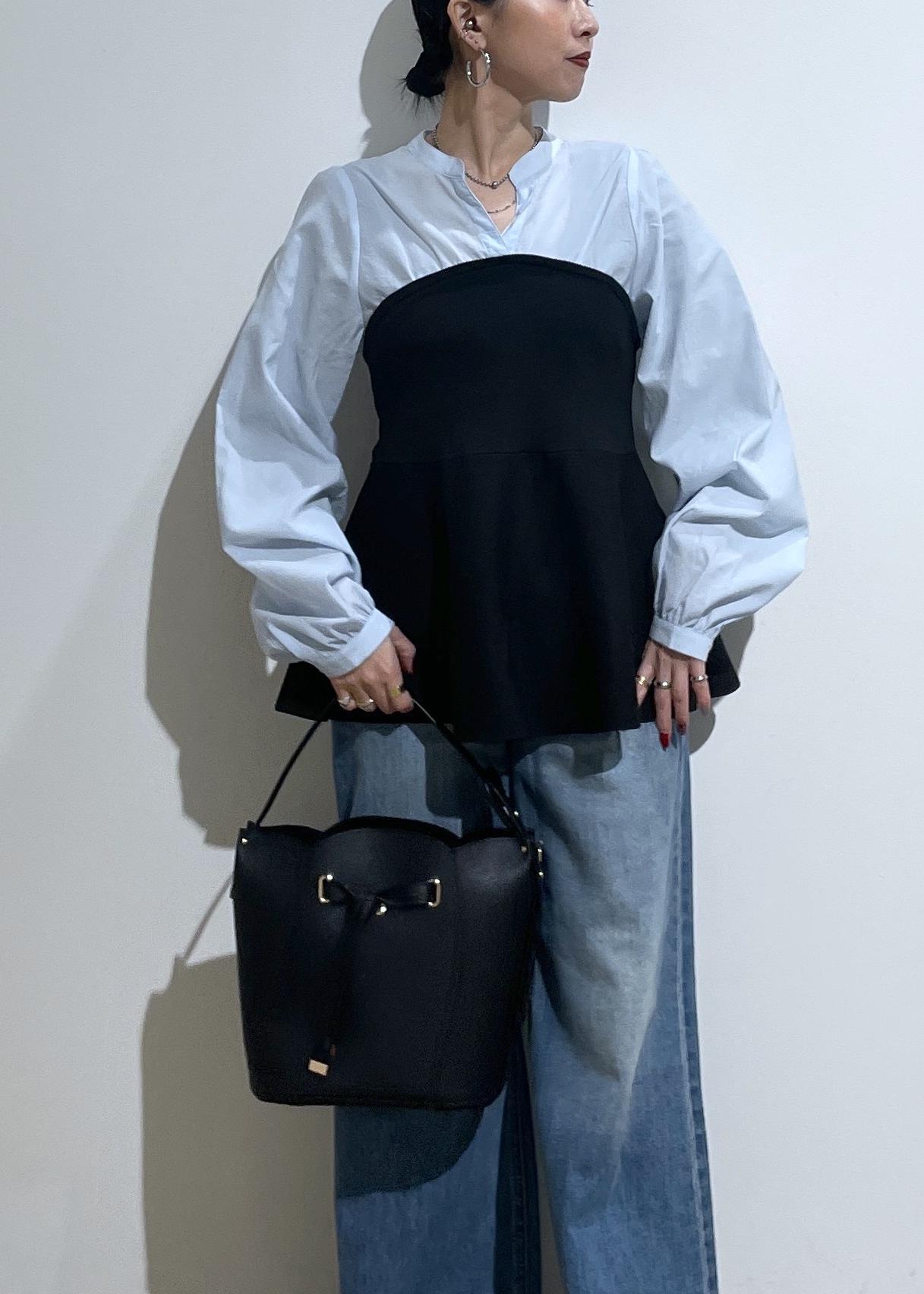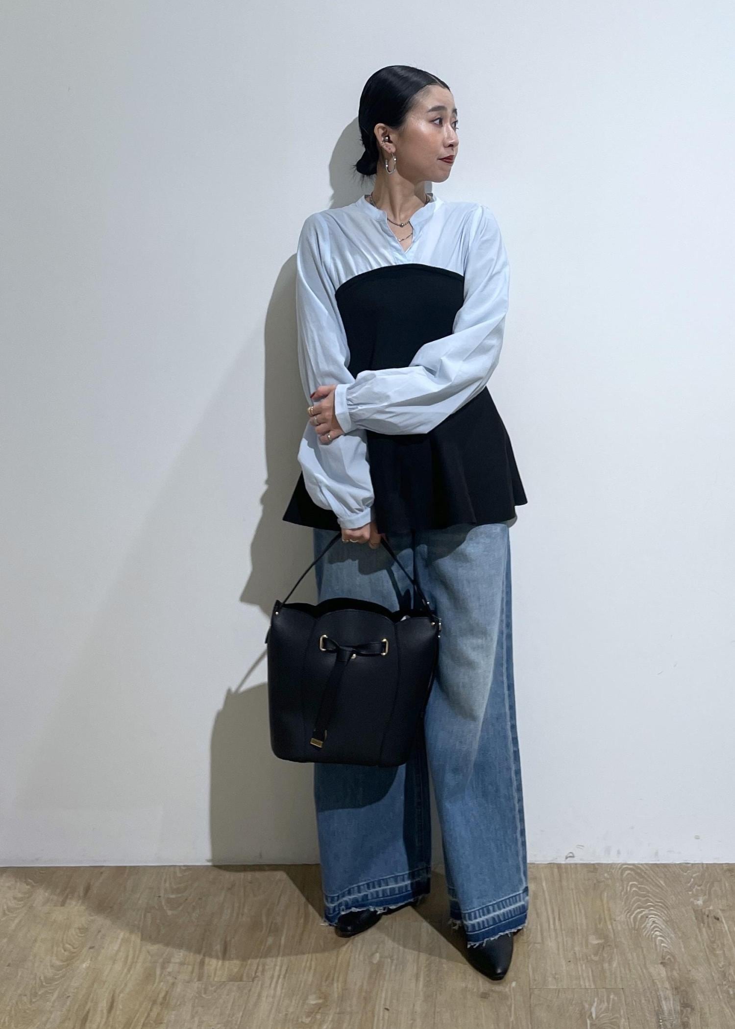 2BUY10%OFFVISペプラムニットドッキングブラウスブラック / F¥3,953レビュー低身長でもバランスよく着用可能