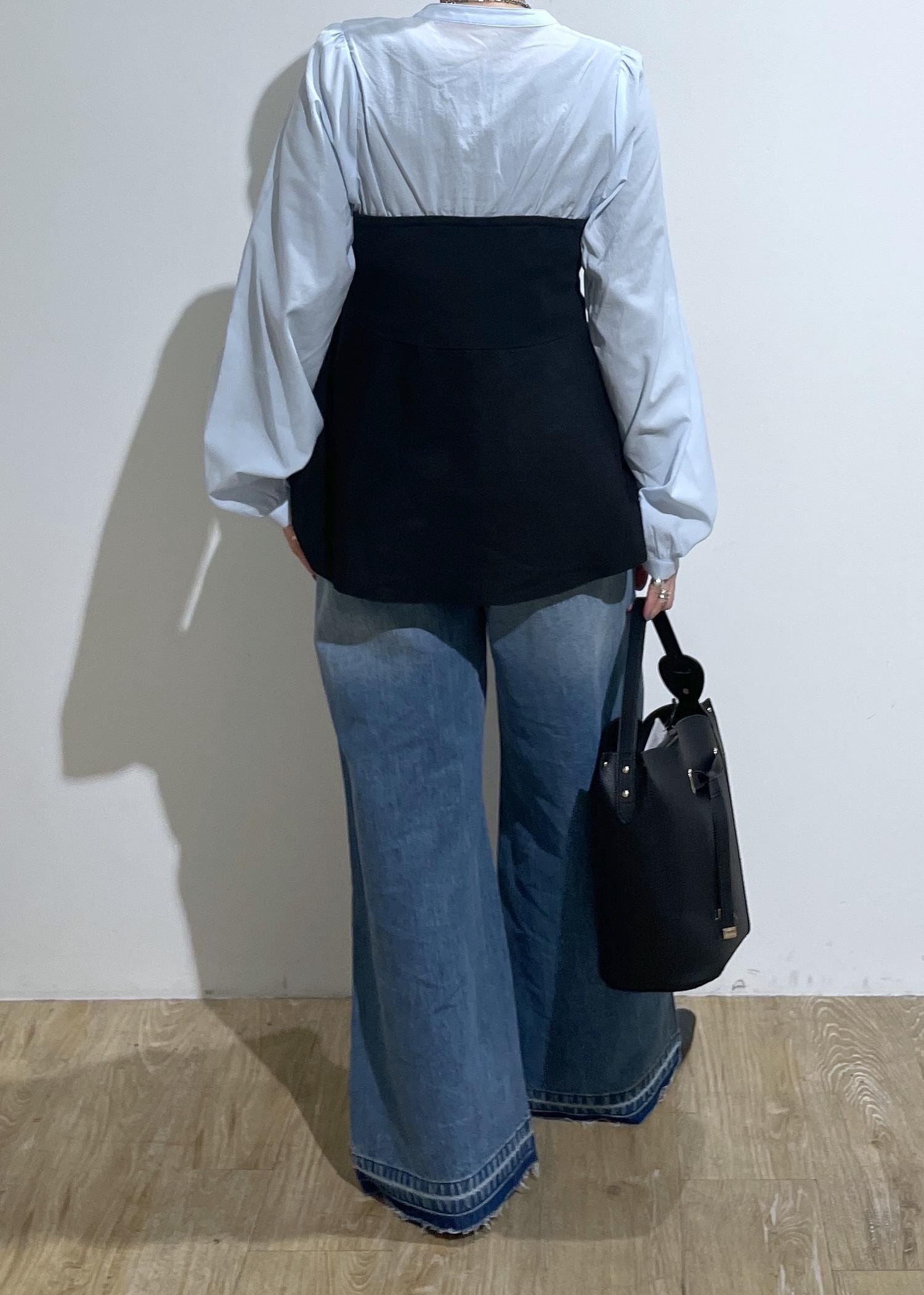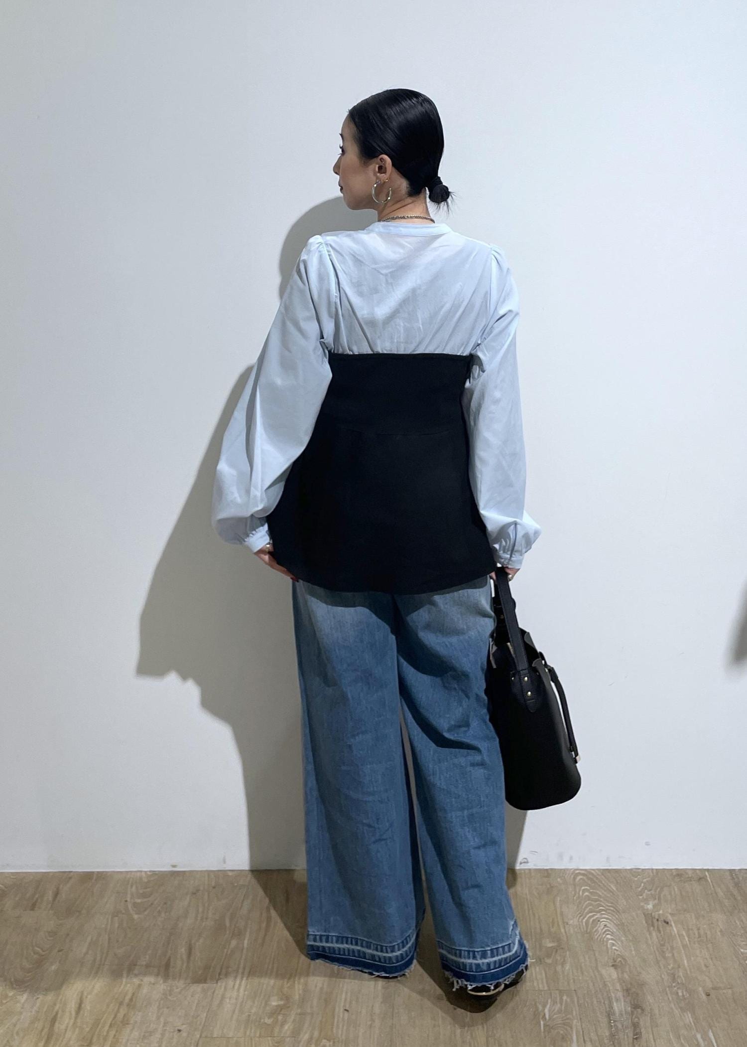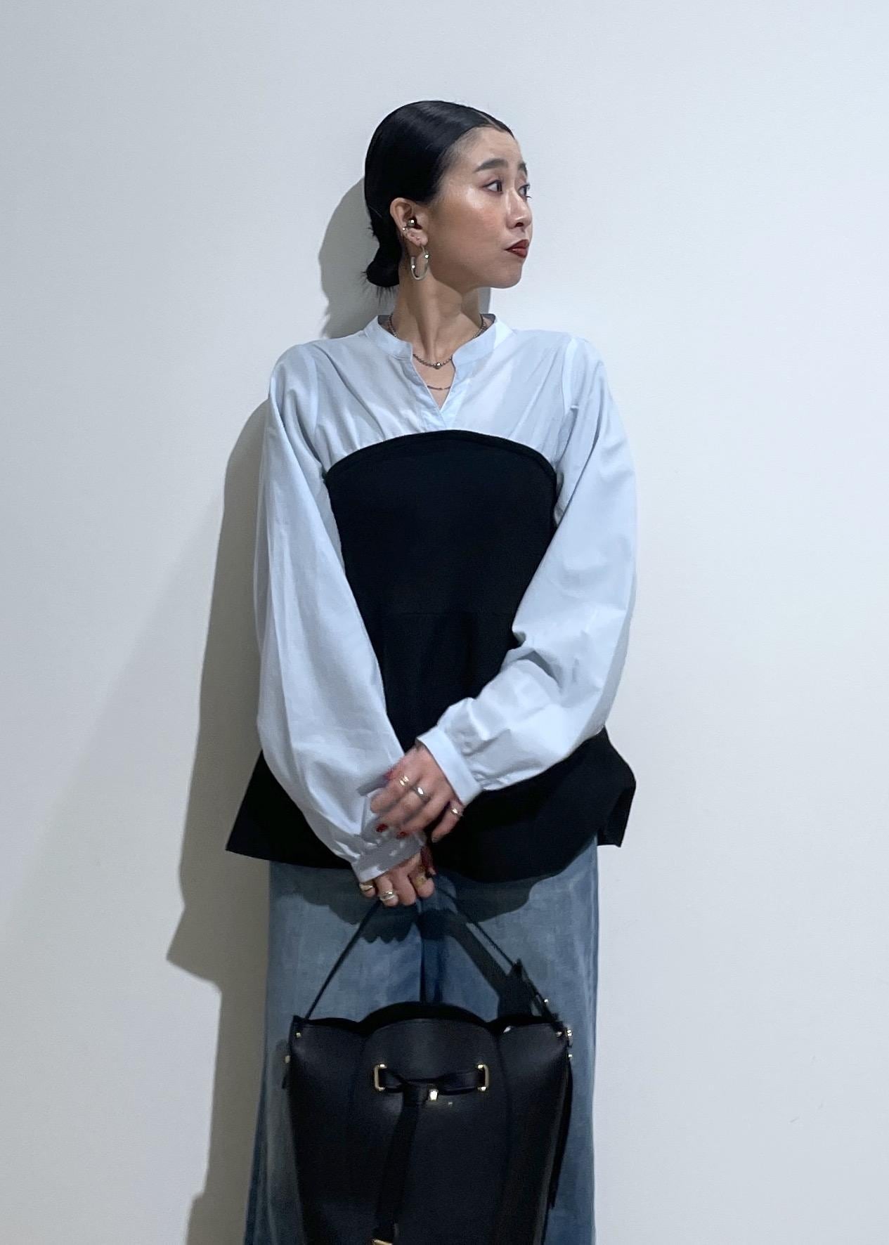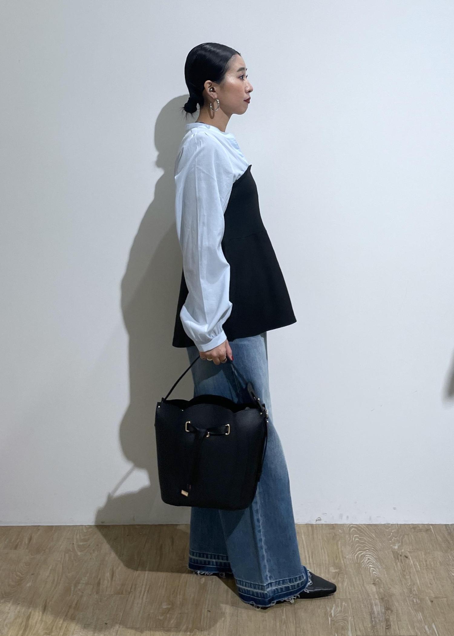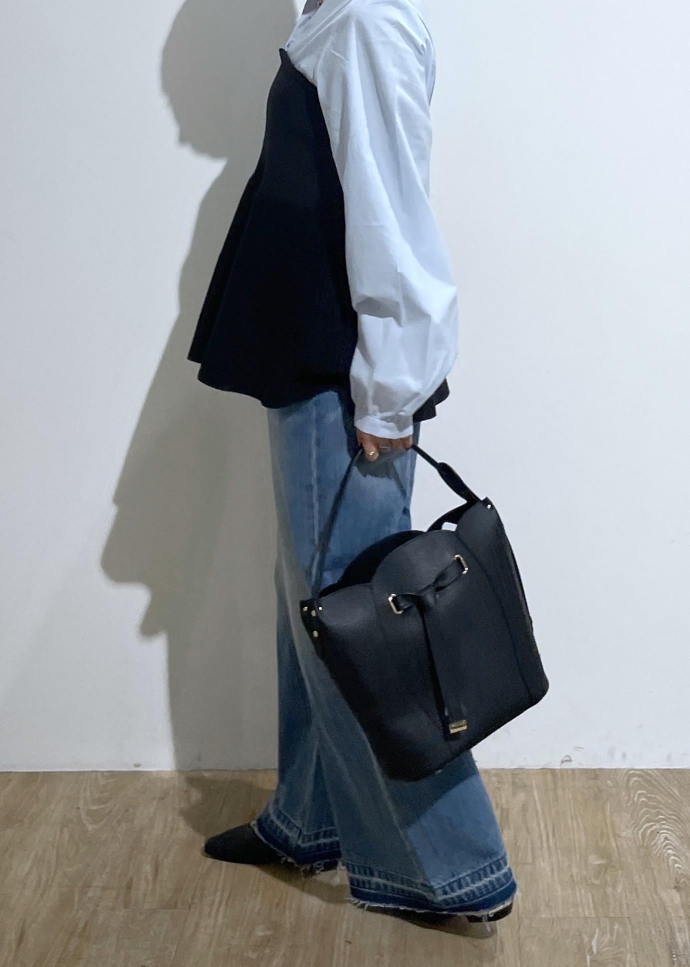 小物は、ブラックでしめてまとまりのあるブラック、ブルーコーデにしました。
