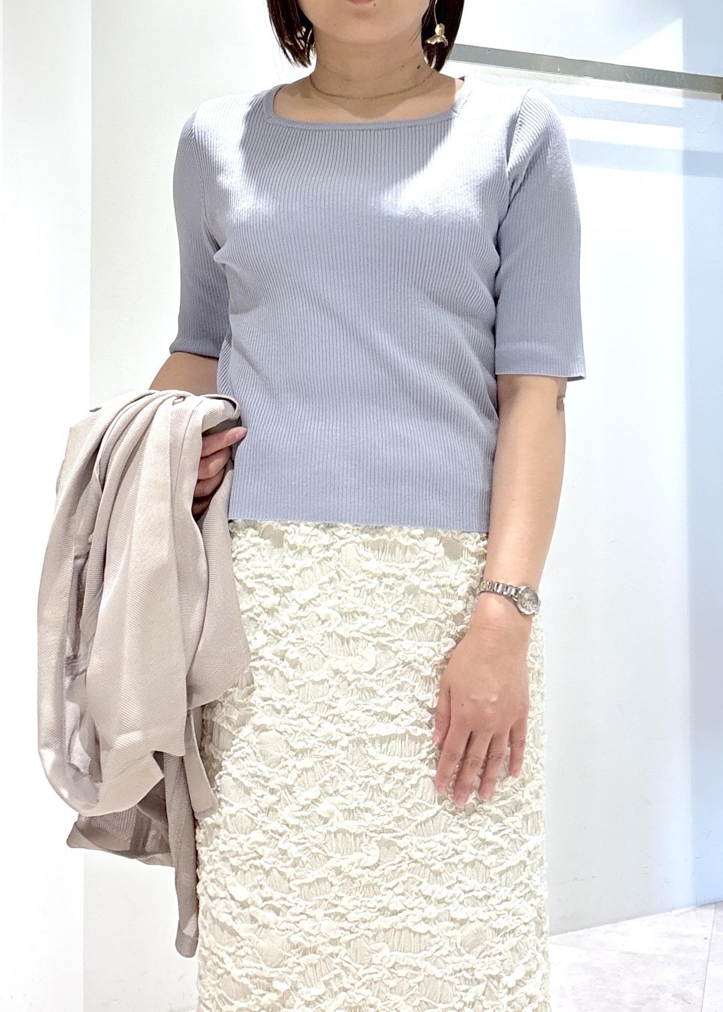 LE CERCLE par ropéスクエアネックメランジ半袖ニットプルオーバーブルー系 / F¥6,490レビュー▼サイズ感