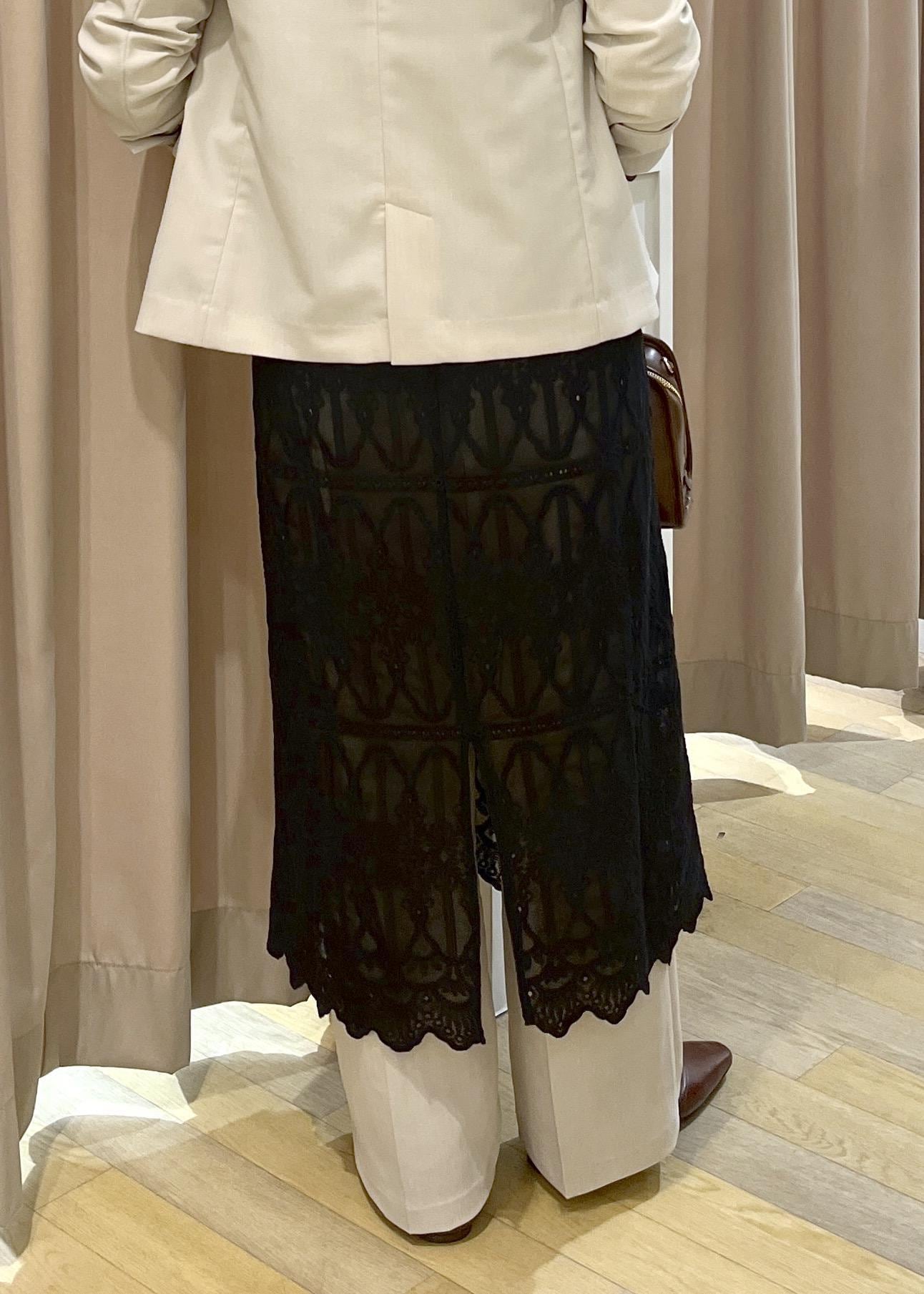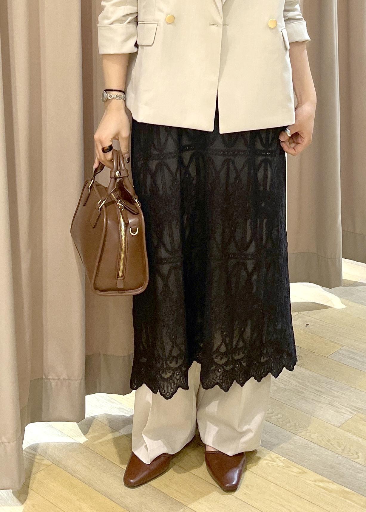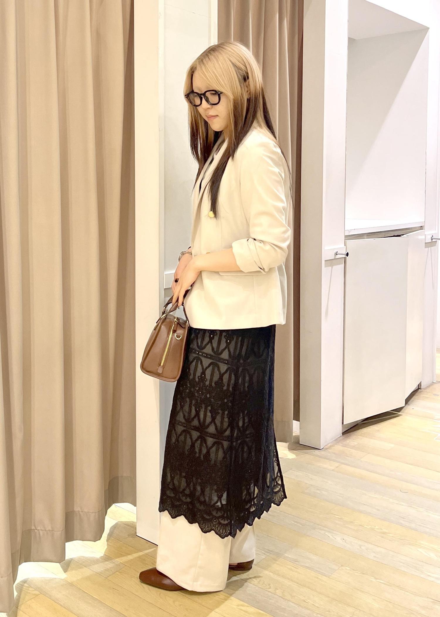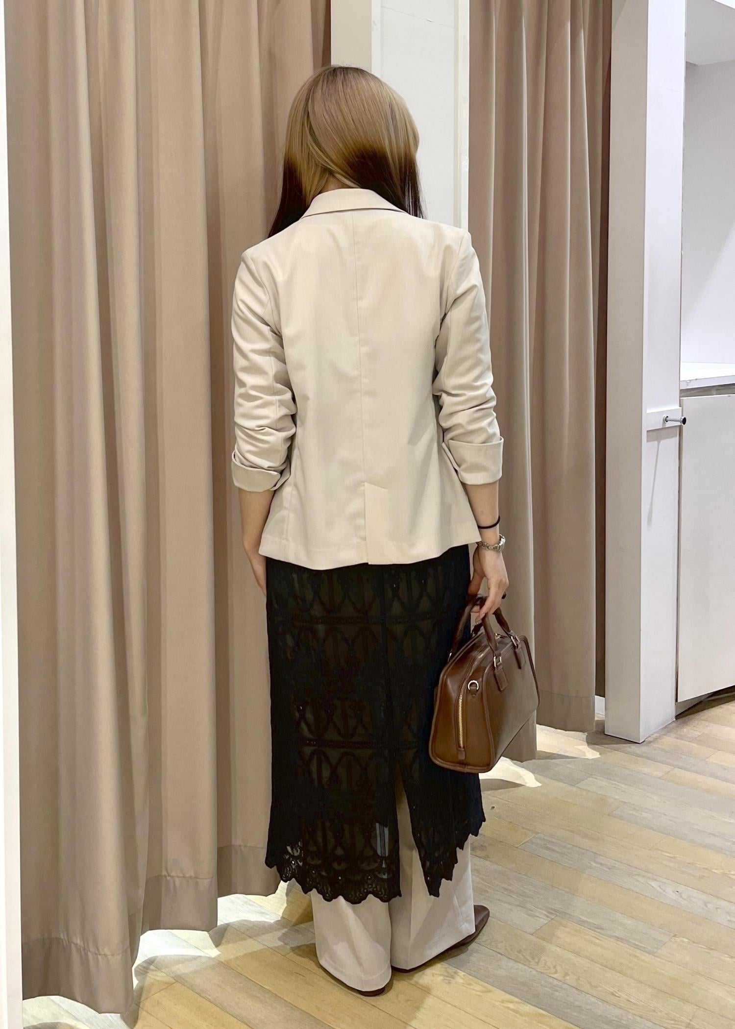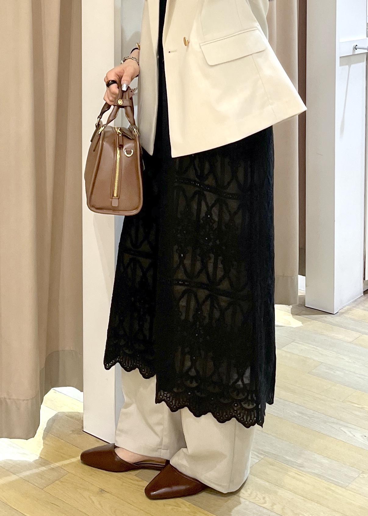 ベージュの明るめセットアップにブラックのワンピースを合わせて、統一感を出しつつ引き締まった印象のコーデを組んでみました!