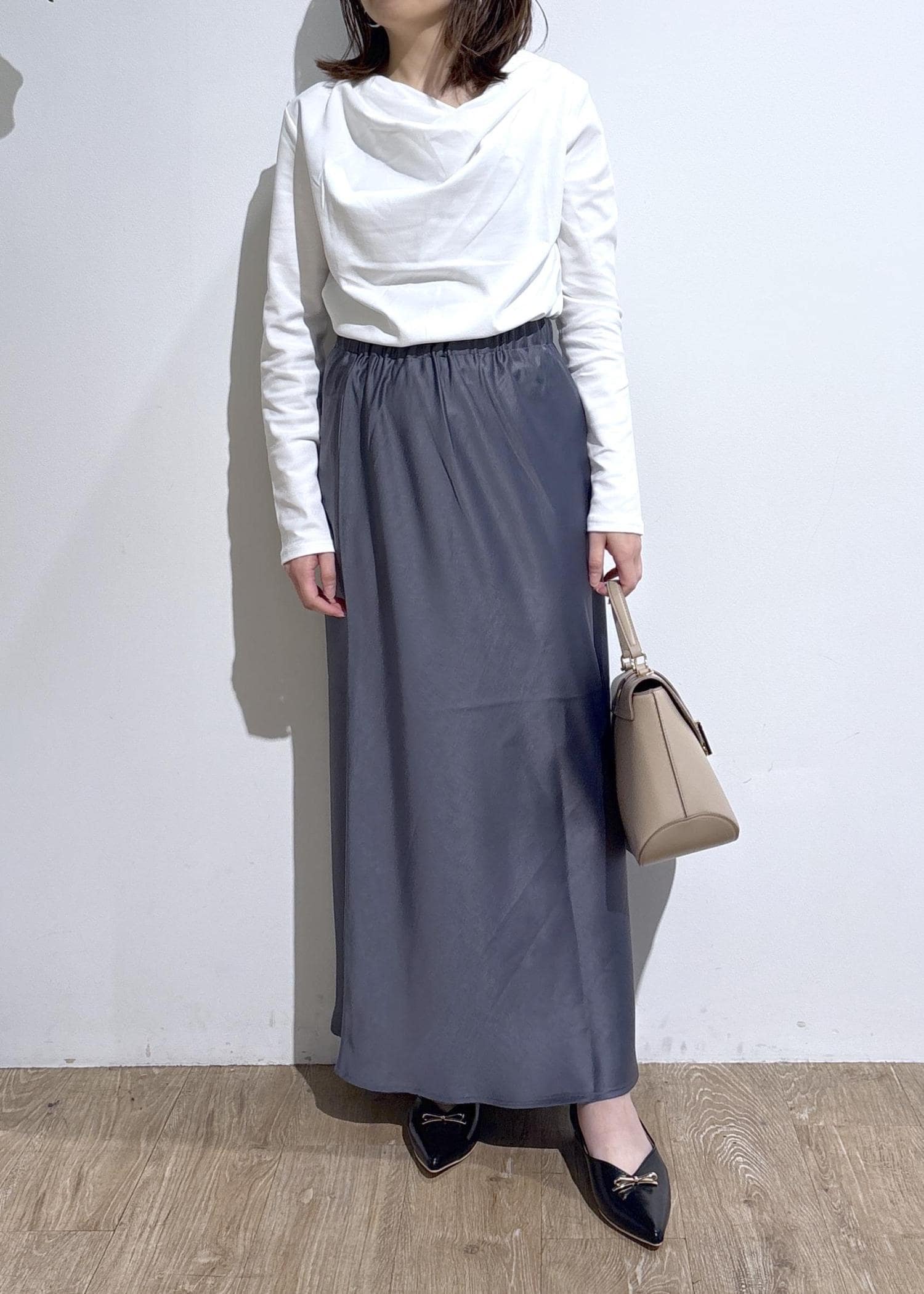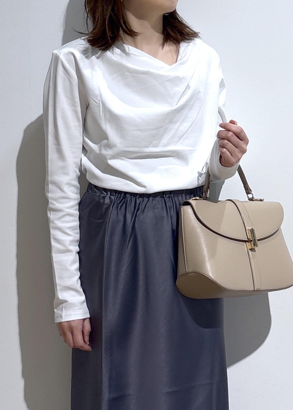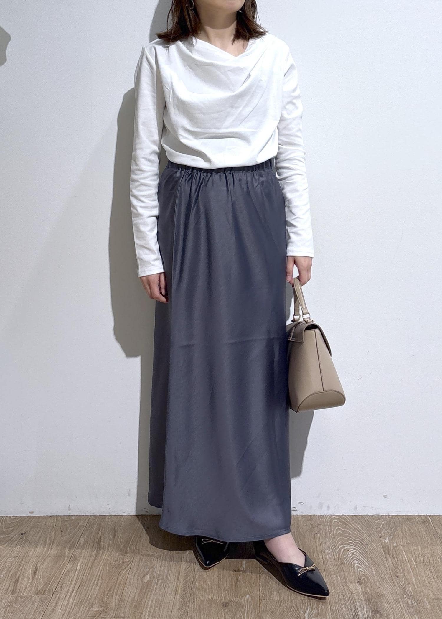ロペピクニックでは新鮮なドレープデザインのトップスに、サテンスカートを合わせた上品コーデ。