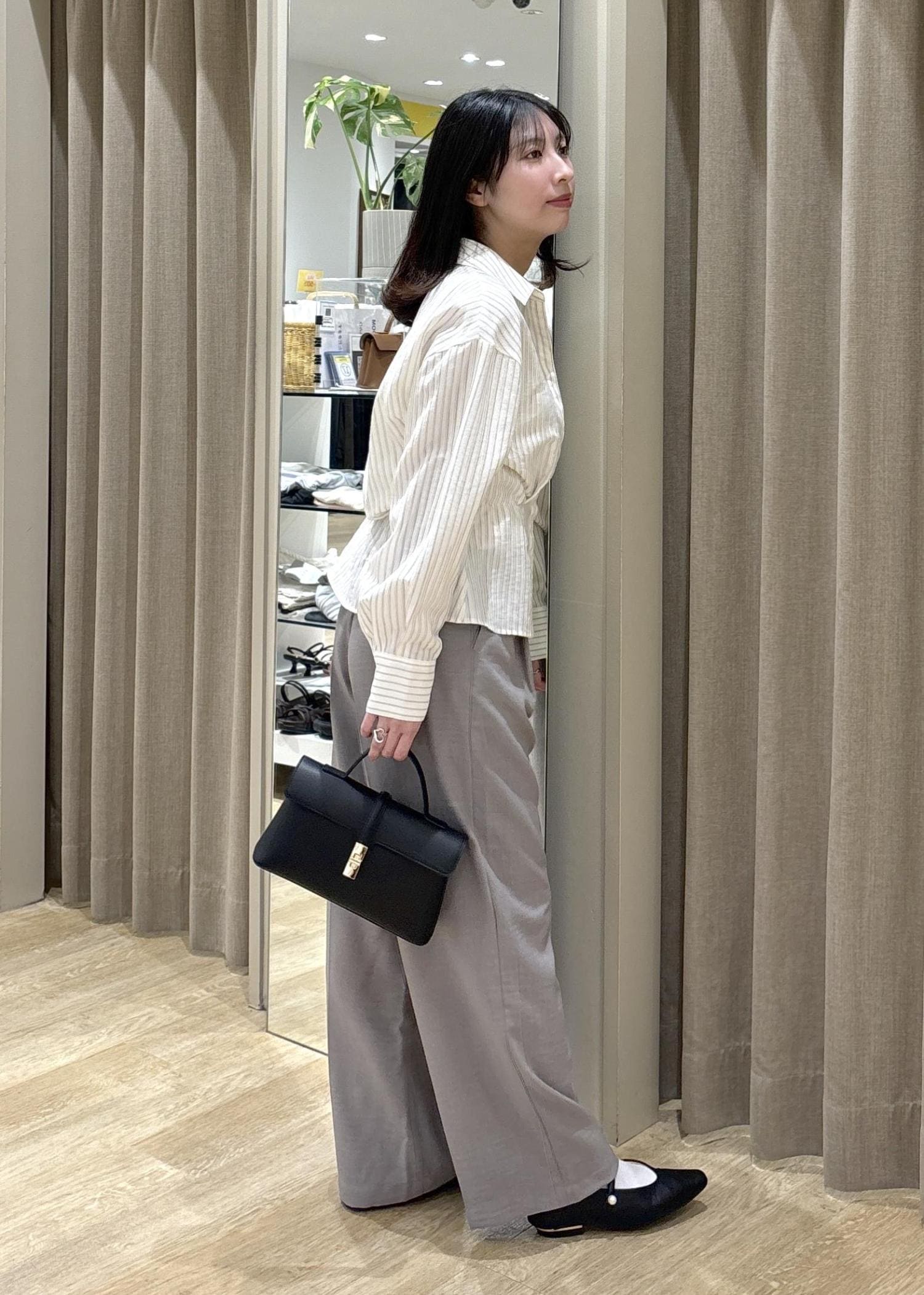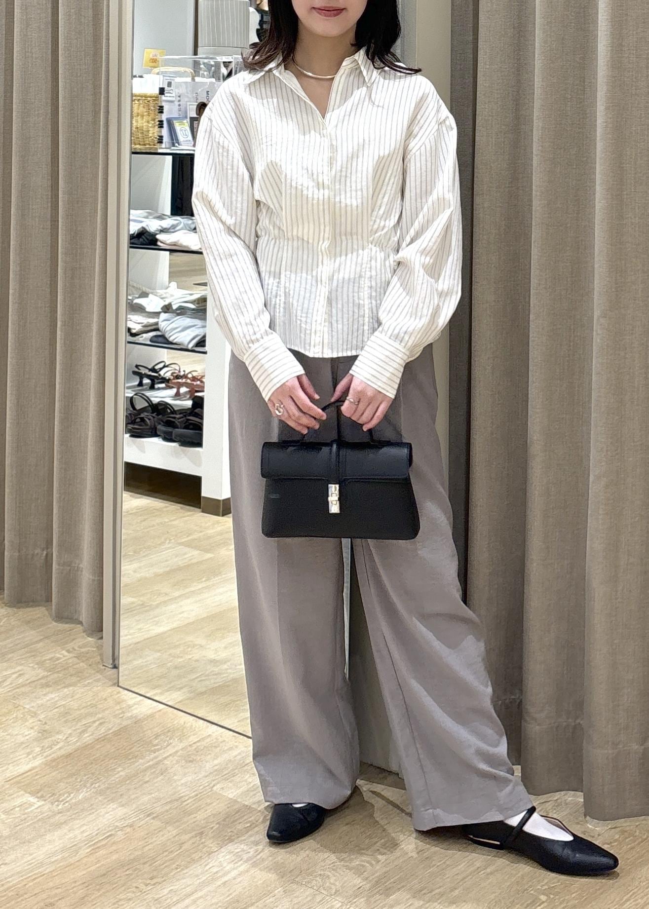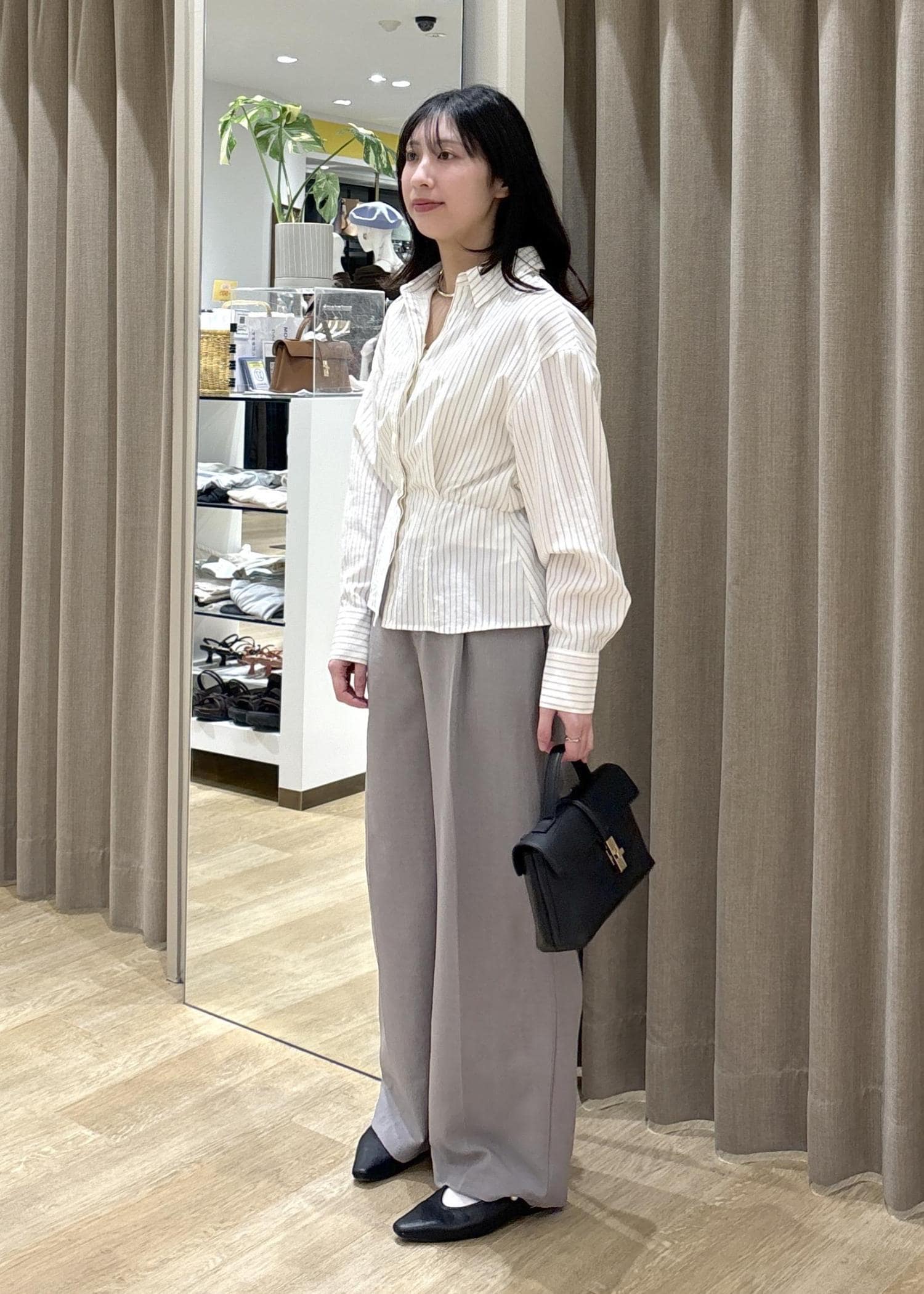 VISレイヤードストライプシャツオフホワイト / F¥6,589レビュー身長158cm、Fサイズ着用。
