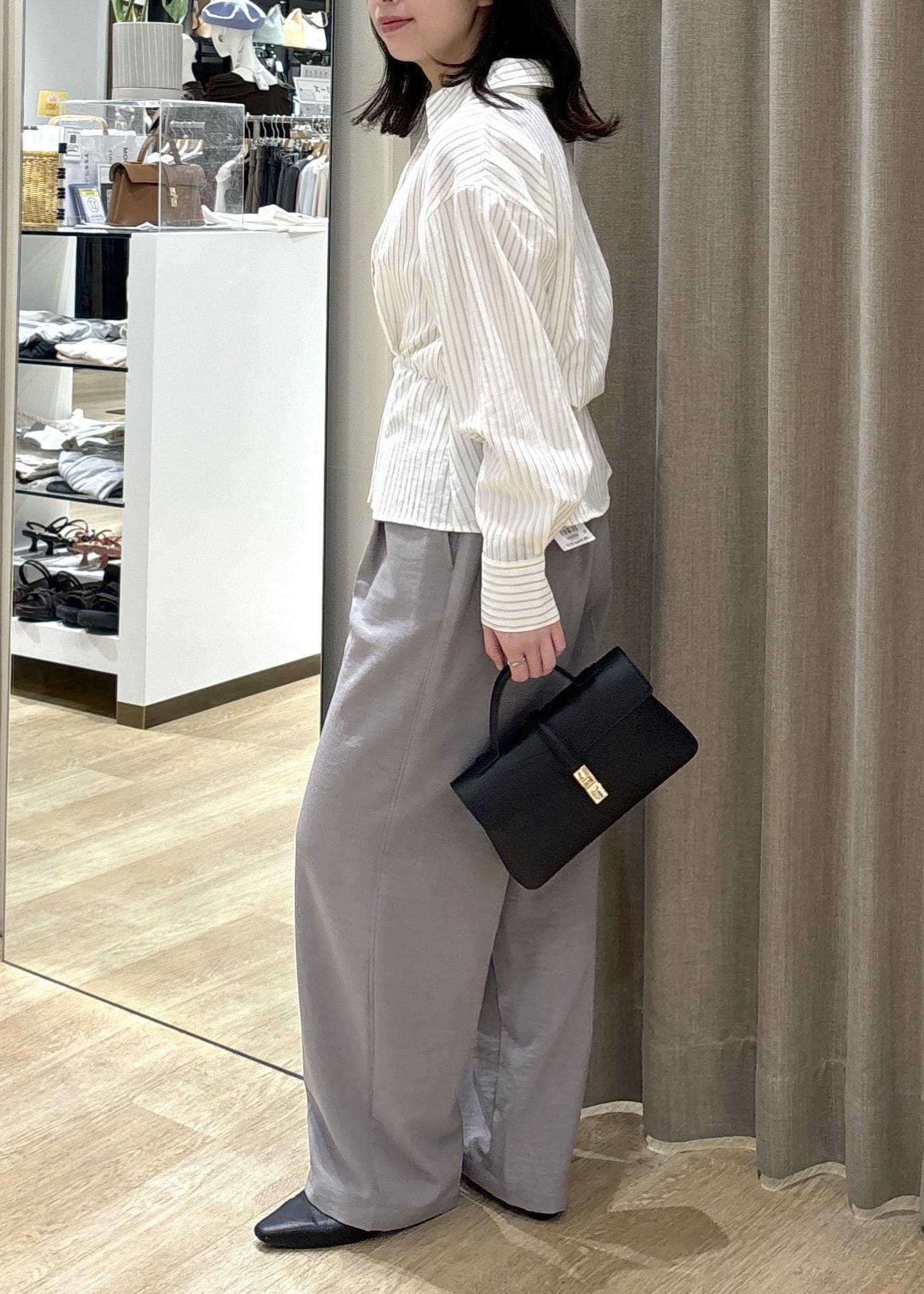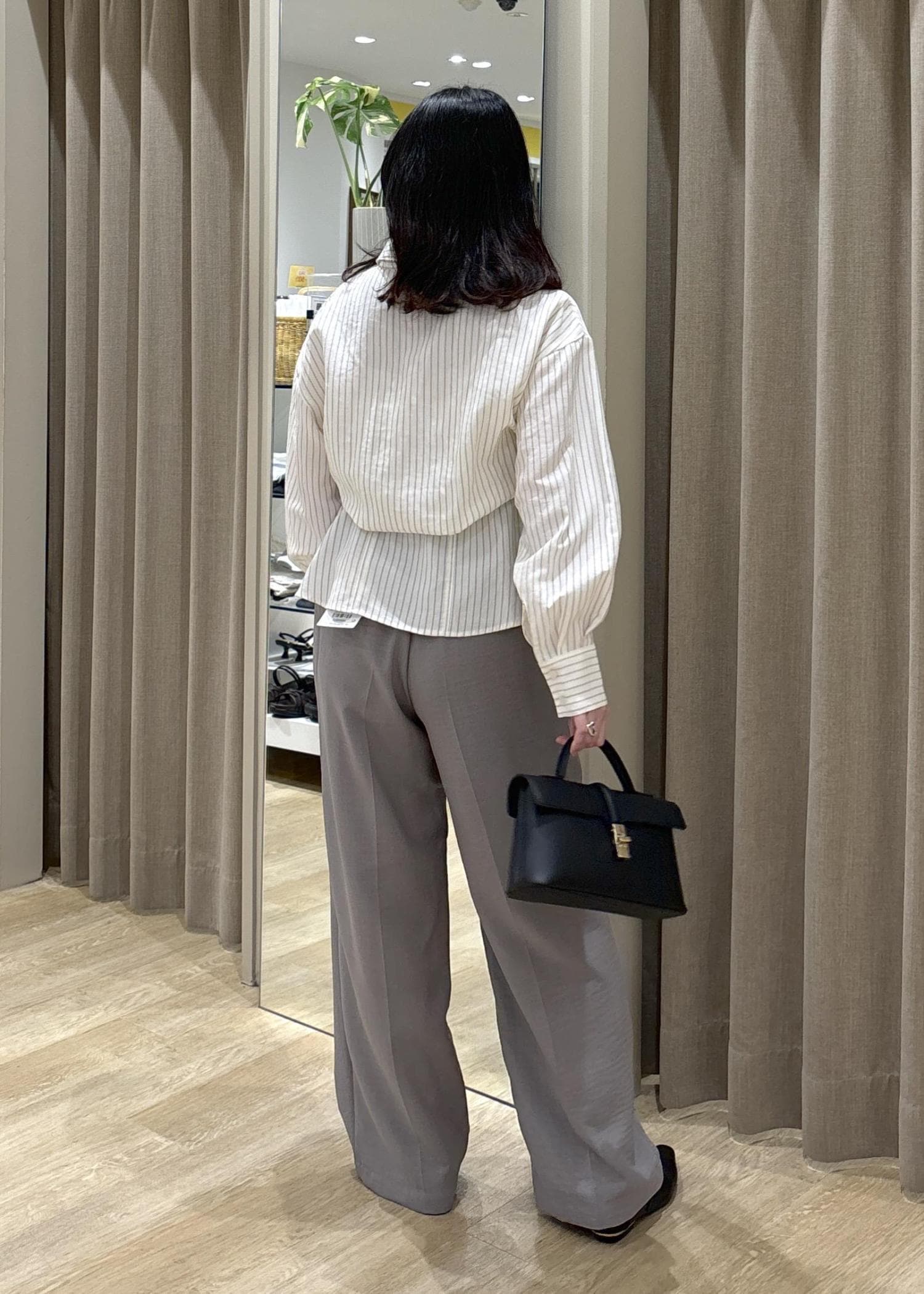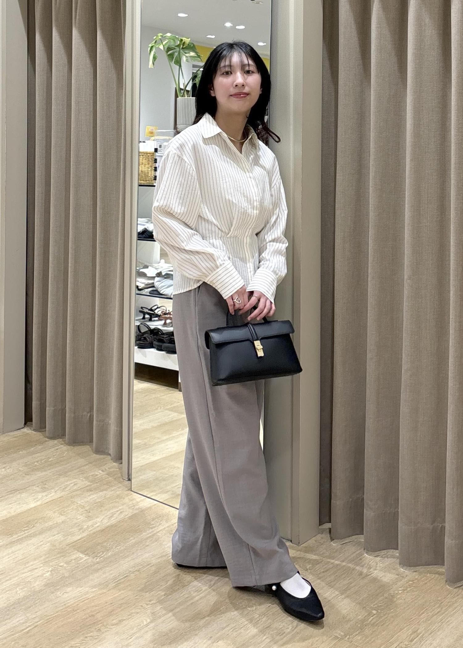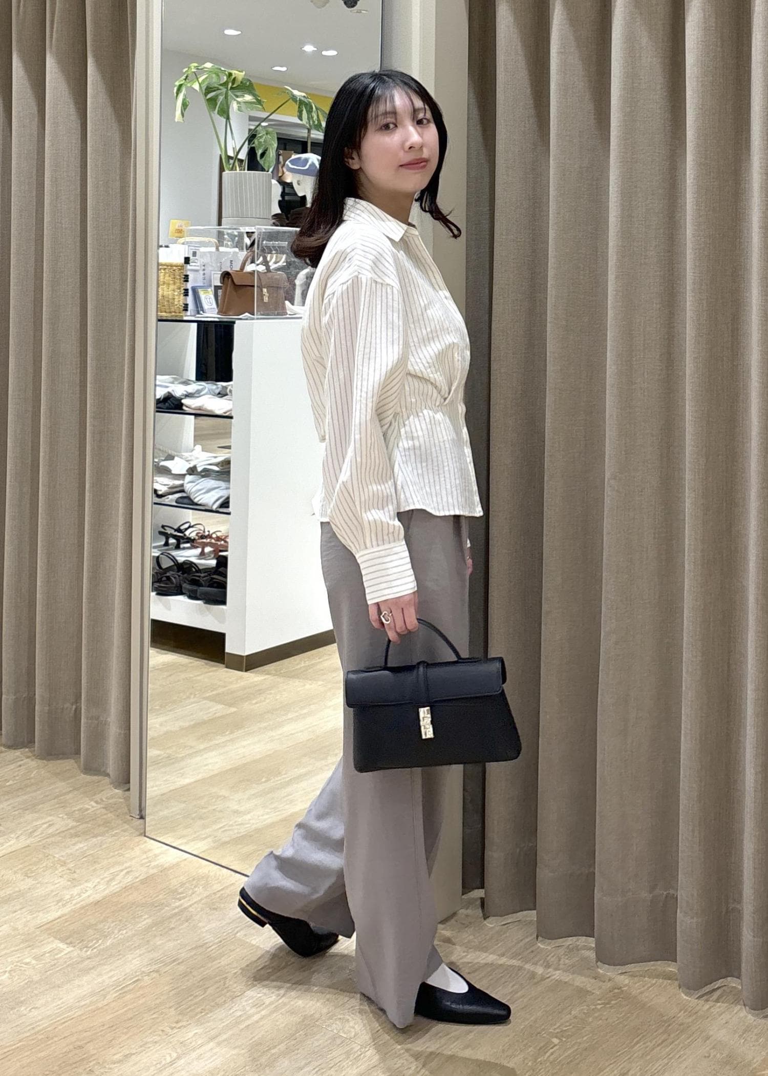 VISレイヤードストライプシャツオフホワイト / F¥6,589レビュー身長158cm、Fサイズ着用。