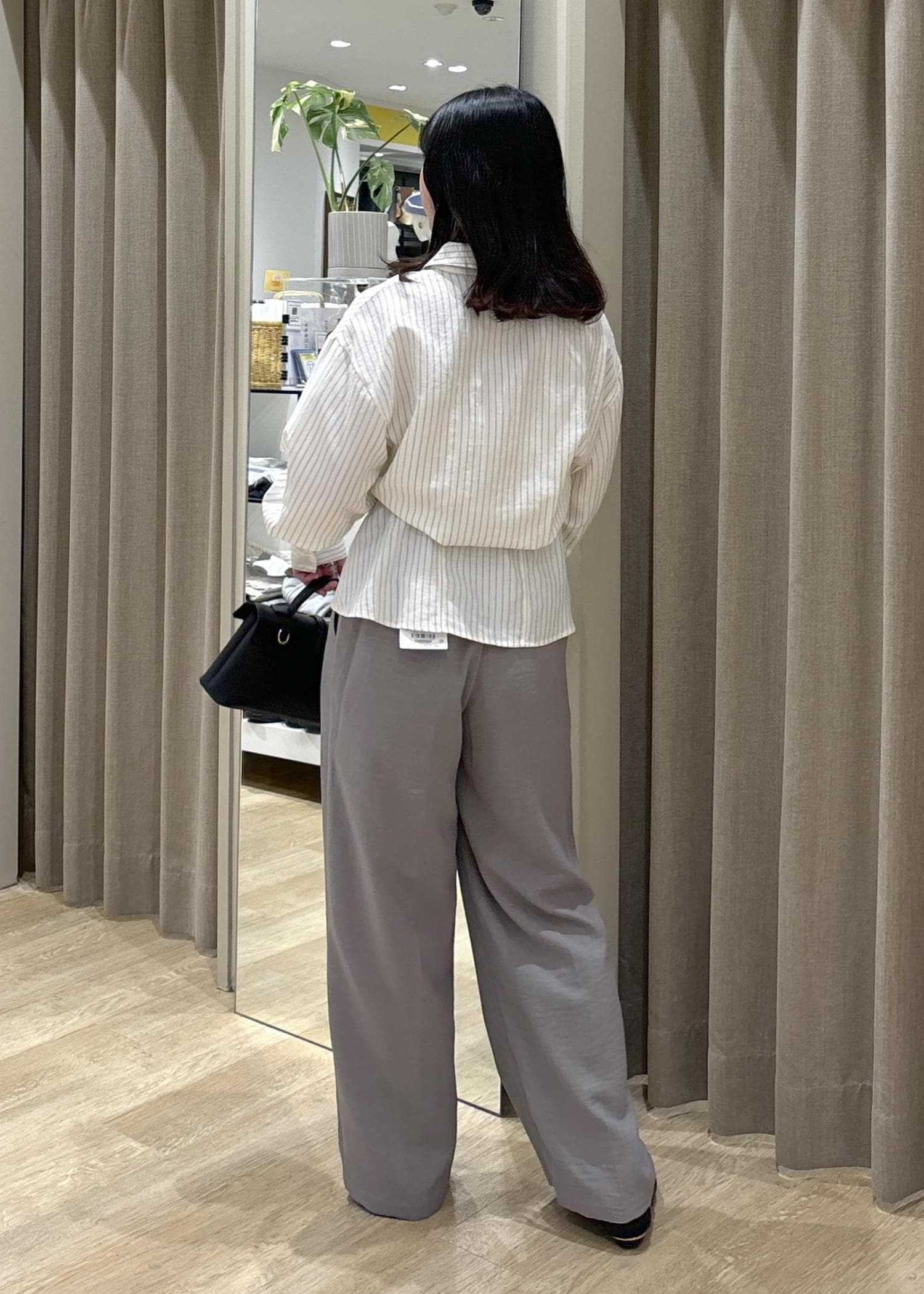 VIS美easyリネンライクワイドパンツ/イージーケア・接触冷感・セットアップ対応グレー / M¥5,489レビュー身長158cm、Mサイズ着用。