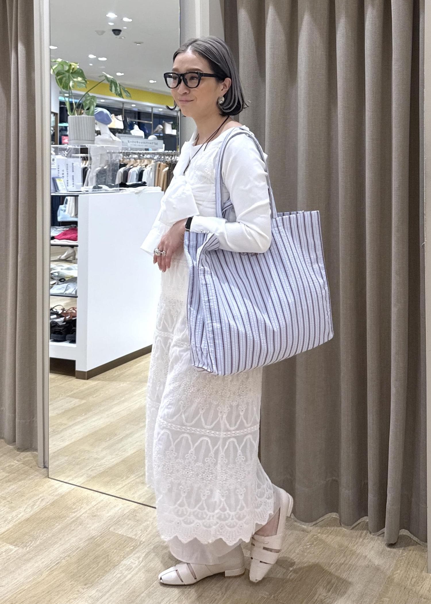 2BUY10%OFFROPÉ PICNIC PASSAGEストライプビッグトートバッグ/2WAY・A4対応ブルー系 / F¥3,993レビューマルチストライプと取手が2種類長さが付いている