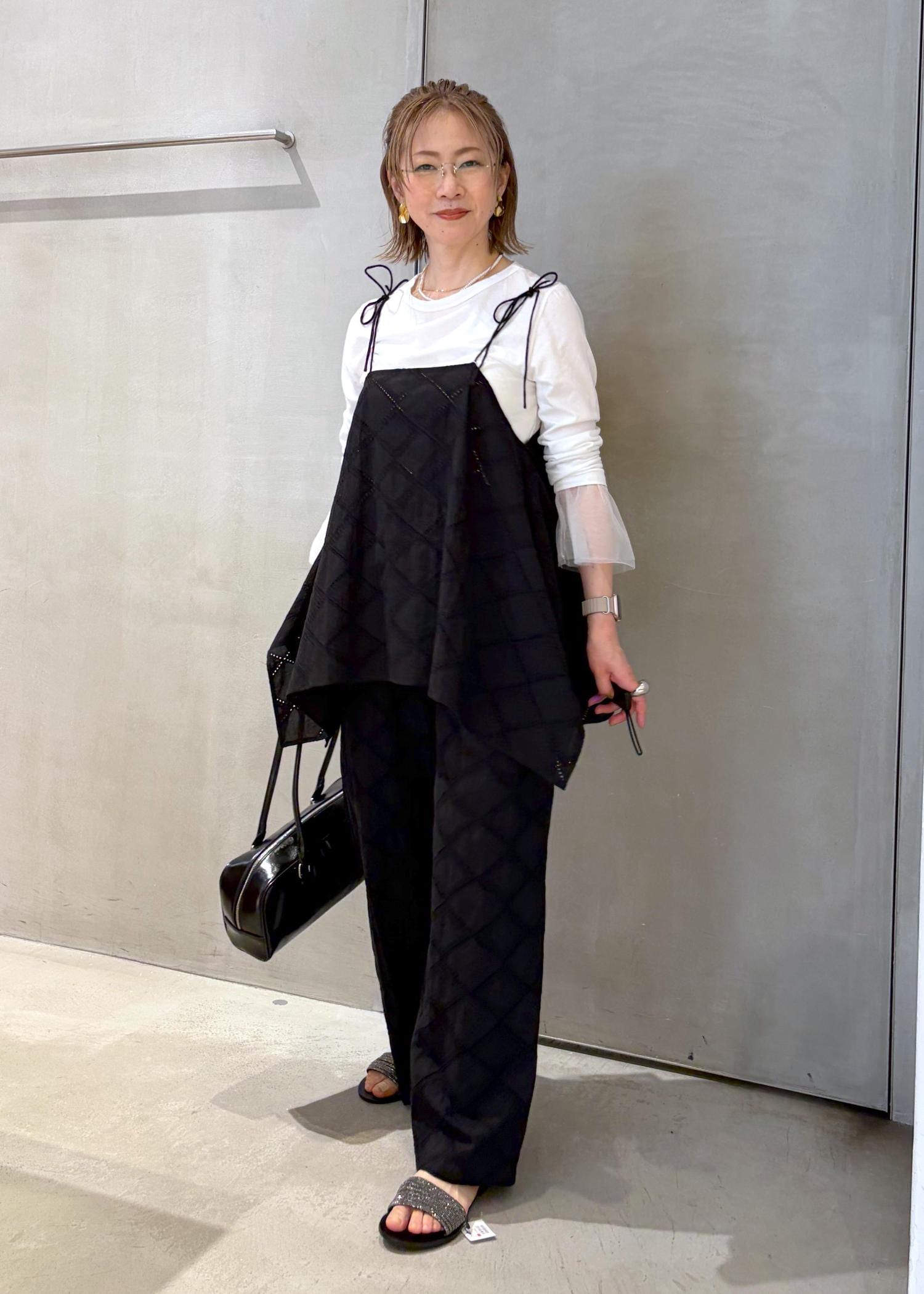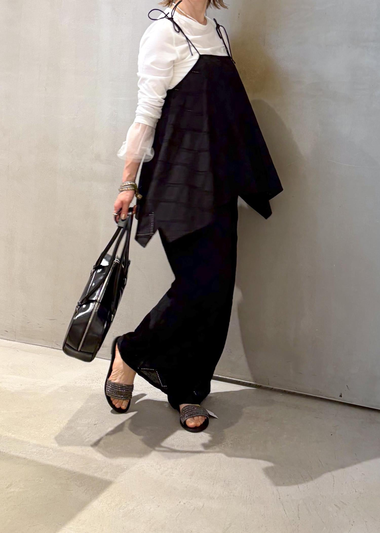 夏のレイヤードにぴったりなキャミソールは着回し力が高く、サイドの裾が長くデザインされていますので、体型カバーができます。