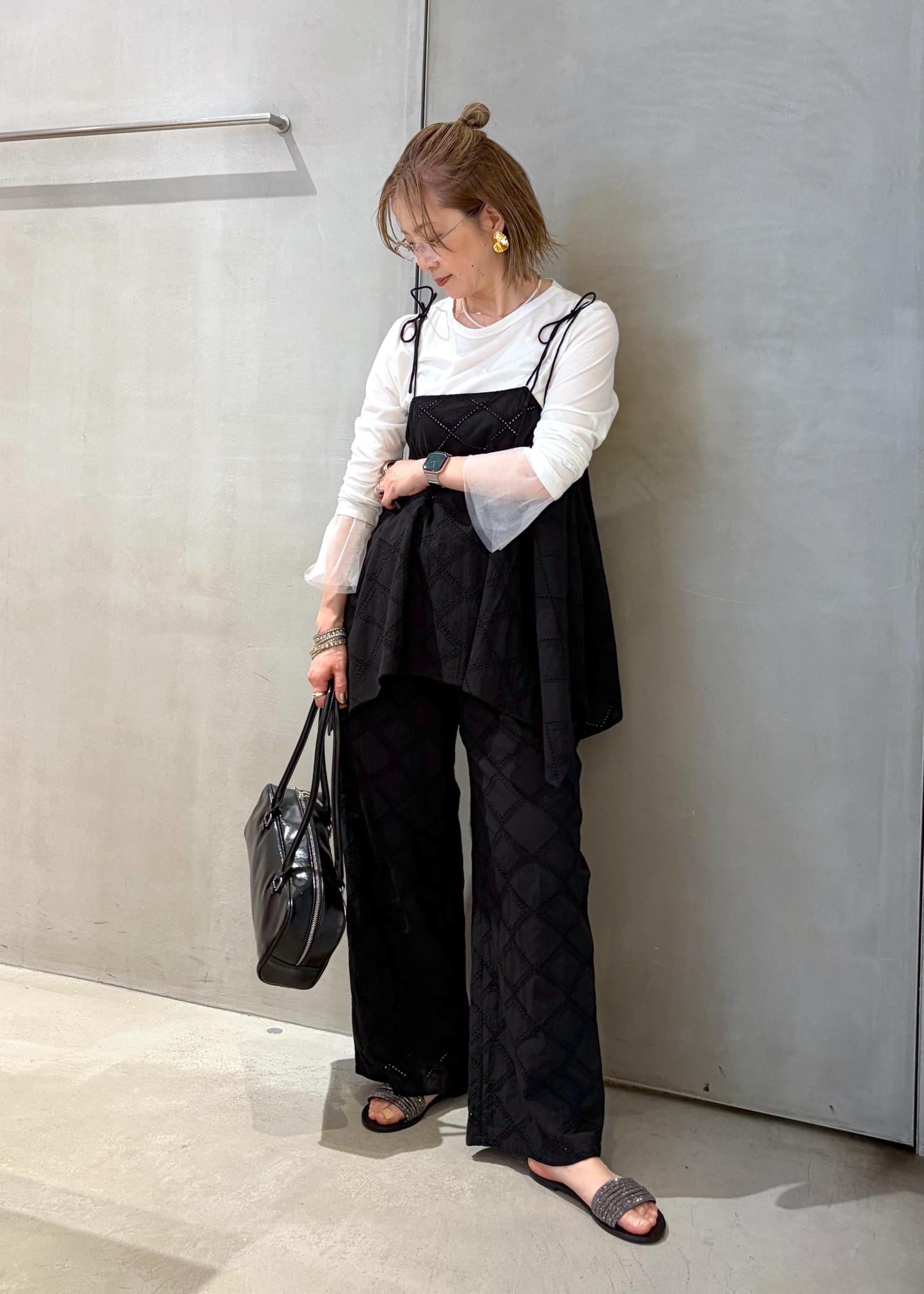 LE CERCLE par ropéスクエアレースイージーパンツ/セットアップ対応ブラック / F¥8,690レビューコットン100%でナチュラル素材感です。ウエストはゴム仕様。