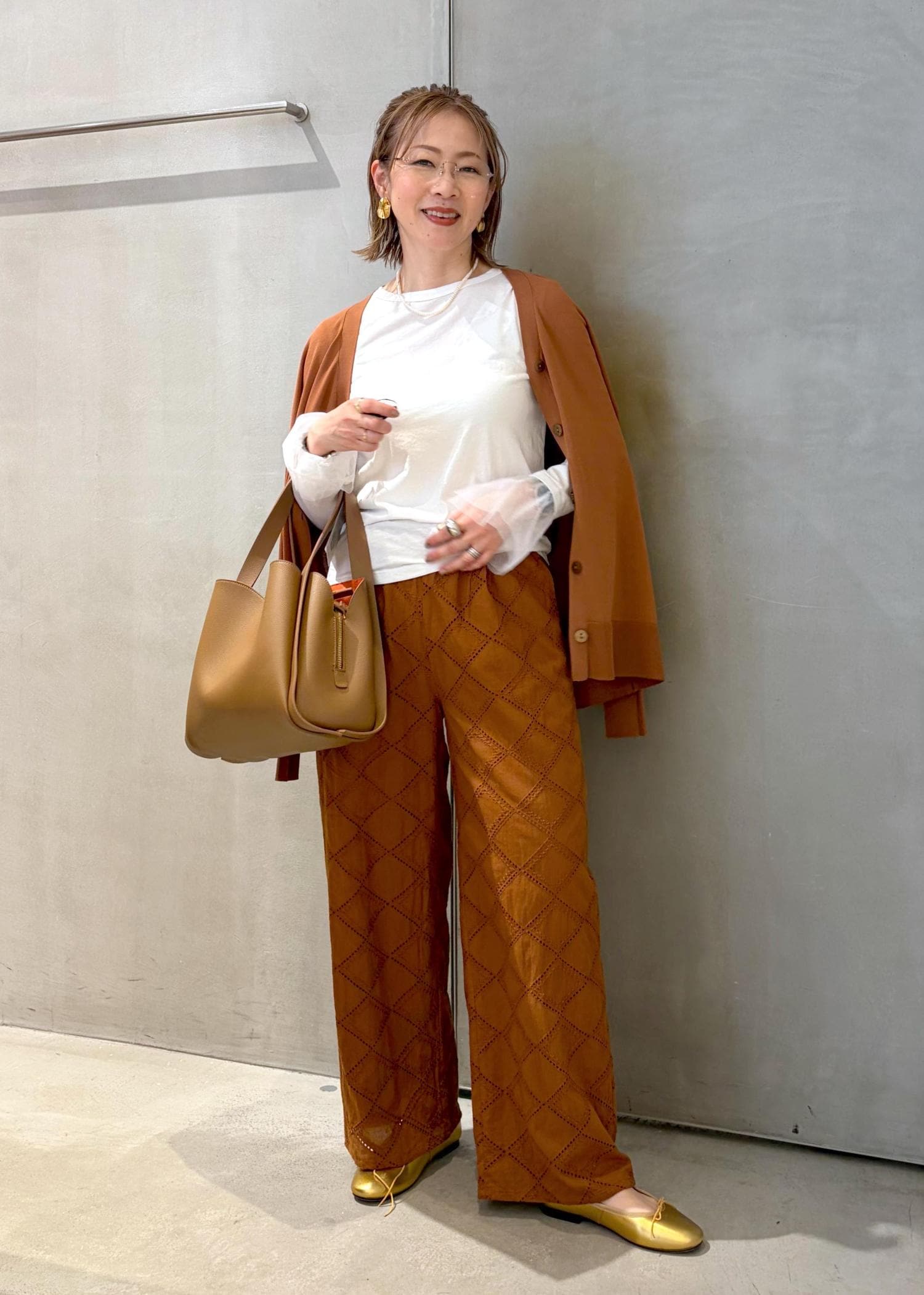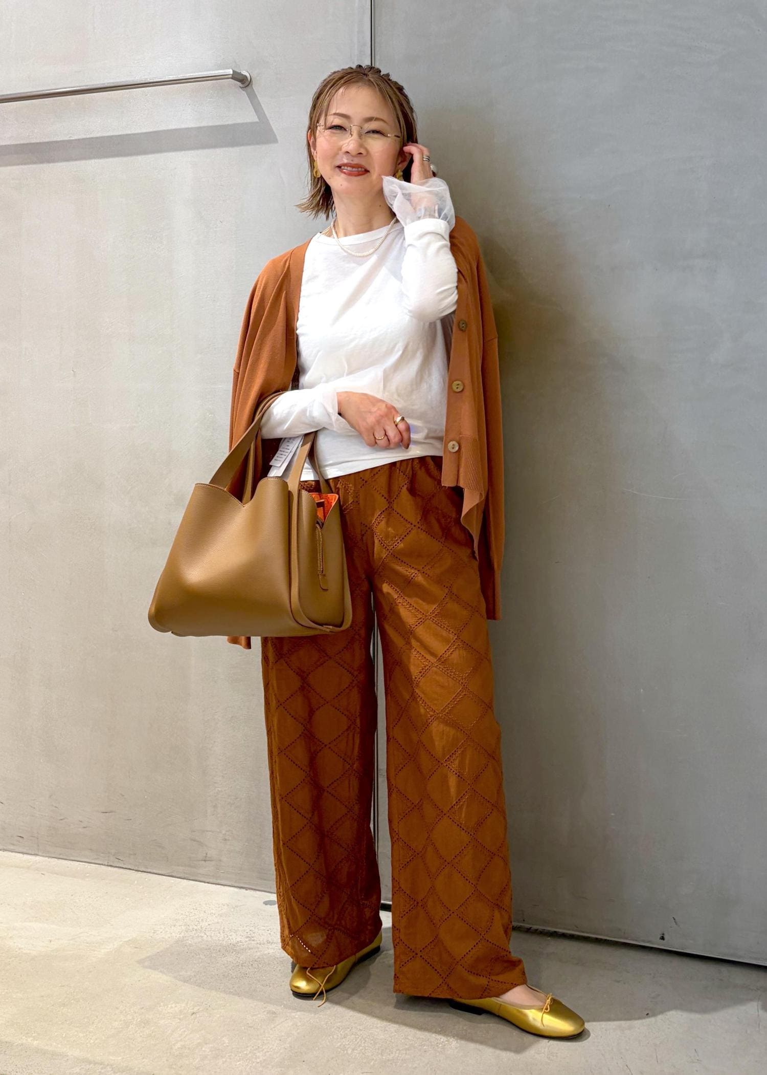 夏らしいテラコッタカラーのワントーンでスタイリングしました。