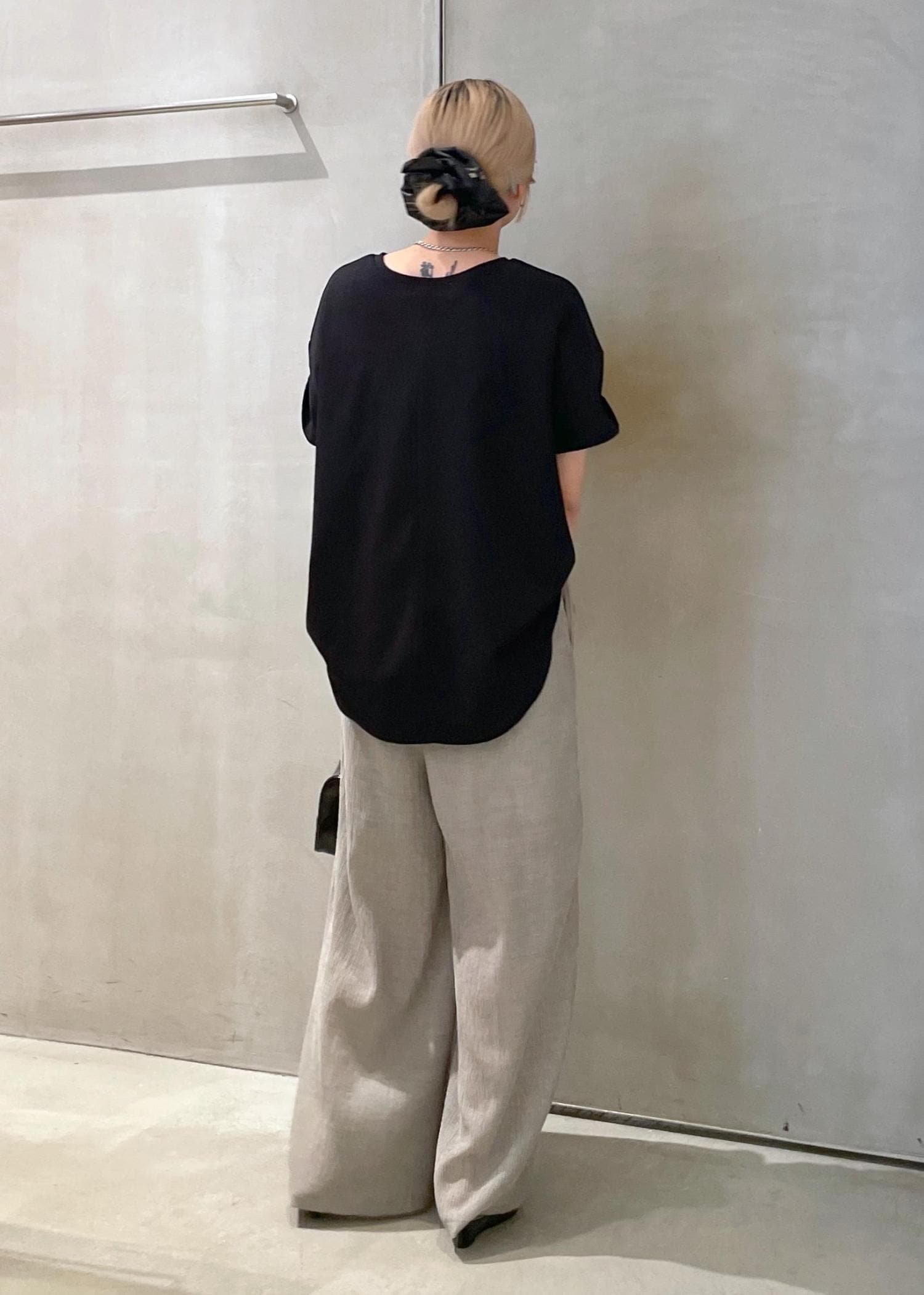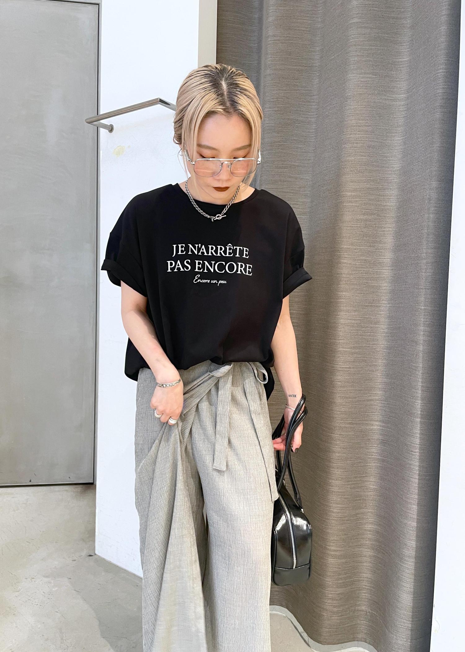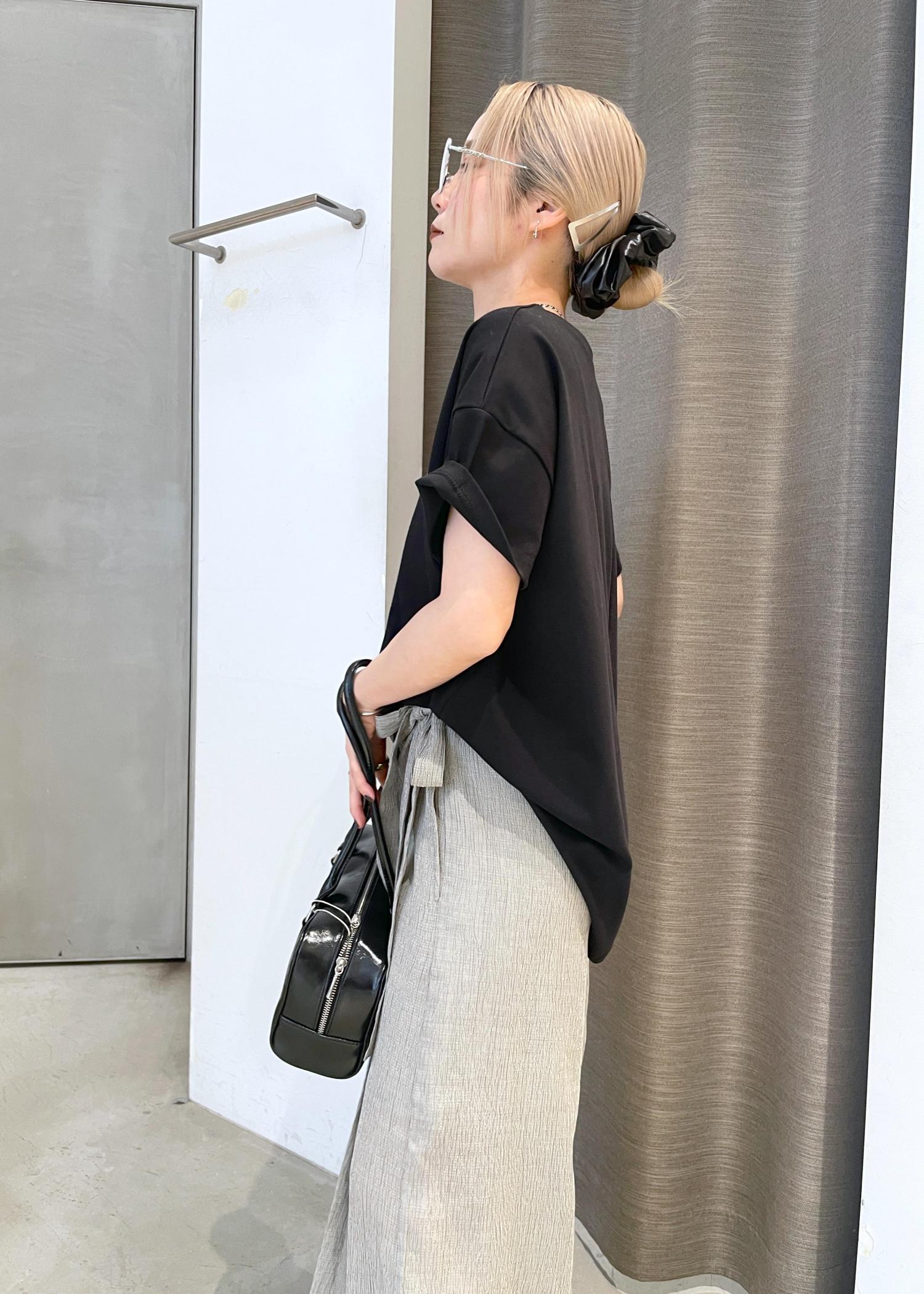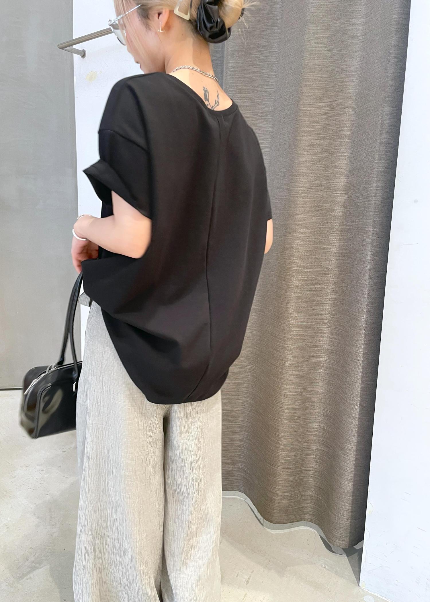 シンプルに着るだけでタックインしているシルエットにみえて◎後ろの丈はヒップまですっぽりと隠れるので安心、、