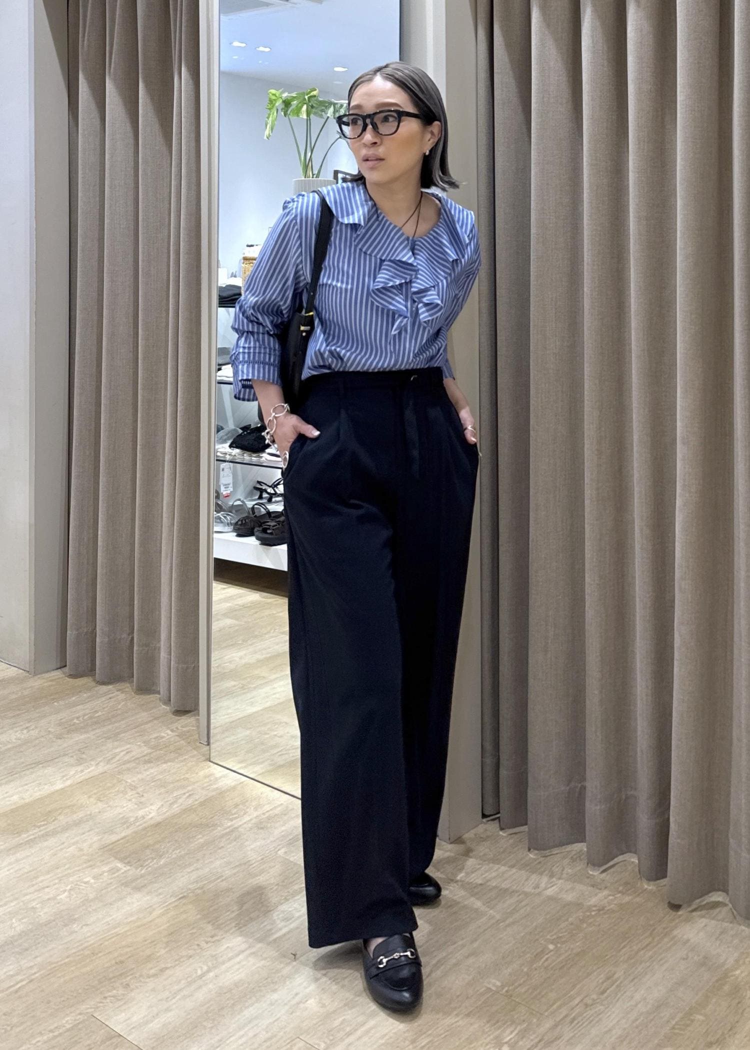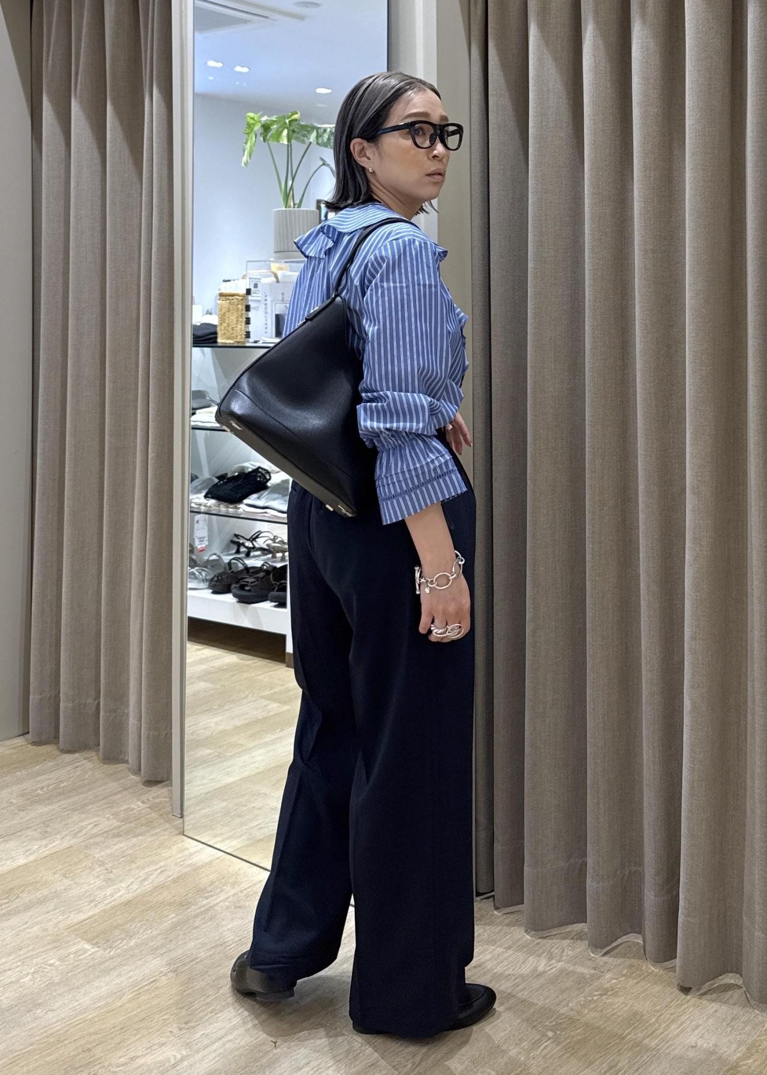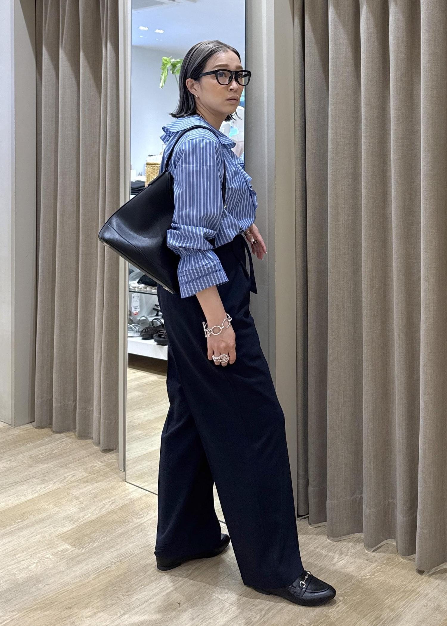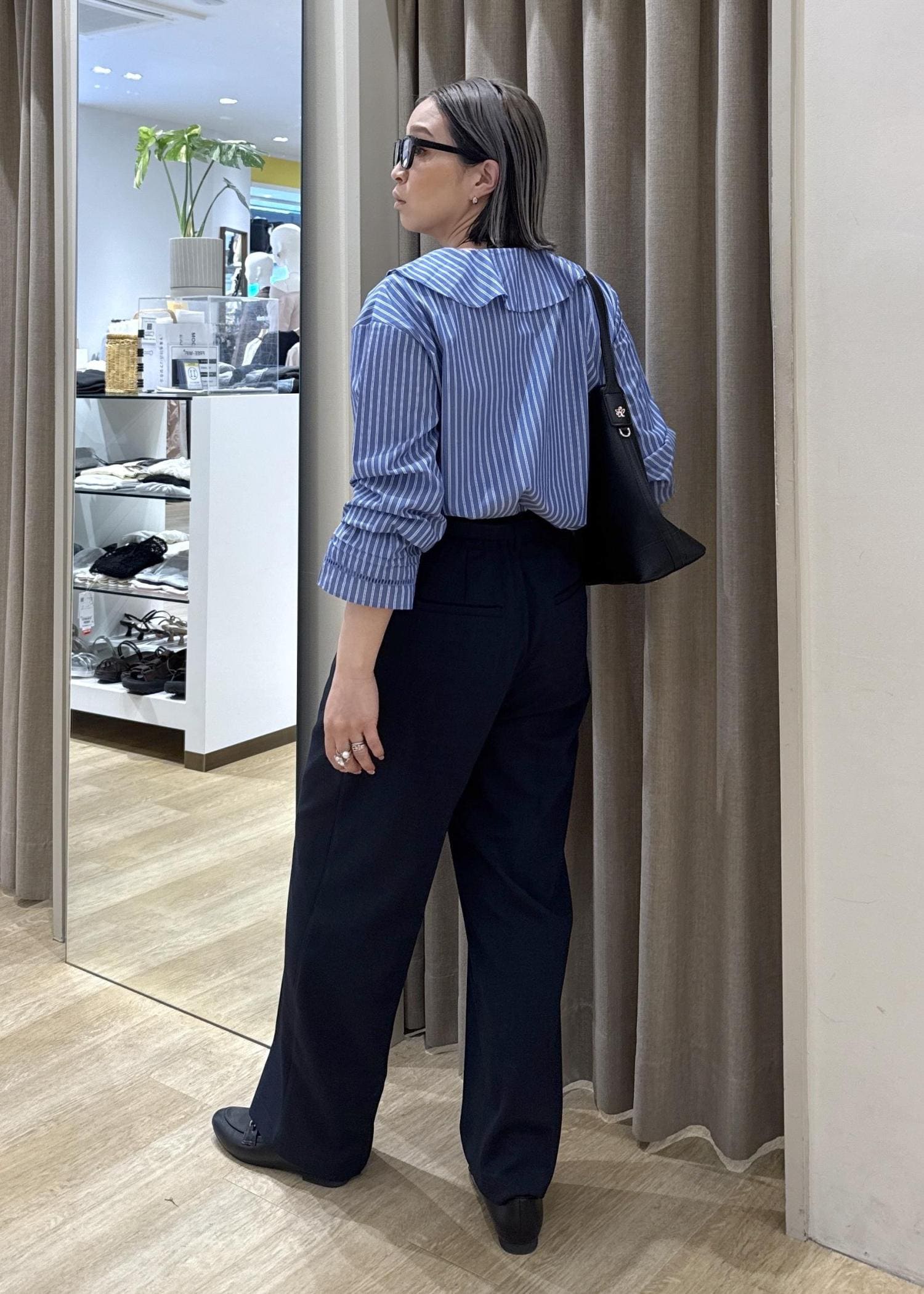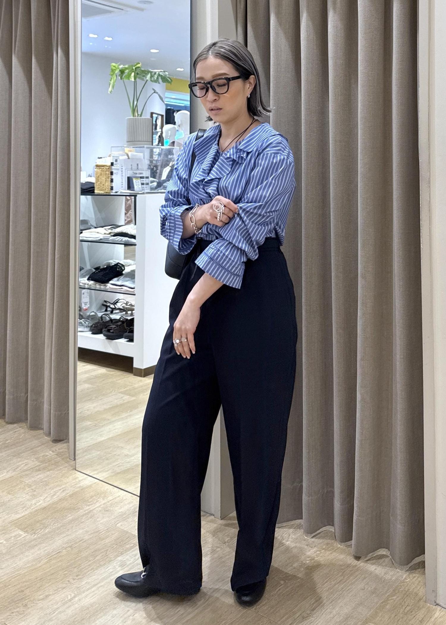 青系でまとめることで、お仕事用にも使えるスタイリングにしました。