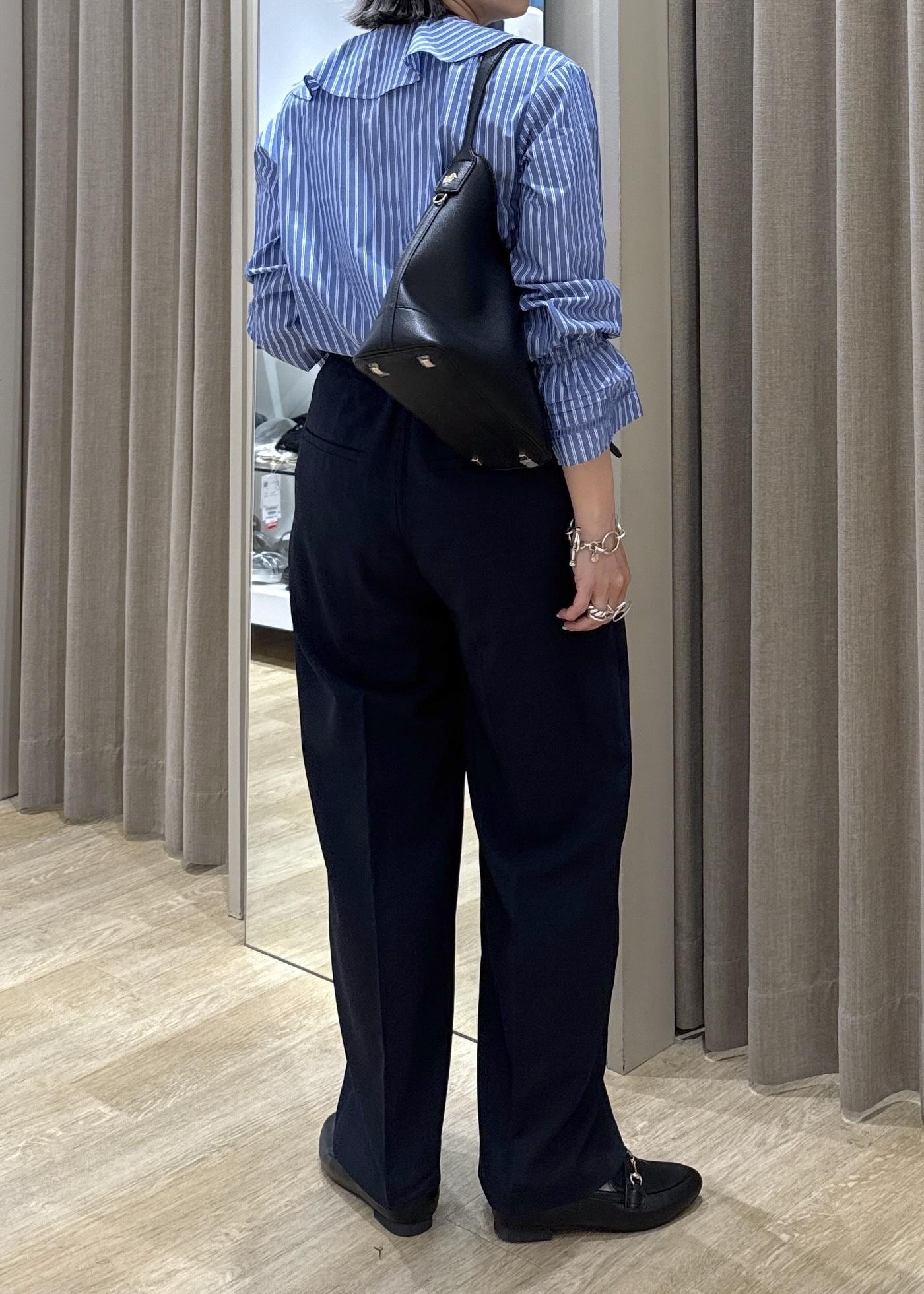 ボトムスのタックがしっかりヒップカバーしてくれるので