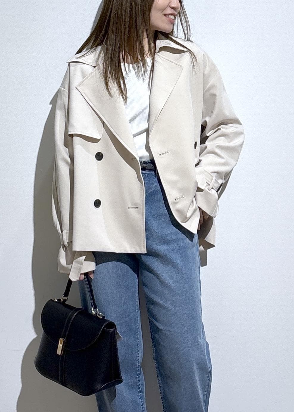 ROPÉ PICNICショート丈トレンチコート/撥水・花粉ガードベージュ / F¥13,200レビューゆとりがあり、ヒップまで隠れる長さのショートトレンチコート。