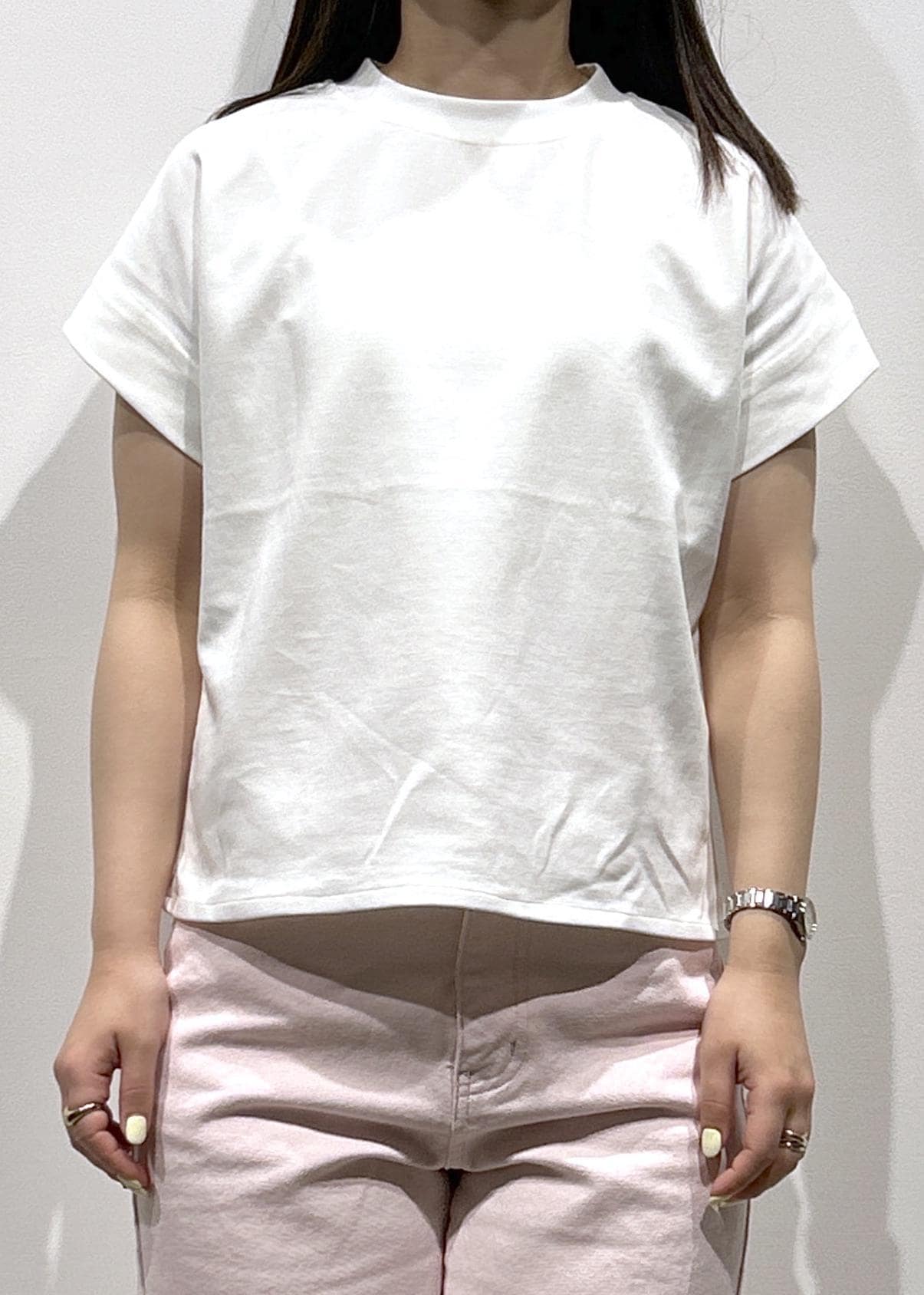 LE CERCLE par ropé新色追加【UVケア/接触冷感】ボトルネックTシャツホワイト / F¥4,290レビュー長すぎず短すぎない腰が隠れる丈感で、袖は肩と肘の真ん中あたりです。