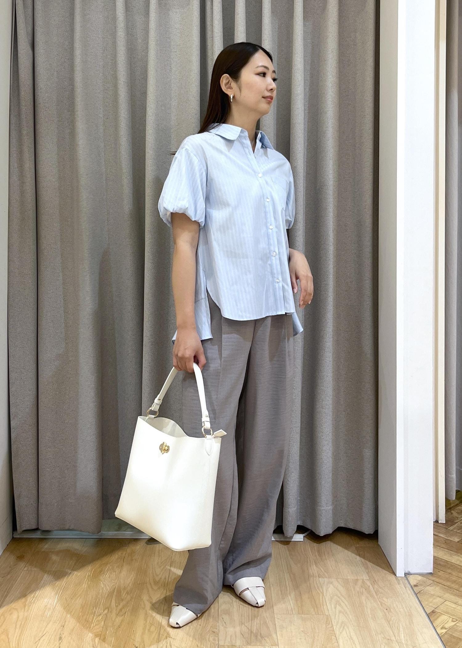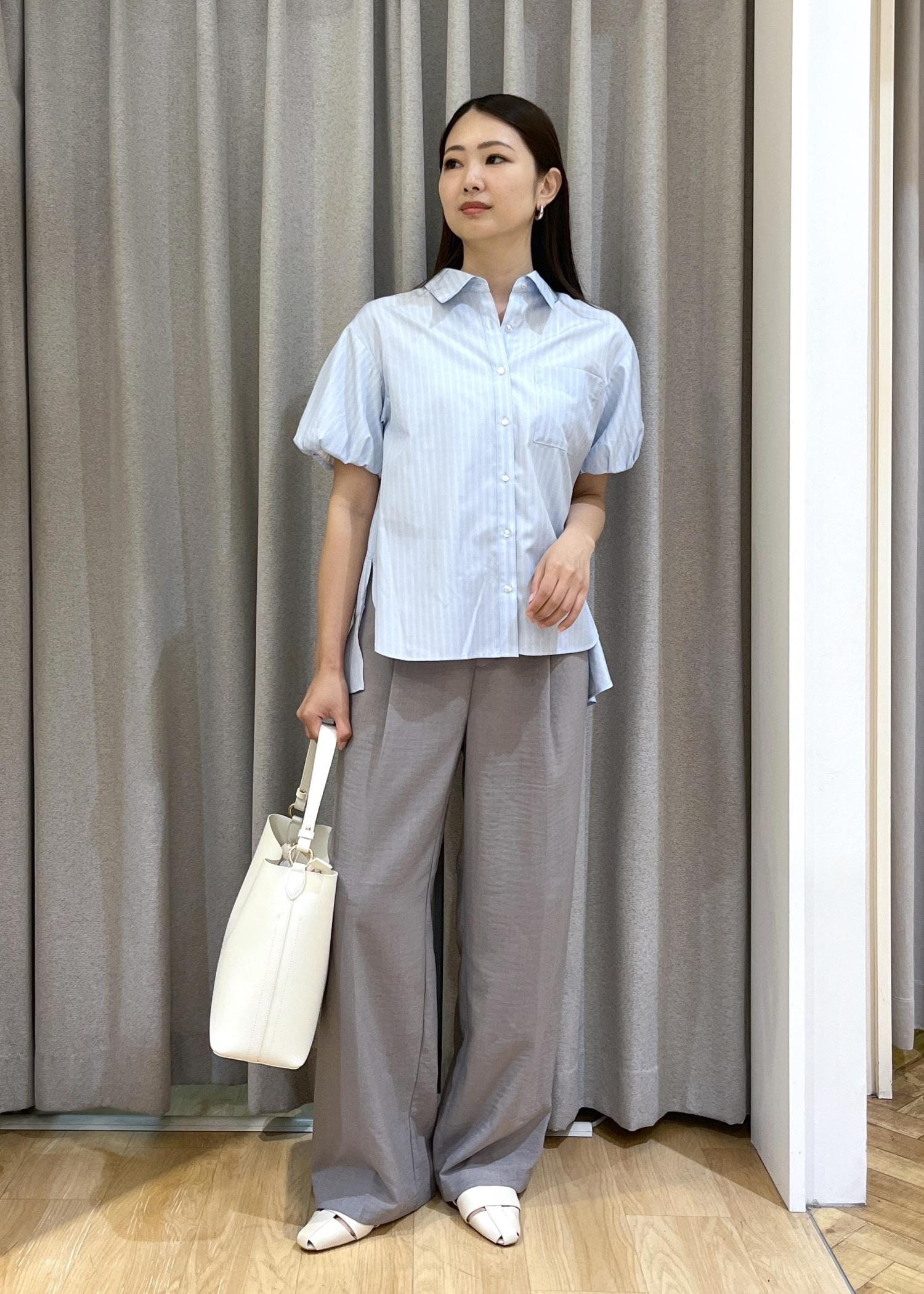 落ち感のあるワイドパンツを合わせて、リラックス感ときちんと感をバランスよくミックス☺︎