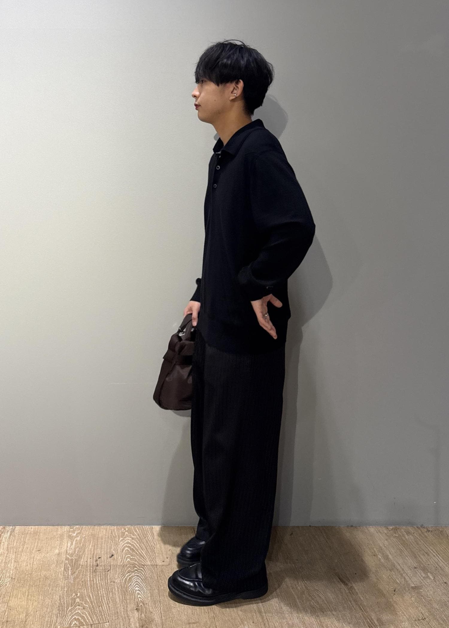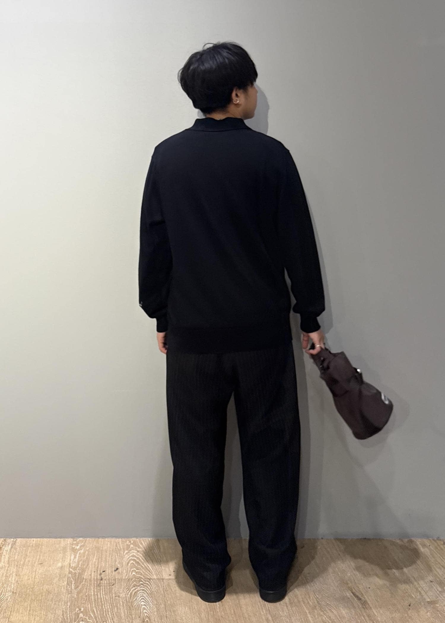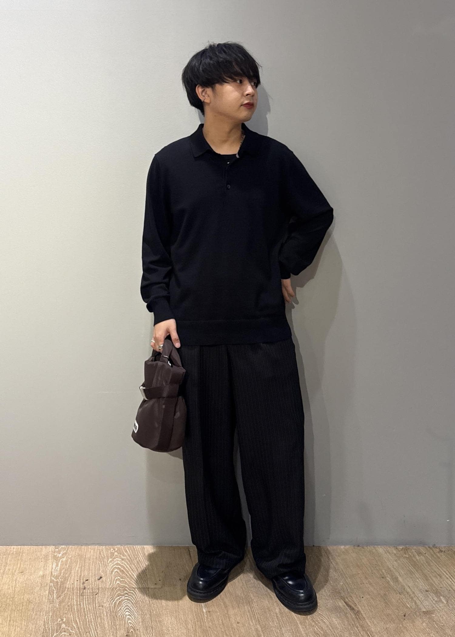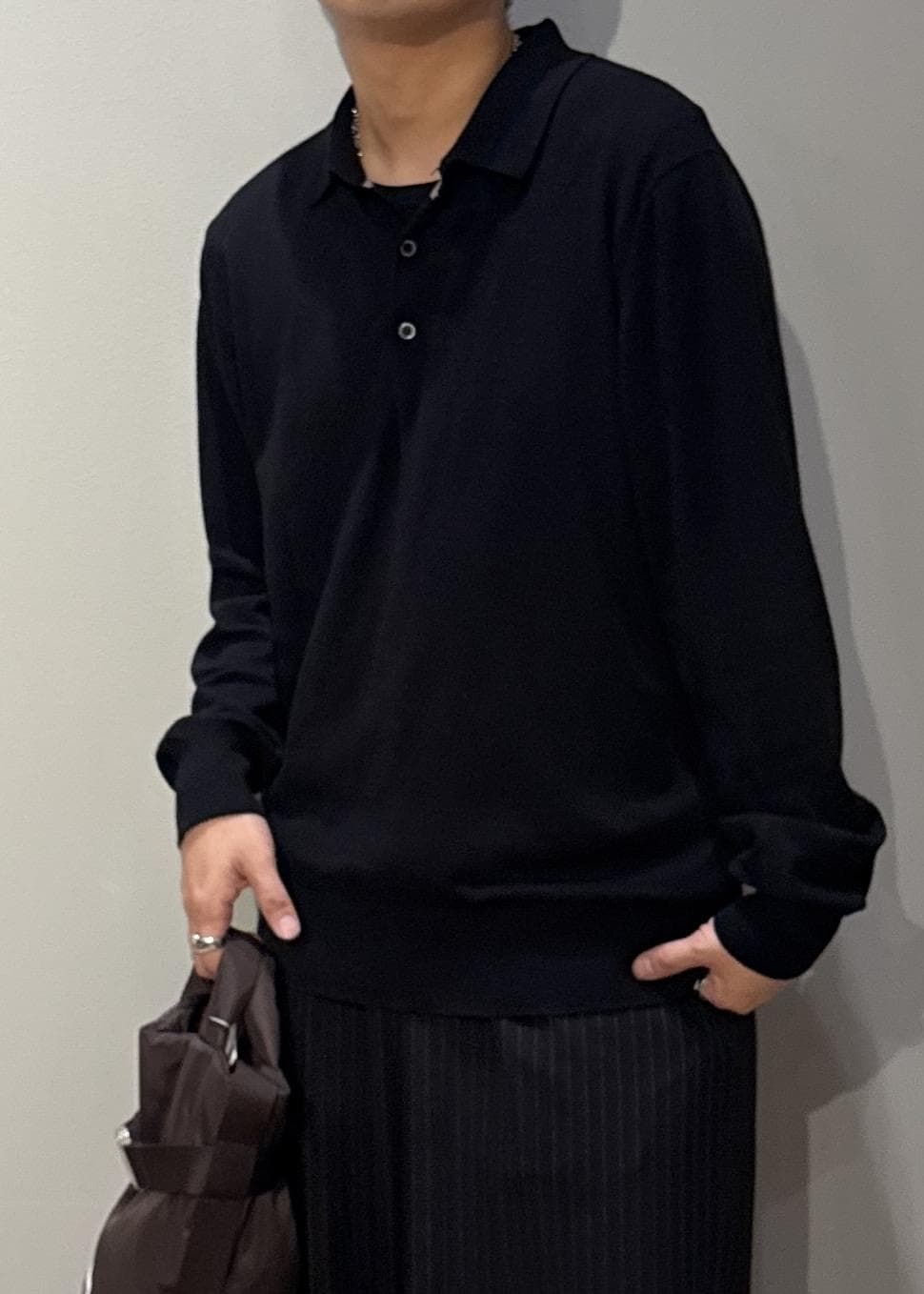 JUN STANDARD PICKSシルキータッチプレーティングポロブラック / L¥5,940レビュージャケットのインナー使いを想定したサイズ設計で、スマートなシルエット。