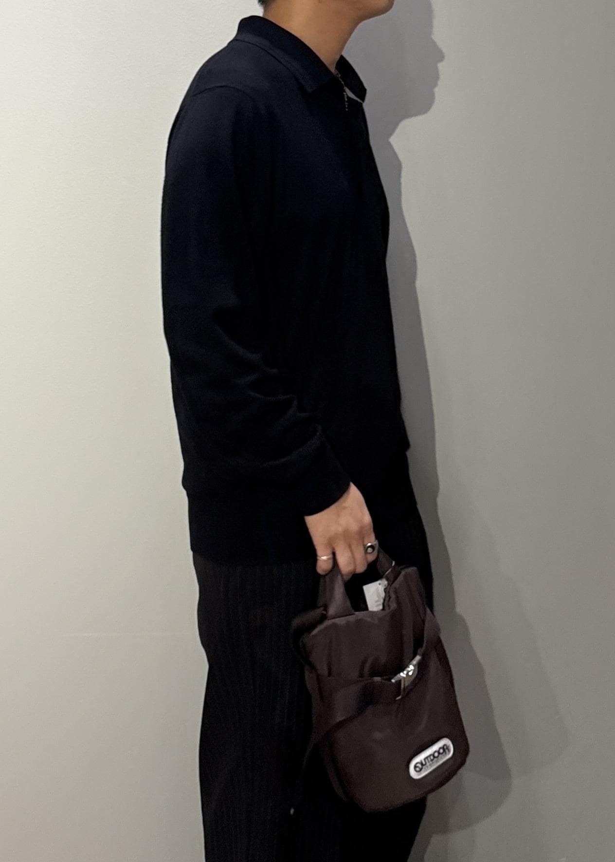 ナイロン素材に程よい光沢感を加え、ラフさの中にも上品さを感じさせるデザイン。