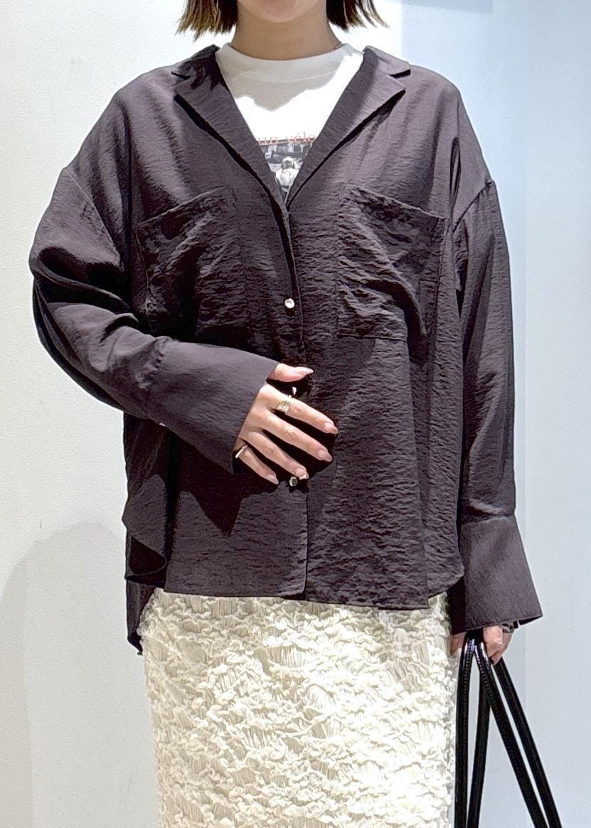 LE CERCLE par ropéオープンカラーシャツジャケットチャコール / F¥8,250レビュー軽く、ゆるっとしたサイズ感でトップスとしても、ジャケットとしても着ていただけます。