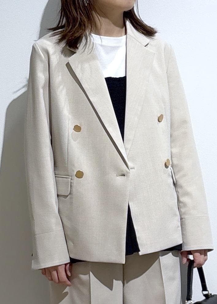 ダブル金ボタンで上品さもあり、お仕事からハレの日などきちんと決めたいシーンにも対応できます。