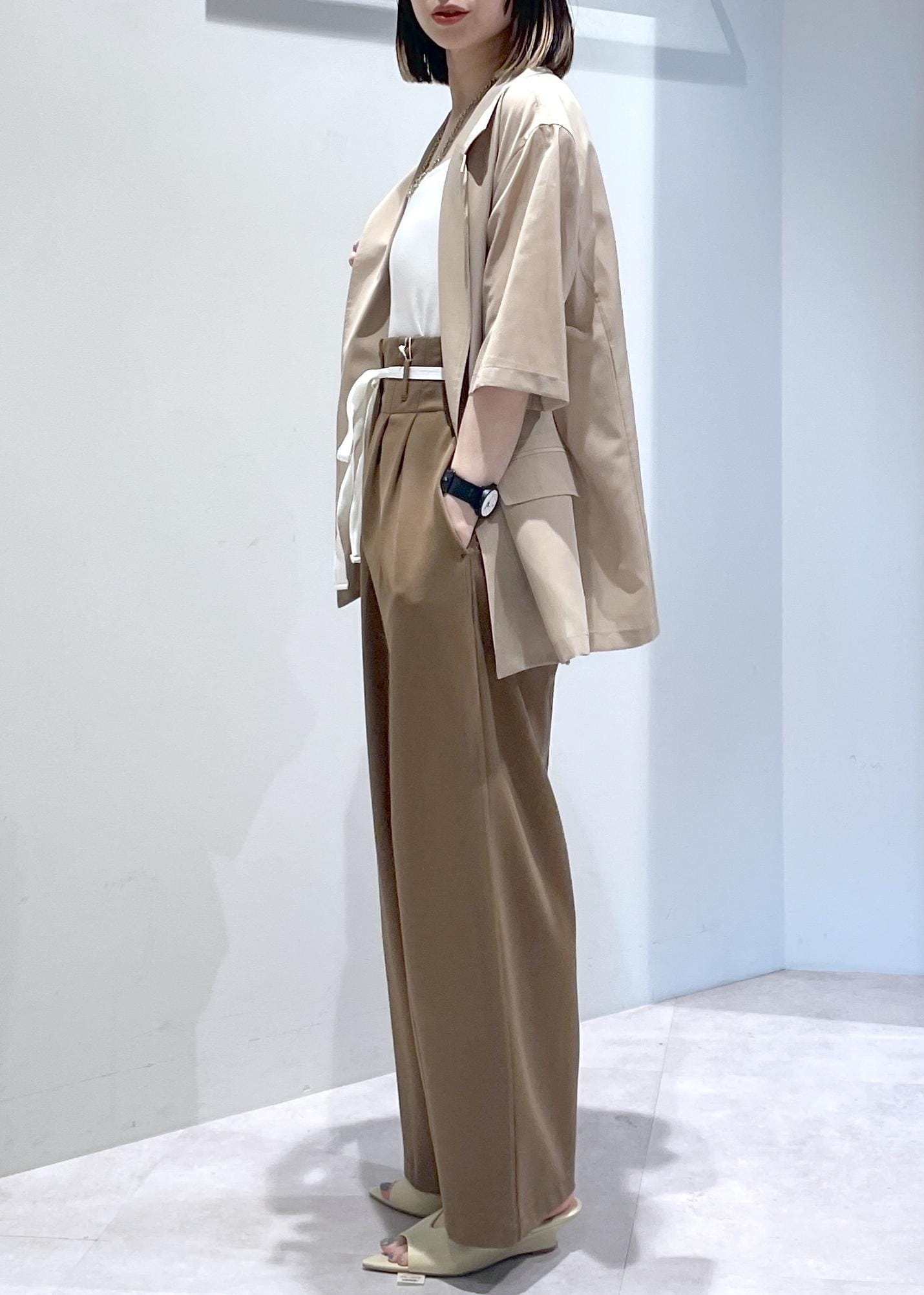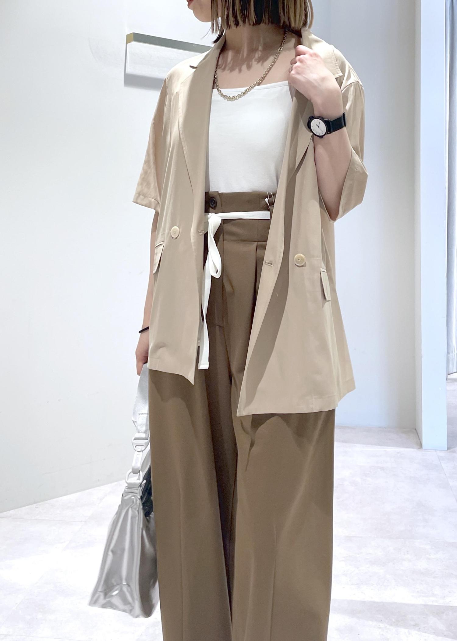夏にも着れるさらさら軽いジャケットを使ったコーディネートです。
